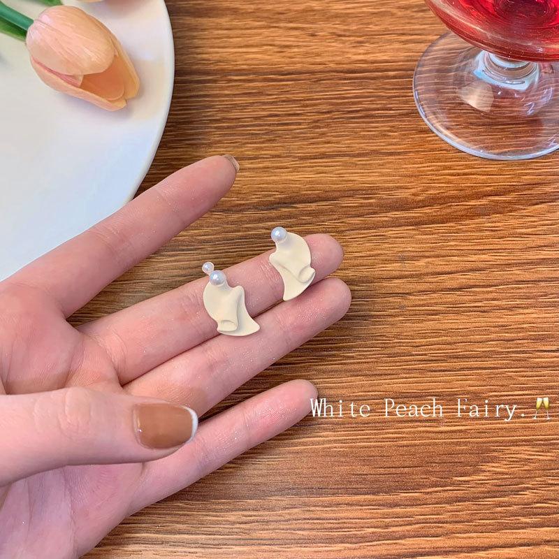 Pendientes de perlas irregulares geométricas retro francesas con aguja de plata, nuevos pendientes sencillos, elegantes y pequeños de moda para mujer.