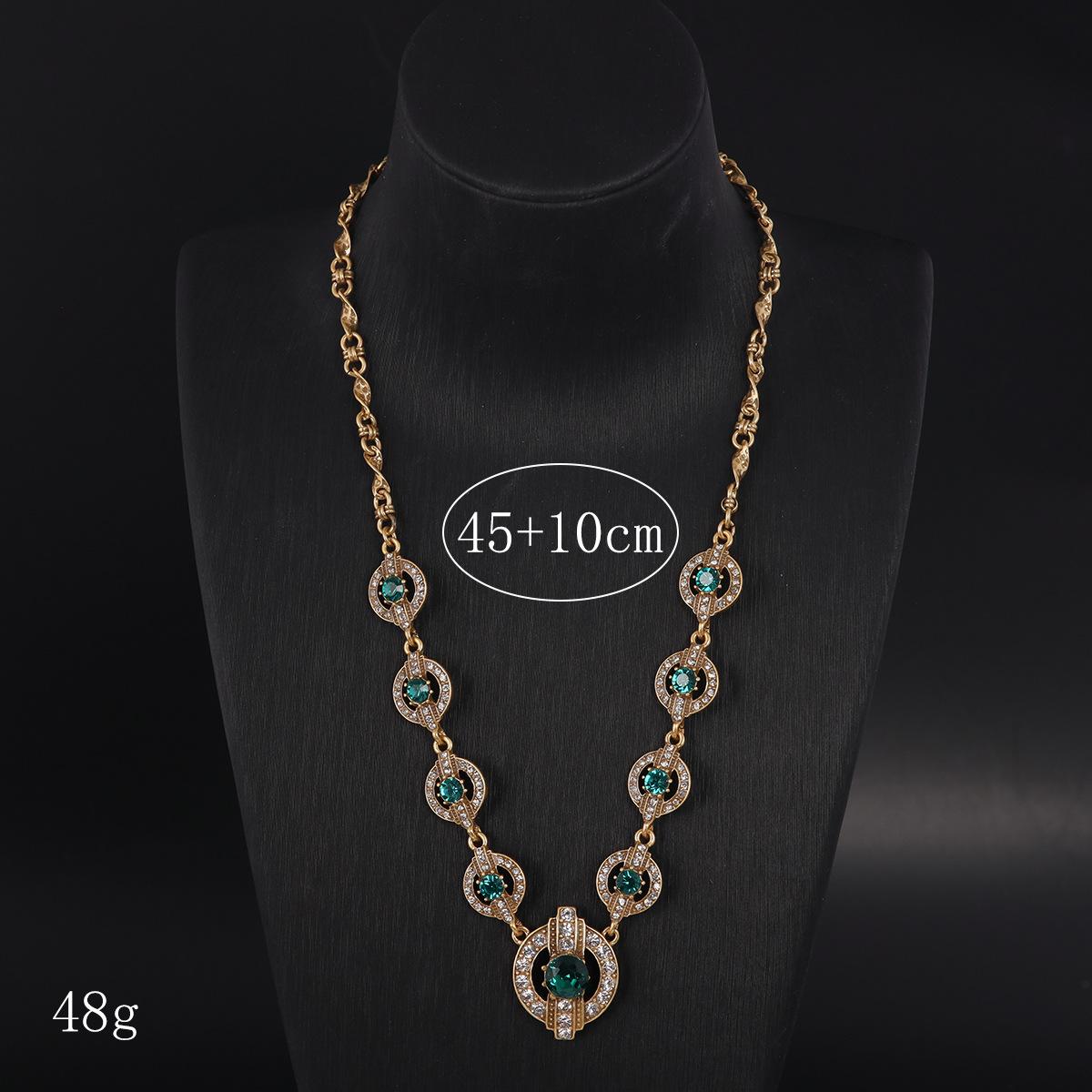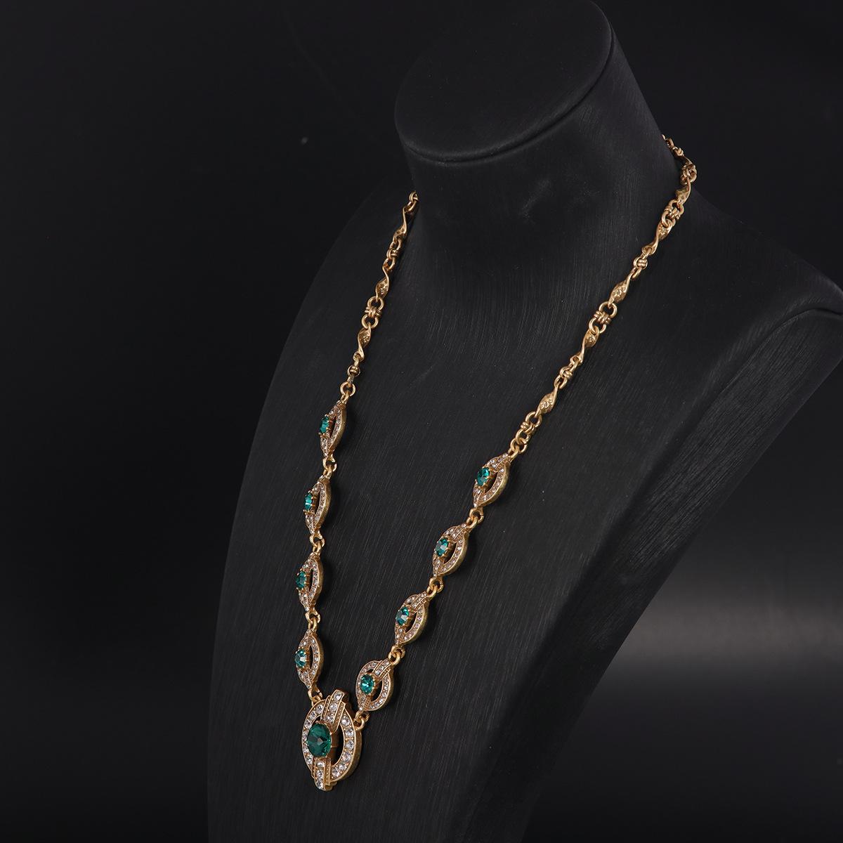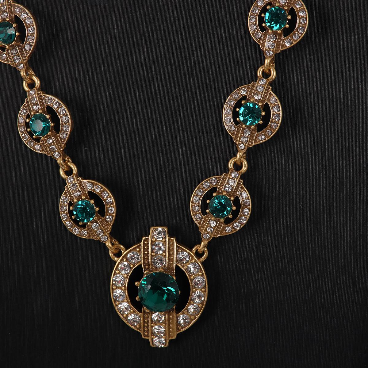 Collar Vintage de Alta Gama Versátil Europeo y Americano Retro Oro Envejecido Verde Diamante Círculo Incrustado