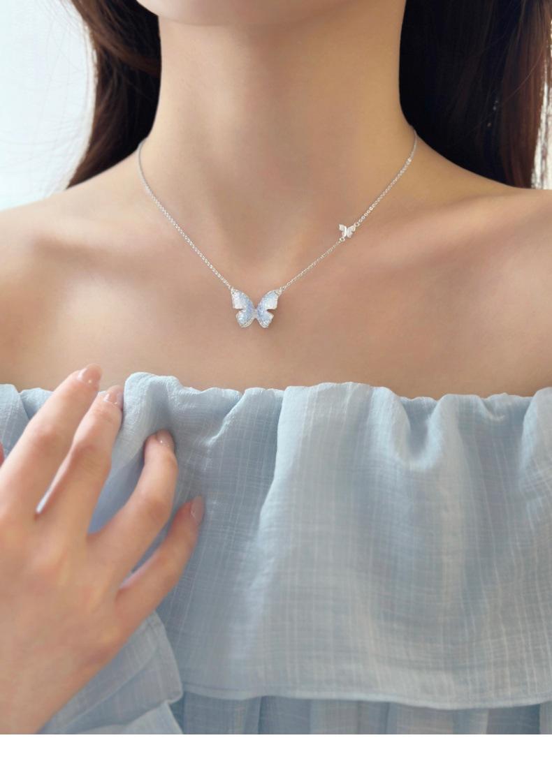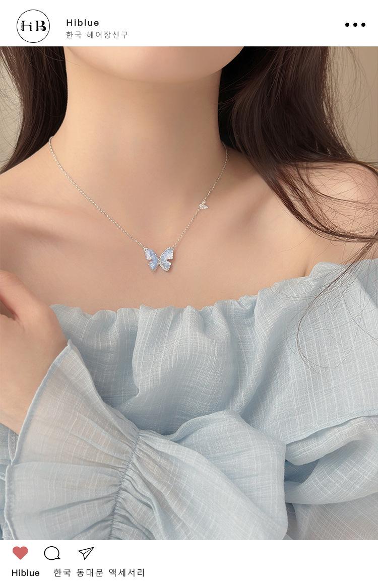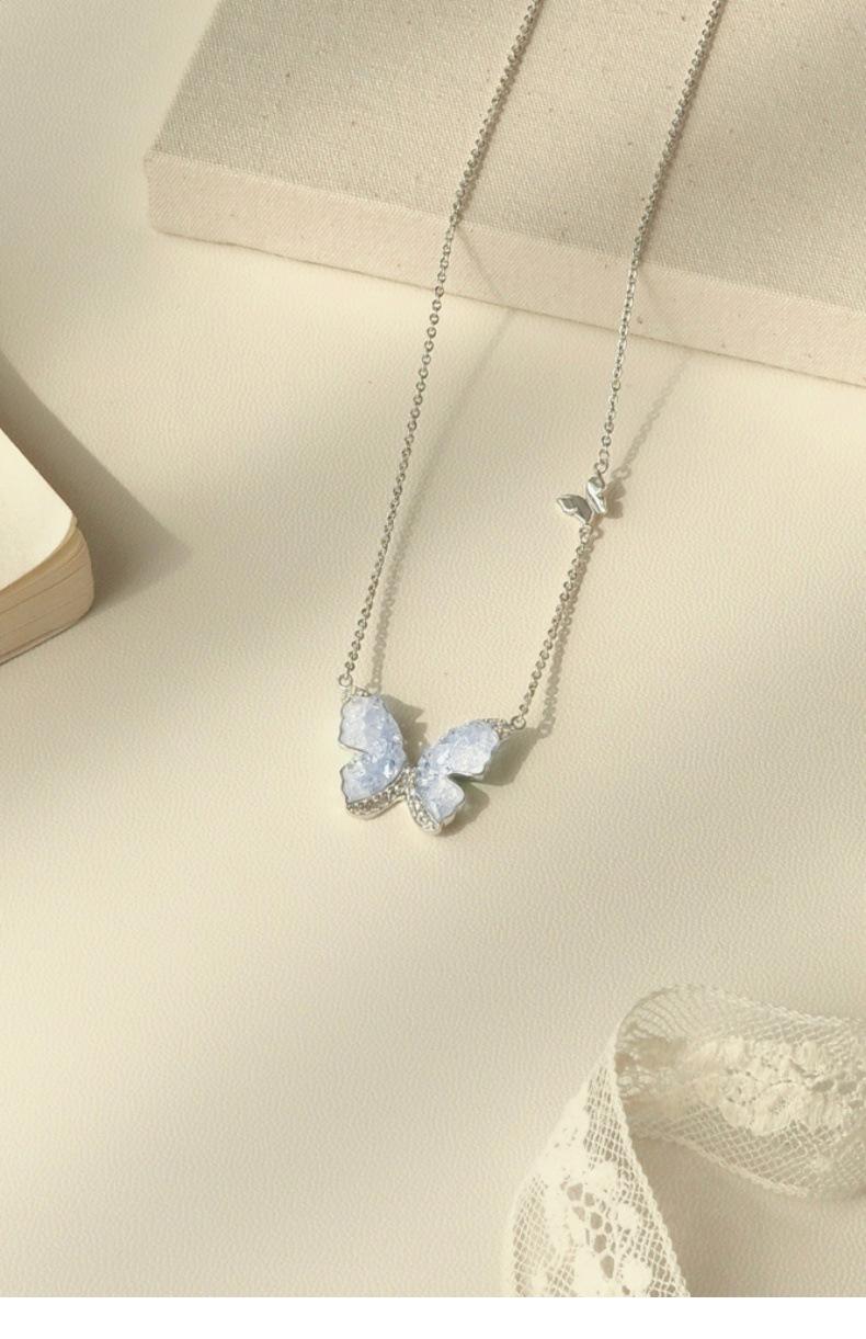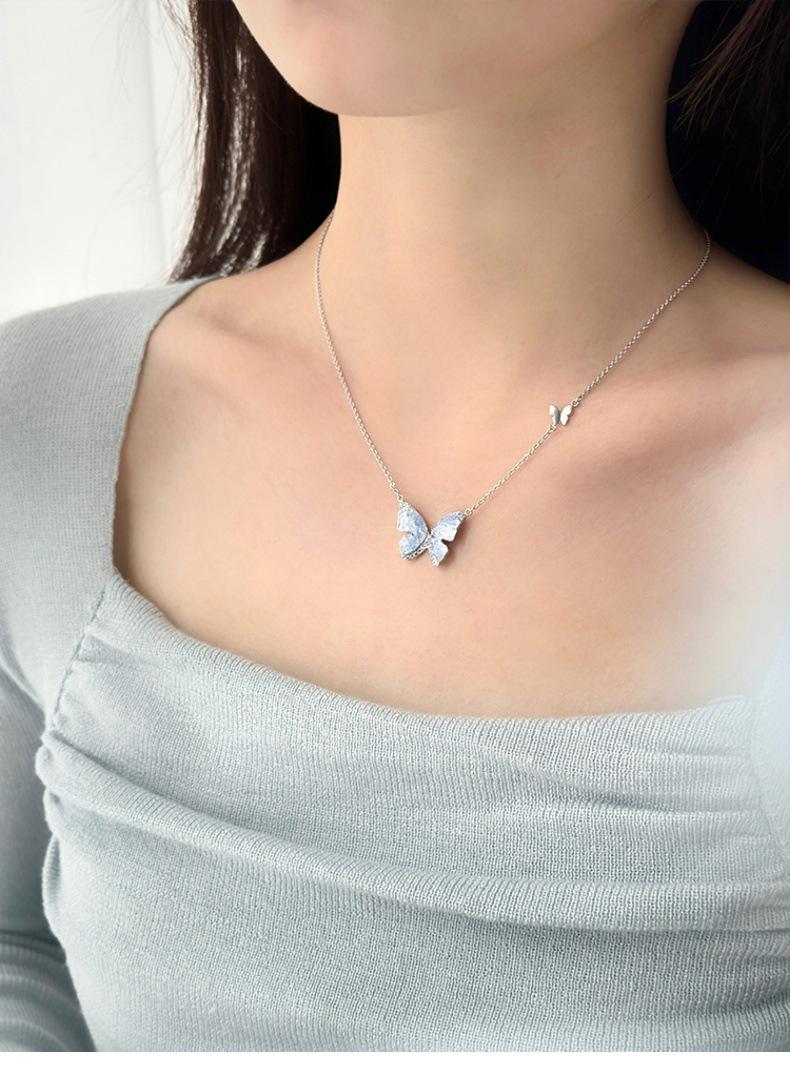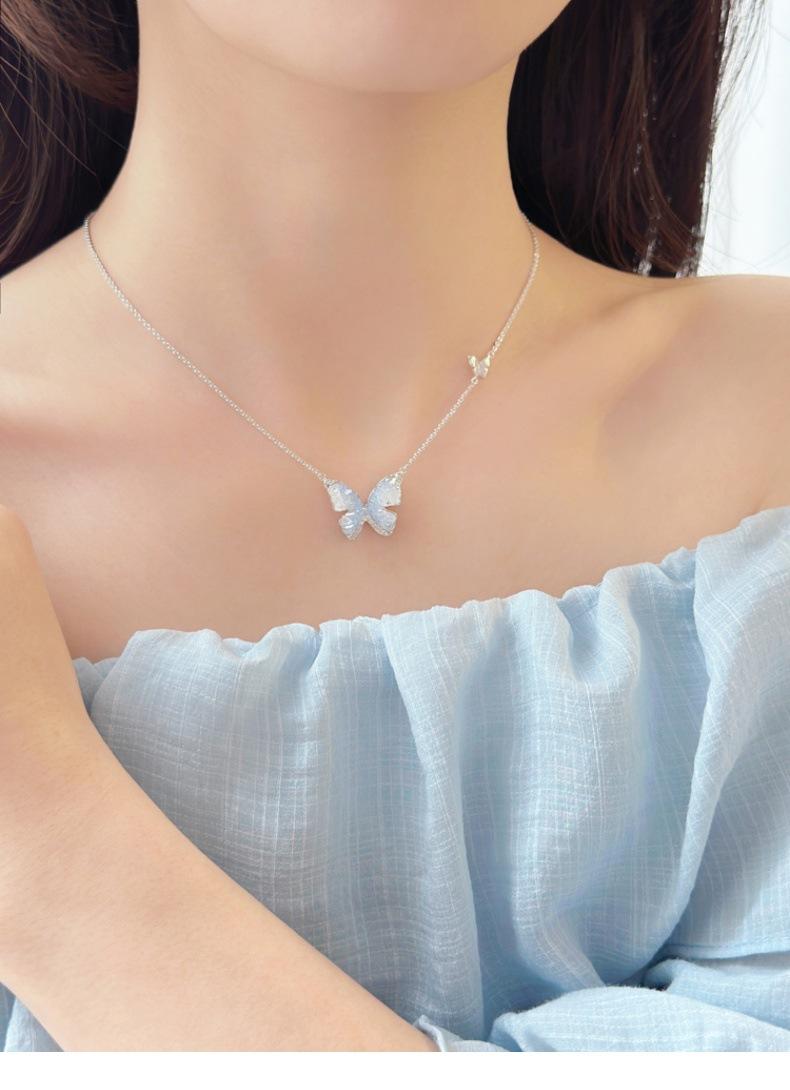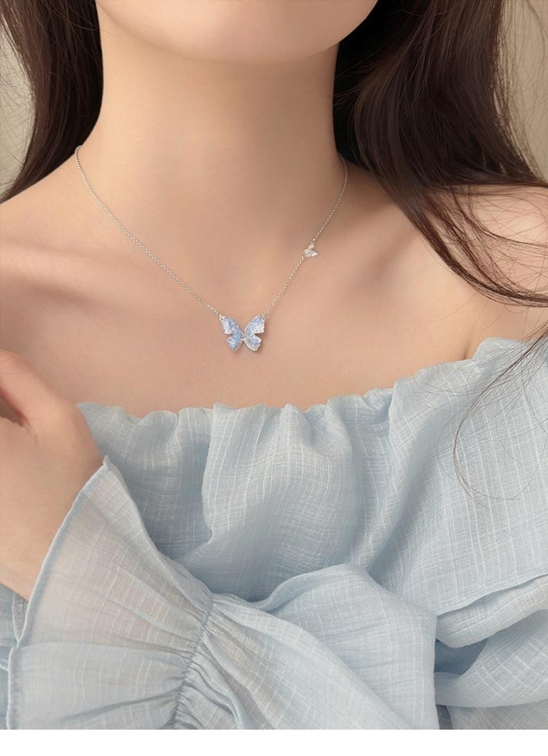 Collar de mariposa de cianita de verano para mujer, cadena de clavícula de verano con temperamento de alto sentido, cadena de clavícula con explosiones, cadena de cuello con temperamento