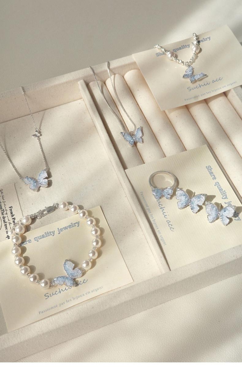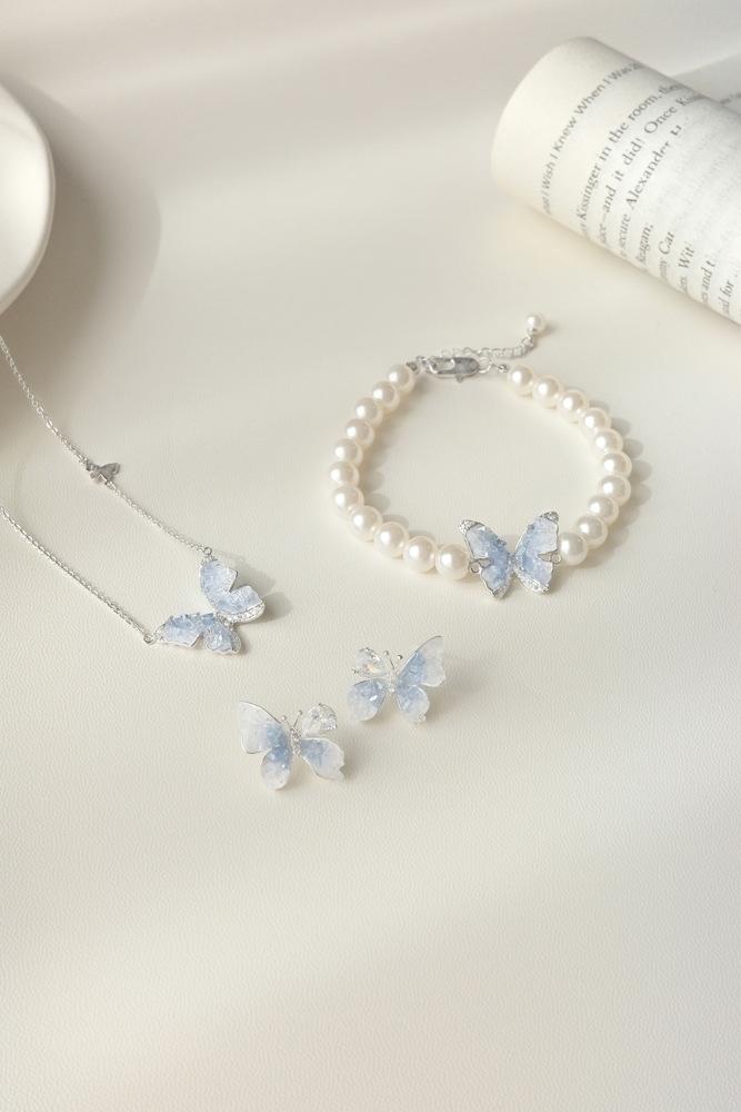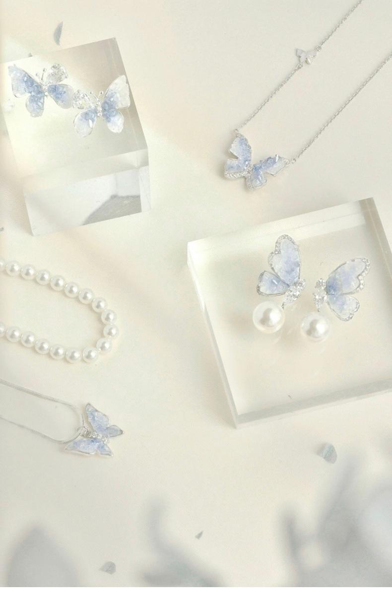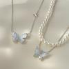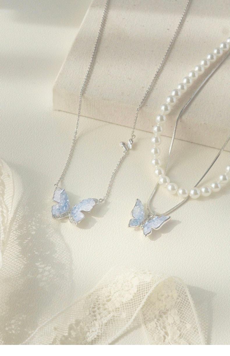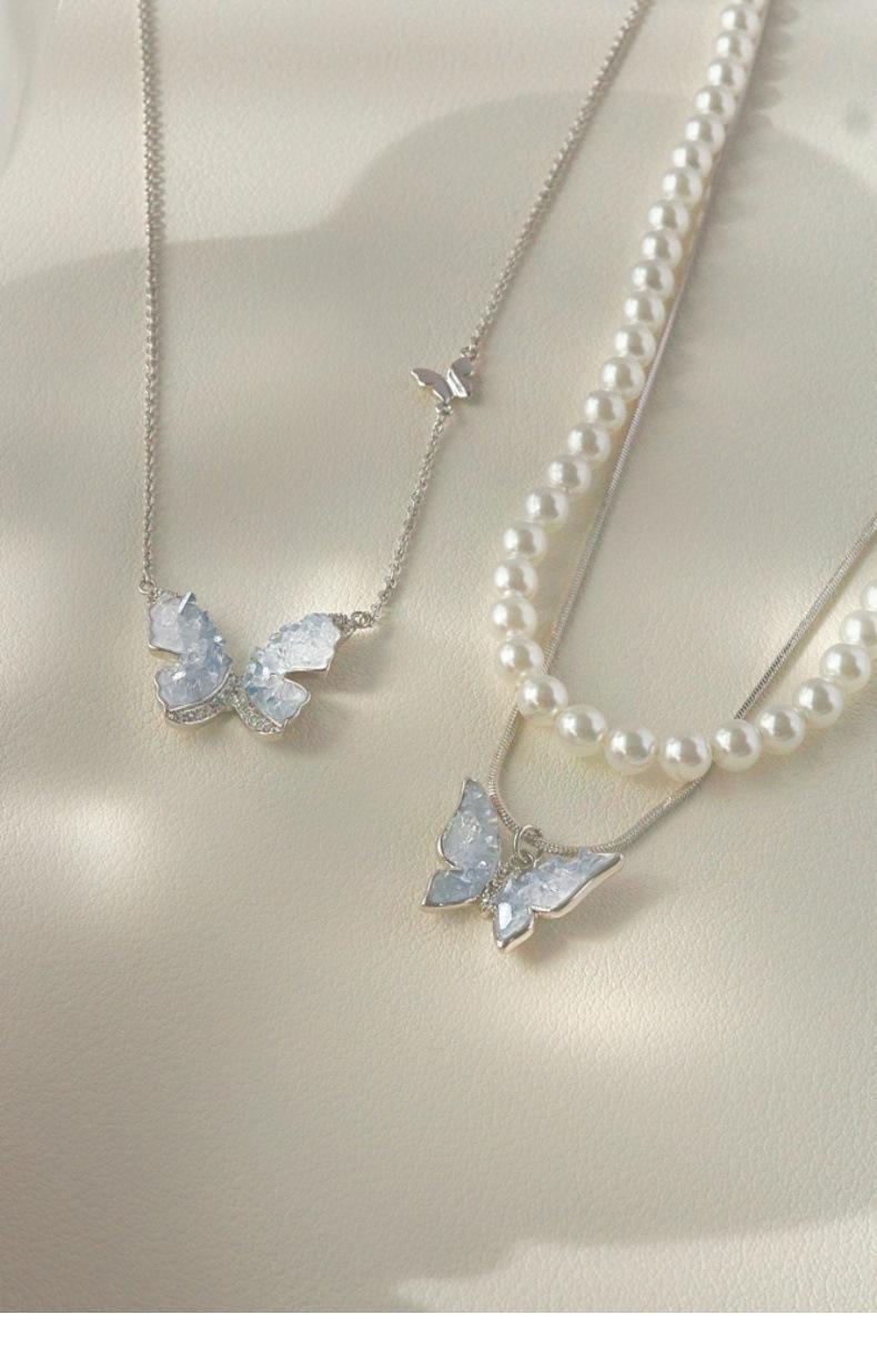 Collar de mariposa de cianita de verano para mujer, cadena de clavícula de verano con temperamento de alto sentido, cadena de clavícula con explosiones, cadena de cuello con temperamento