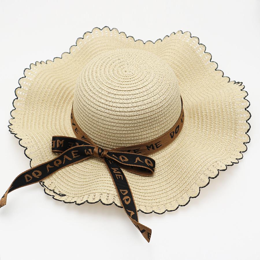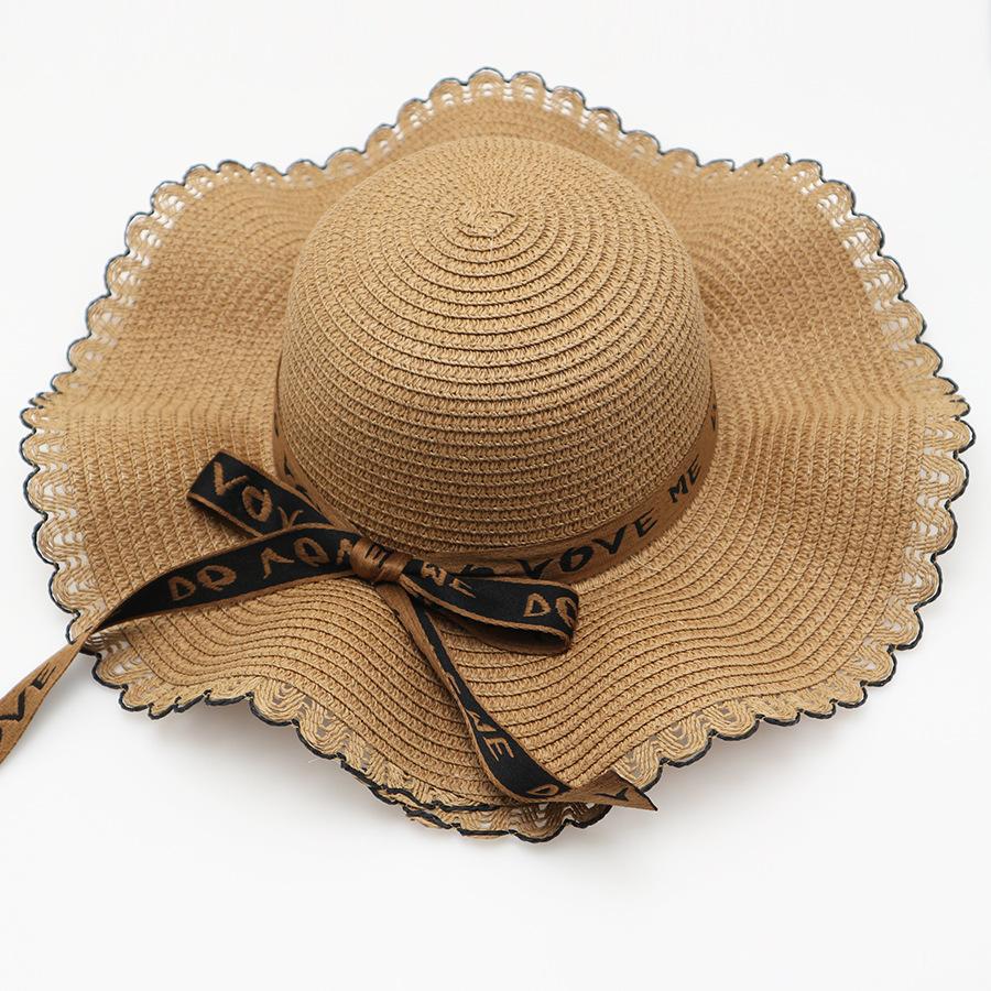 Sombrero de paja de ala ancha para mujer, protección solar, para viajes al aire libre, playa, estilo coreano, sombrero de sol de moda para vacaciones