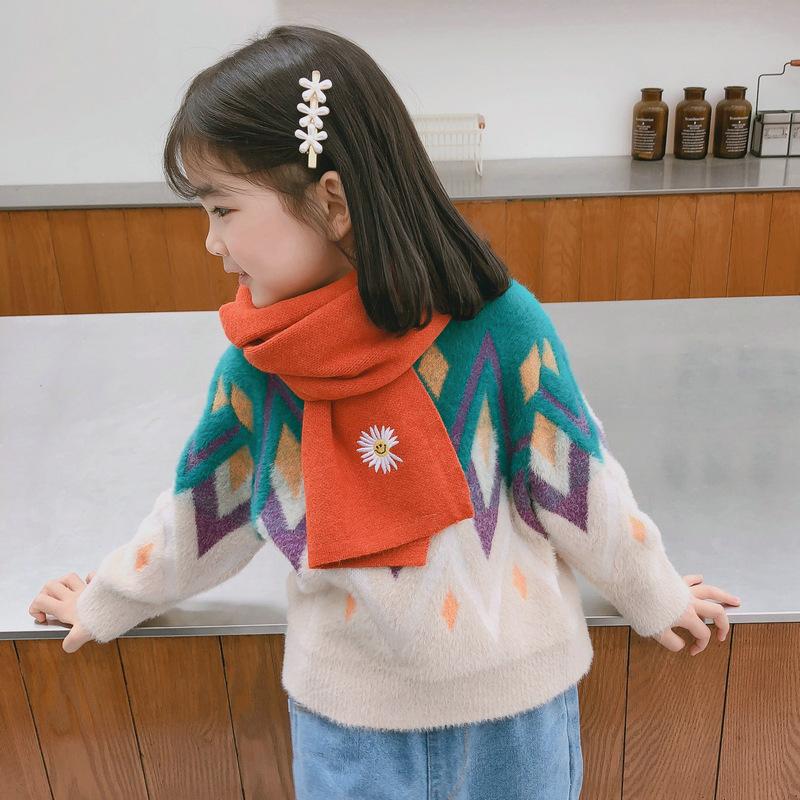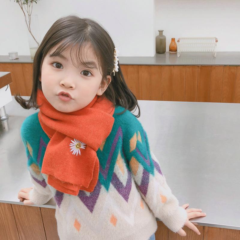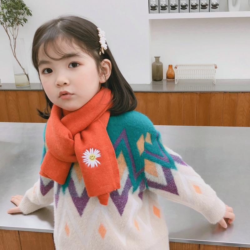 Bufanda de cachemir para niños Daisy de otoño e invierno, cálida y sencilla, de punto, estilo coreano, versátil y de color sólido.
