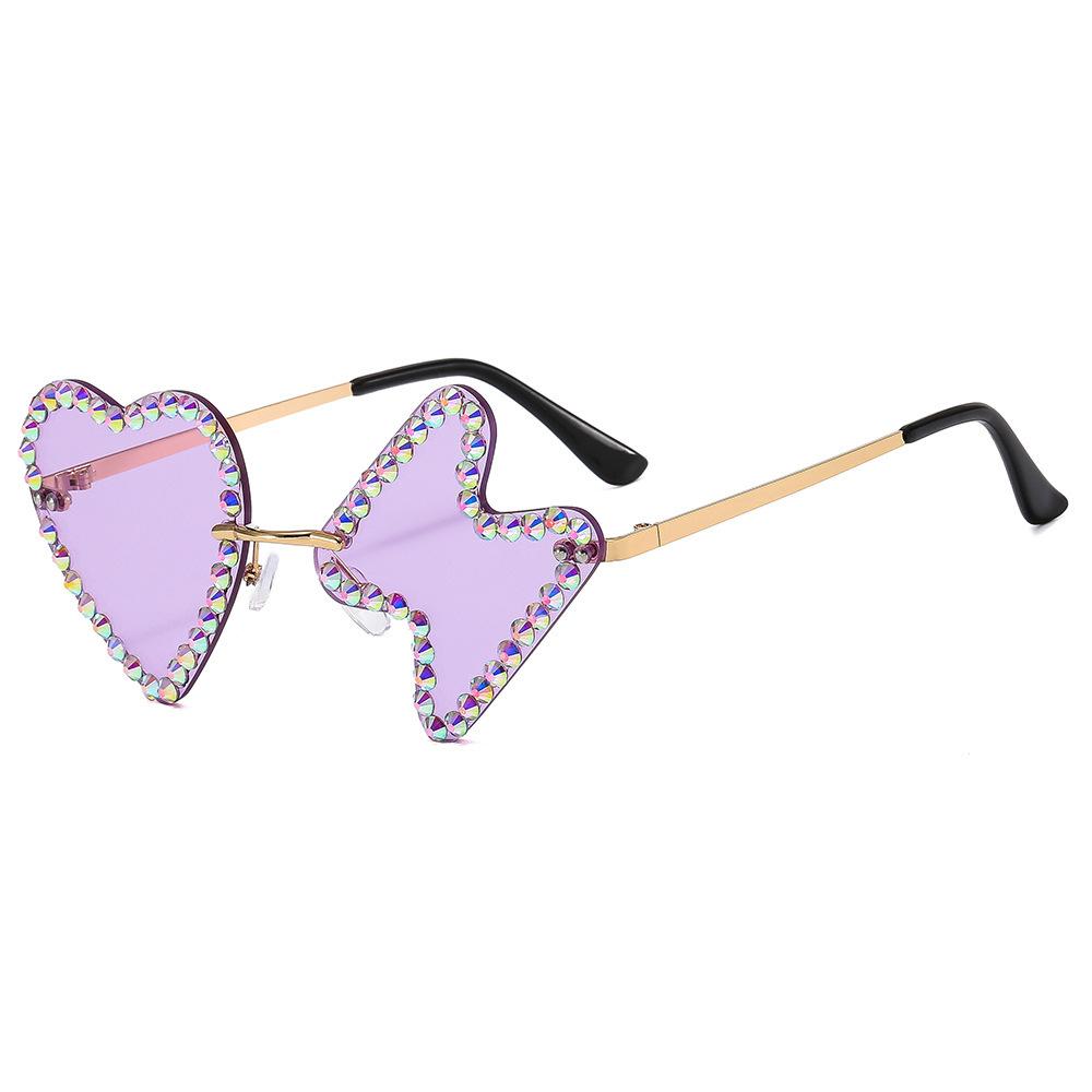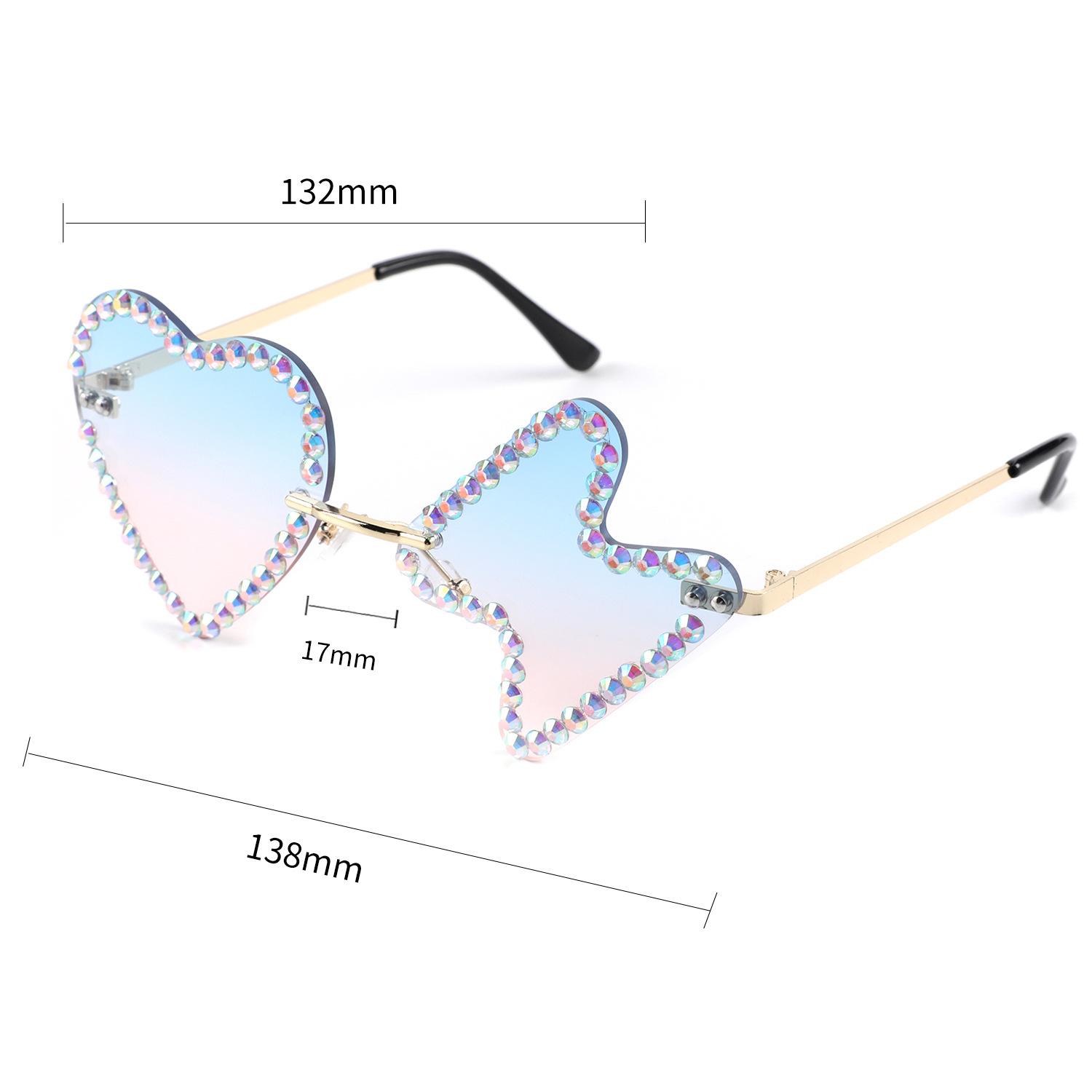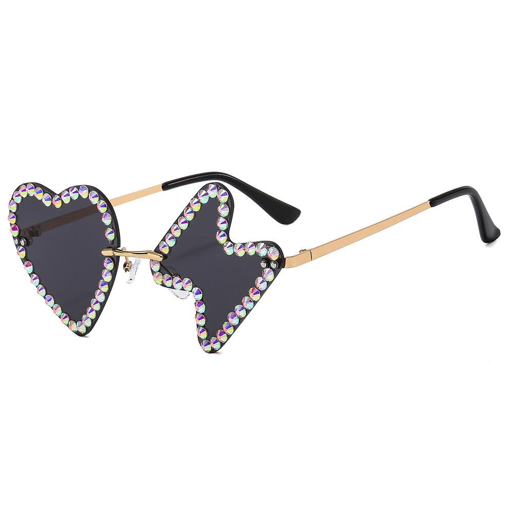 Gafas de sol de fiesta con diamantes de colores sin marco con personalidad de rayo de amor europeo y americano 2024, nuevas gafas de sol irregulares