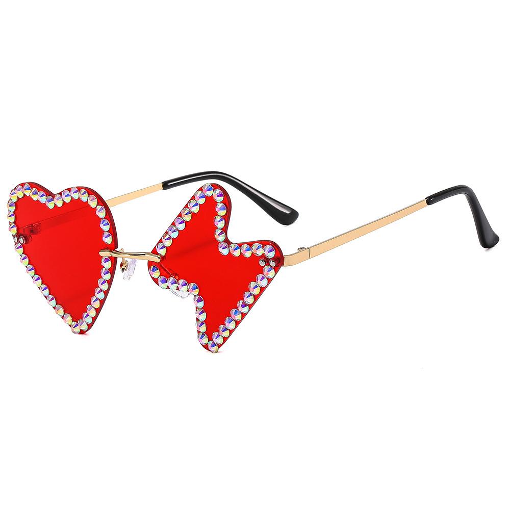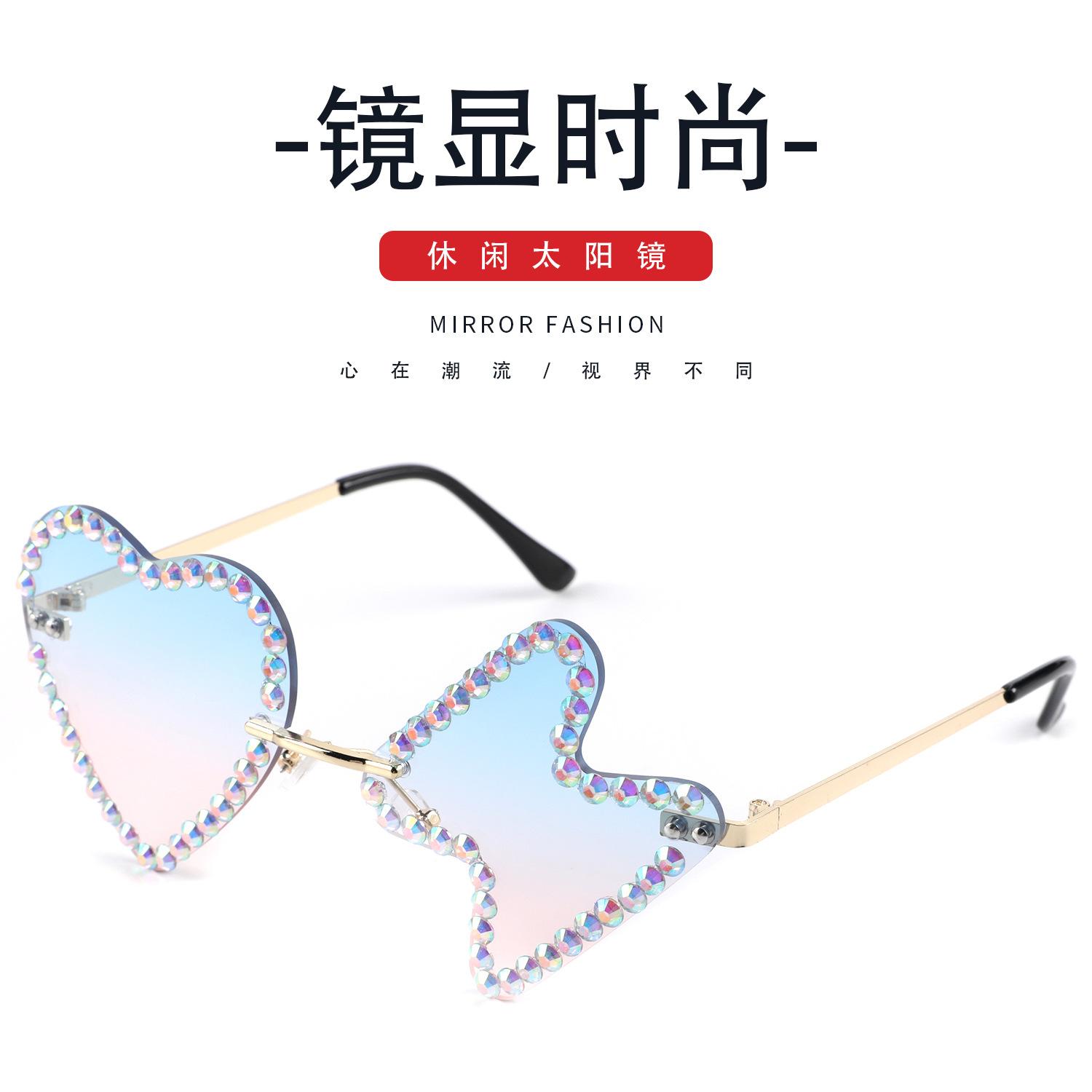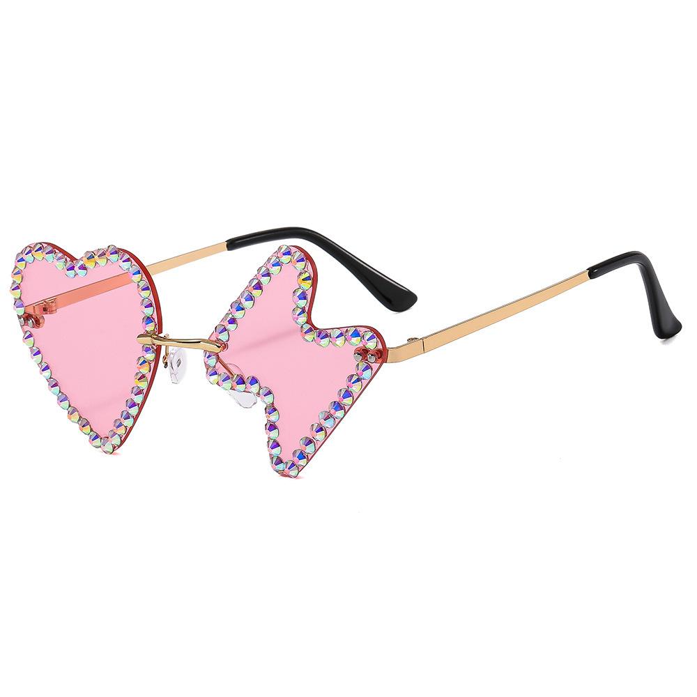 Gafas de sol de fiesta con diamantes de colores sin marco con personalidad de rayo de amor europeo y americano 2024, nuevas gafas de sol irregulares