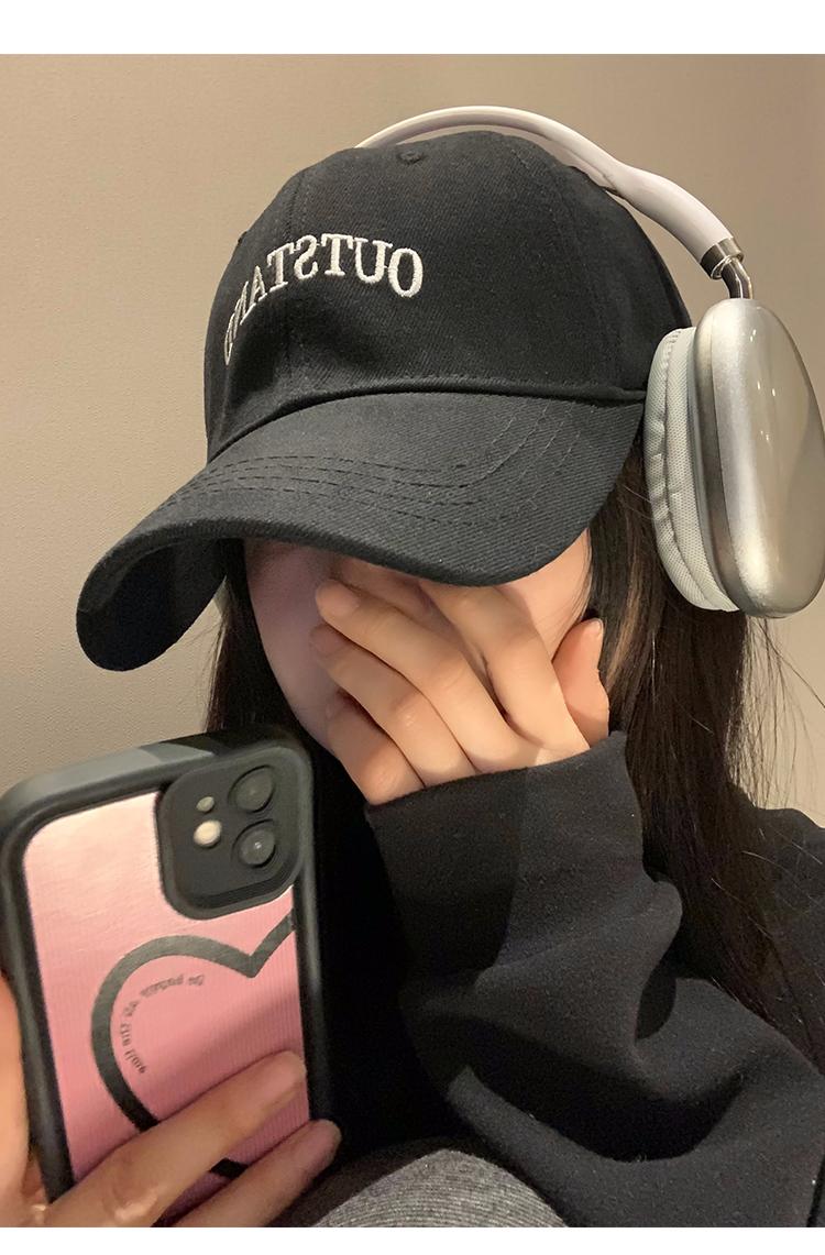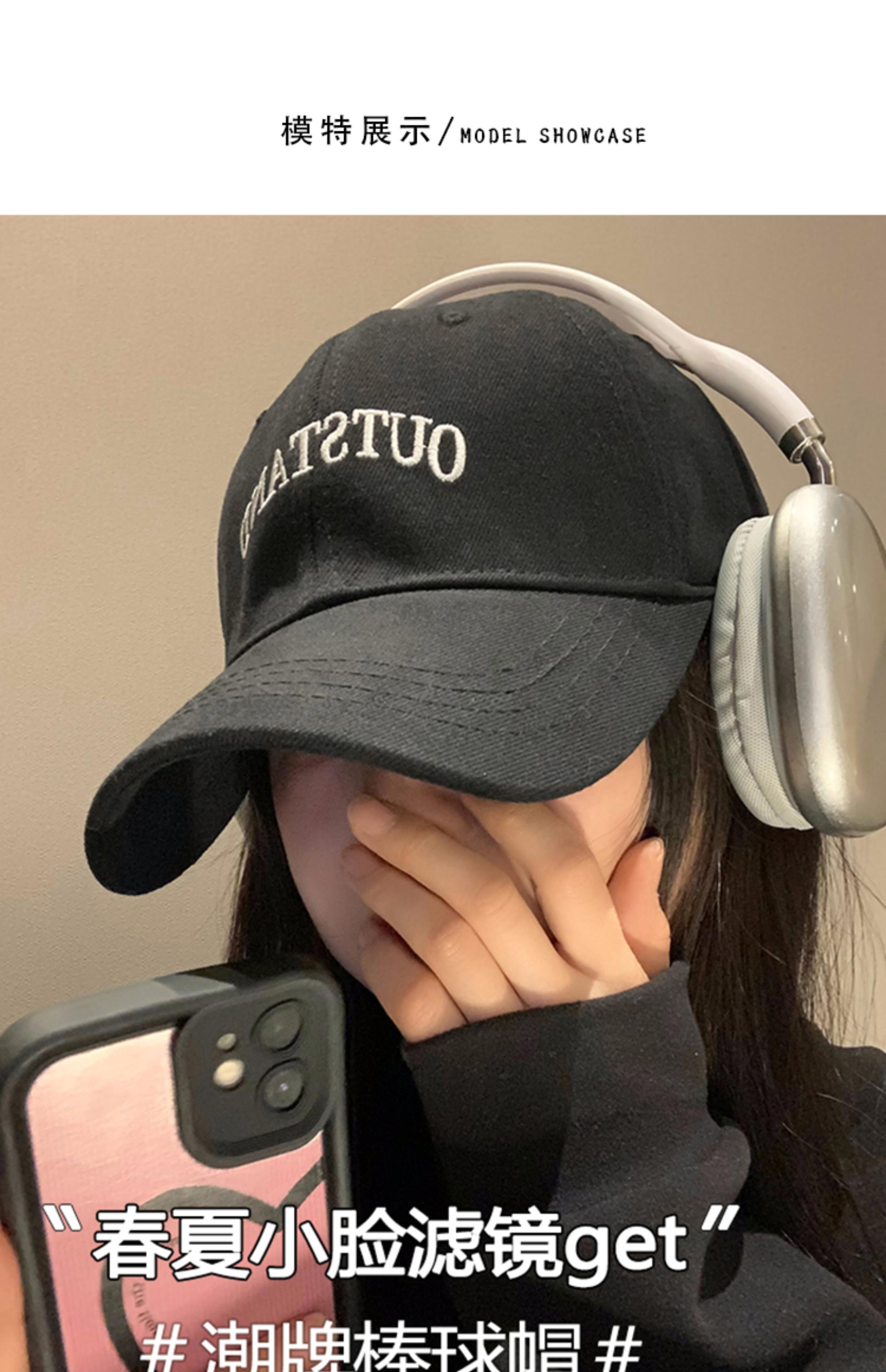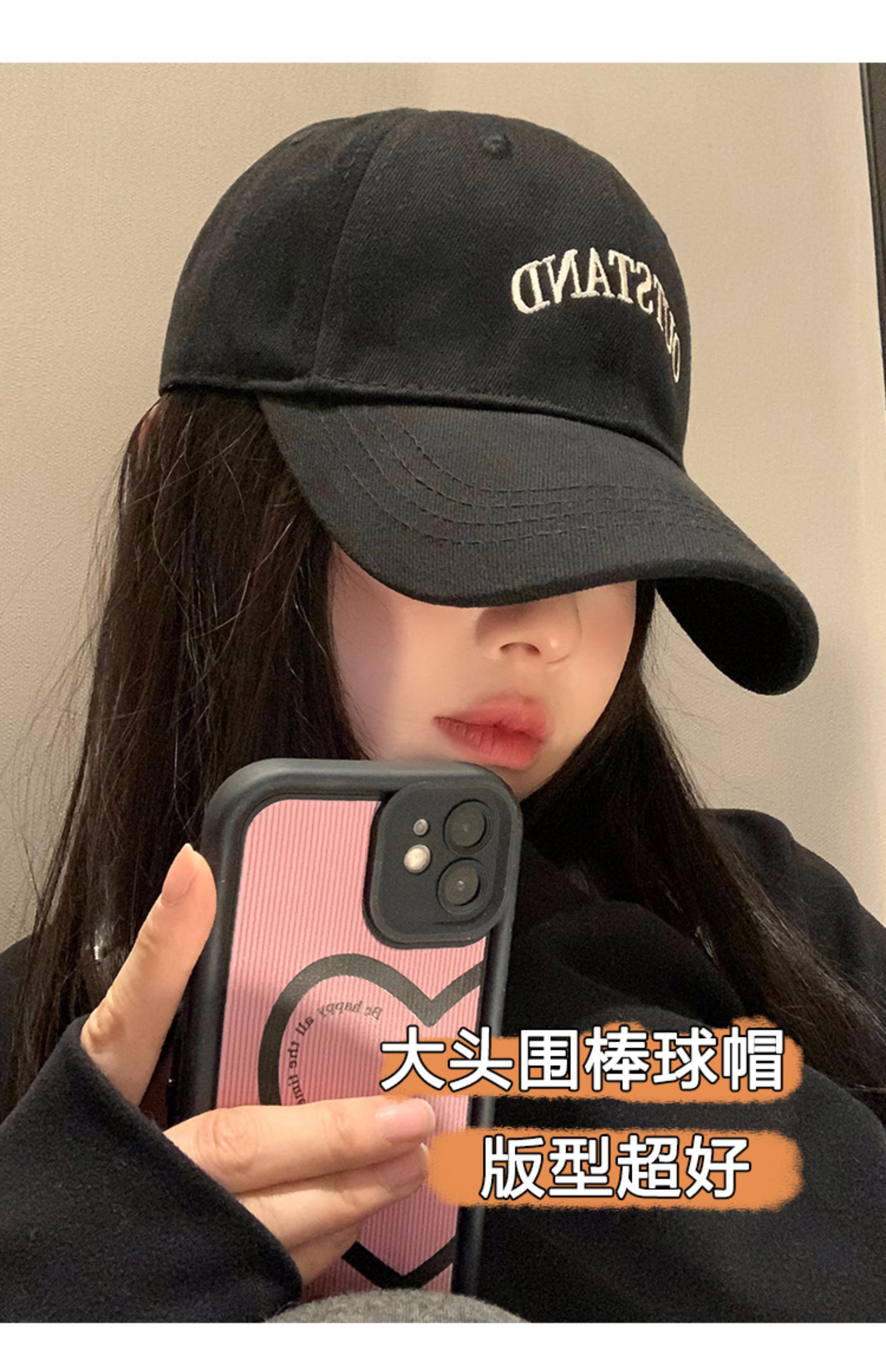 Gorra de béisbol negra para mujer Primavera y Verano 2024 nueva extra grande profundización ala ancha circunferencia de cabeza grande cara que se ve pequeña gorra con visera marea