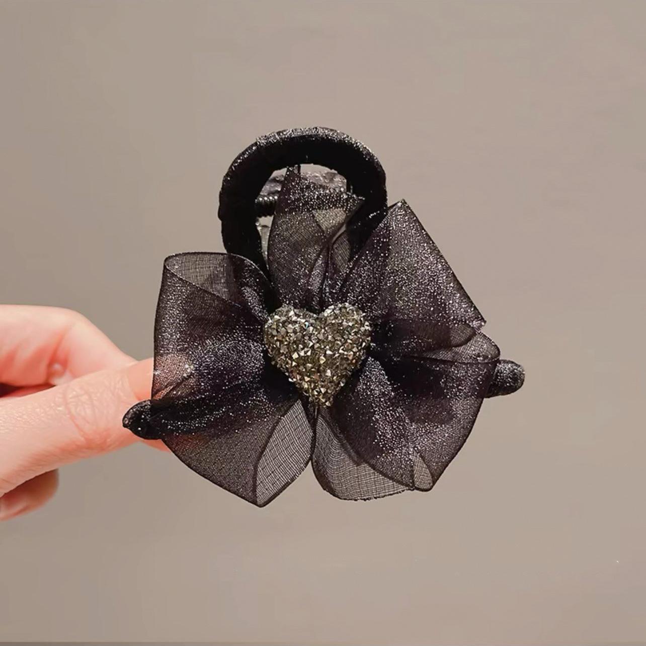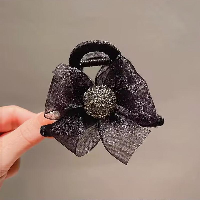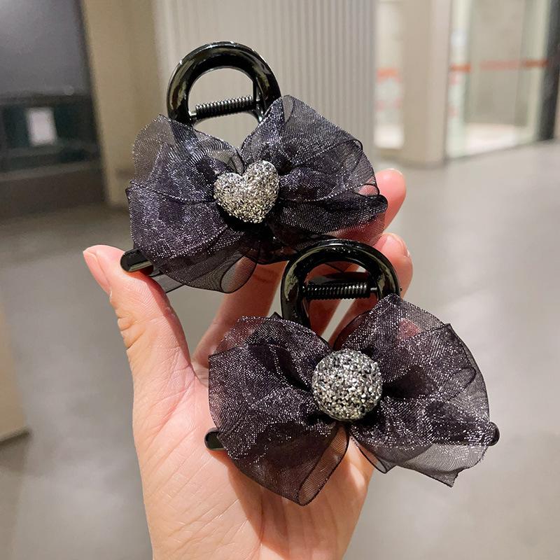 | Clip de lazo negro con pluma temperamental, horquilla de nube de burbuja femenina, parte posterior de la cabeza, clip de tiburón grande |