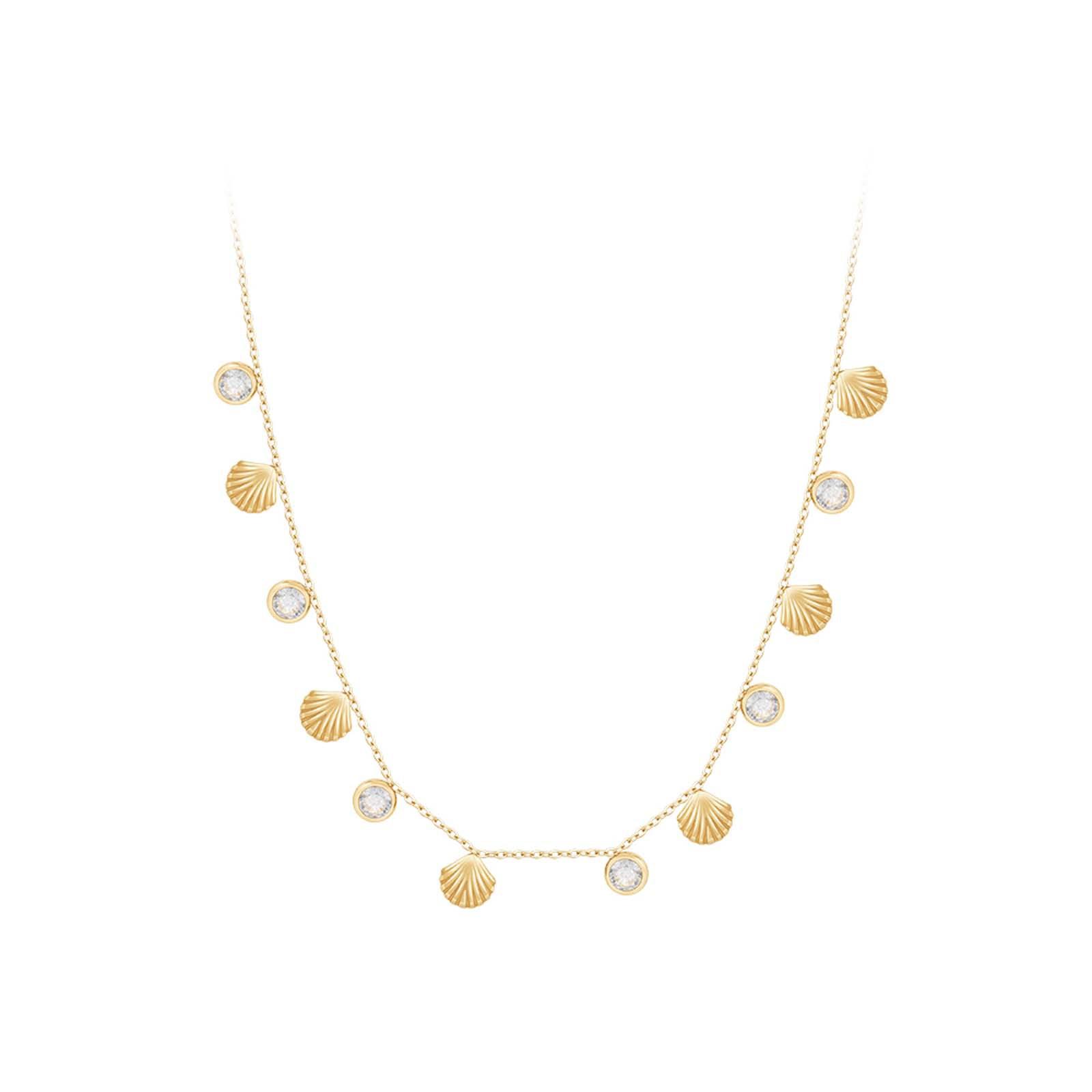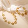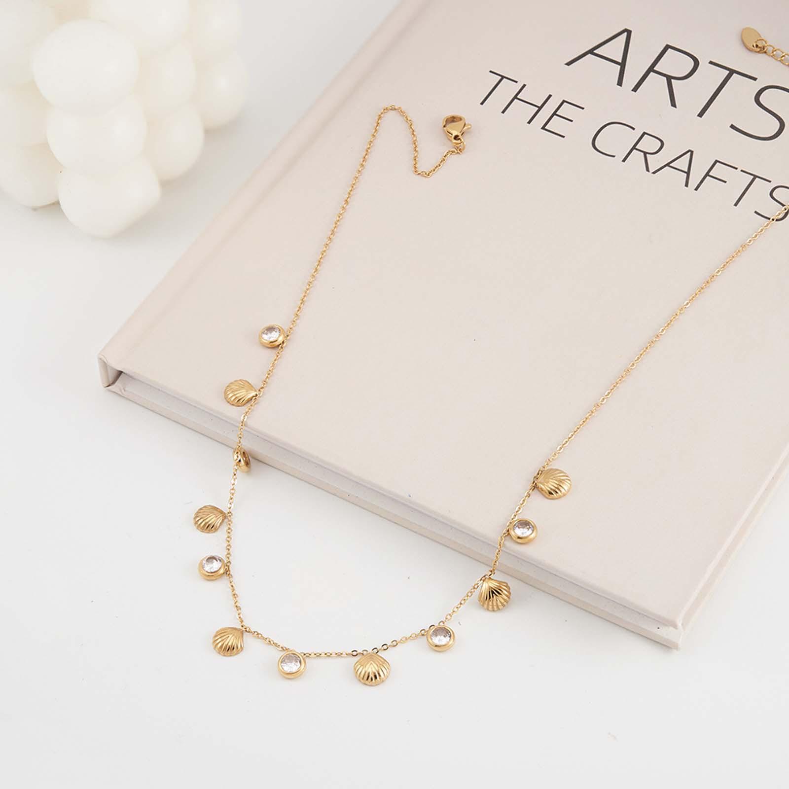 Collar moderno con colgante pequeño de circonita y diseño de nicho de acero de titanio bañado en oro de 18 quilates, estilo INS, P243433