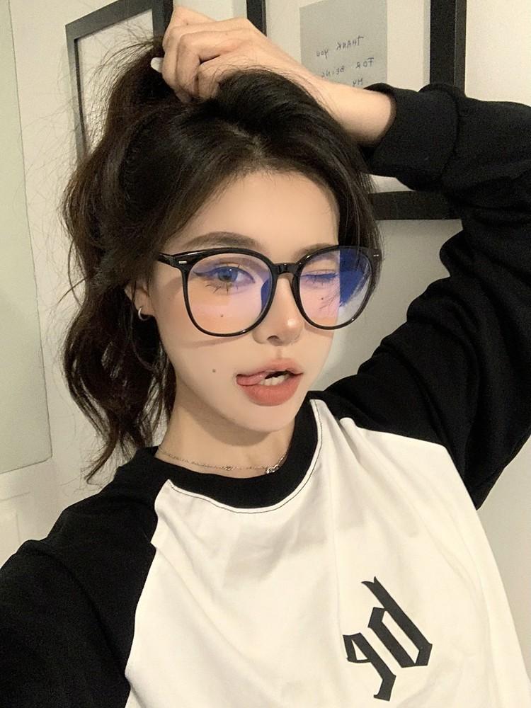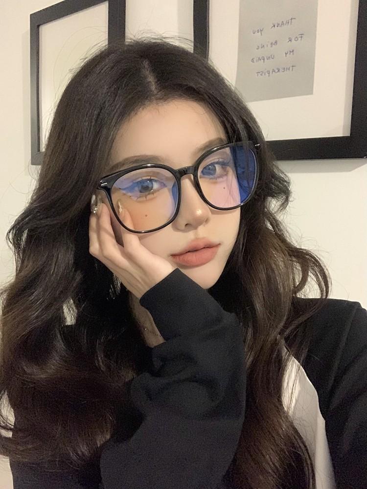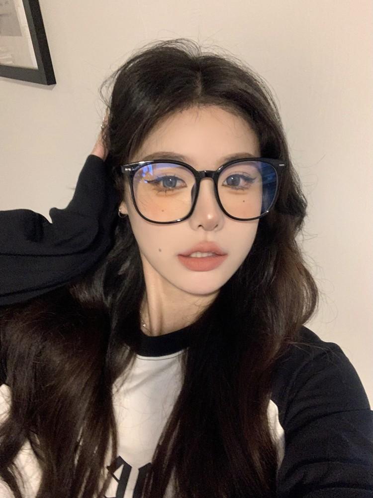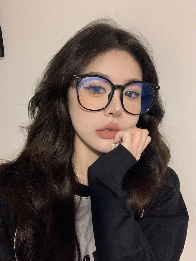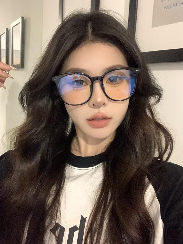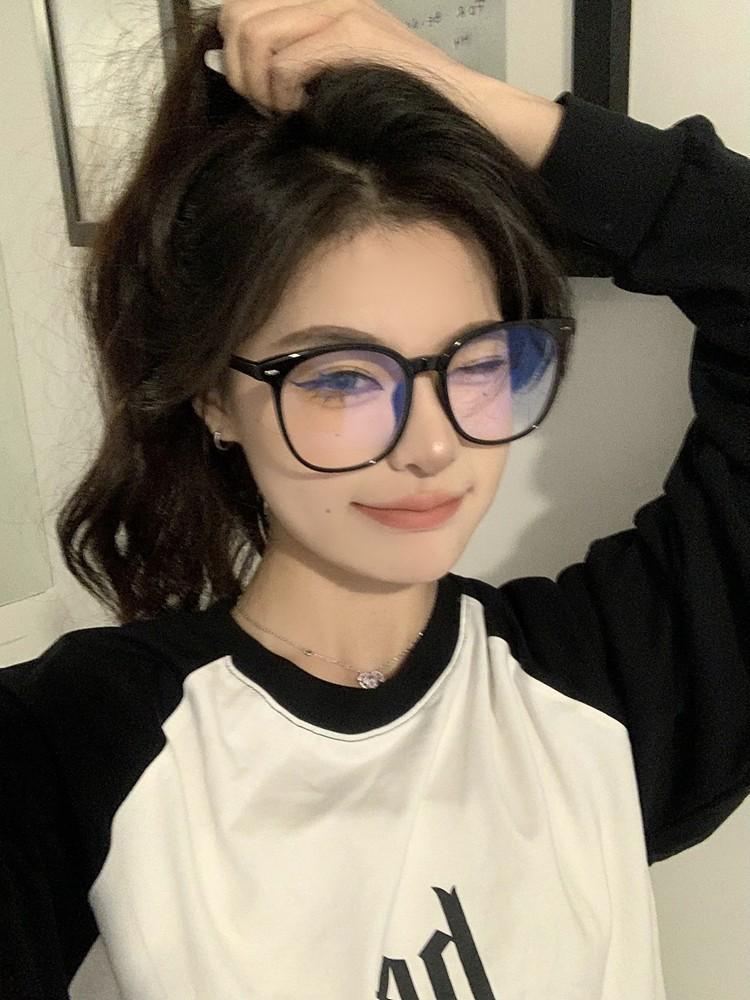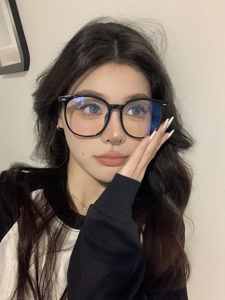 Lentes de montura negra para mujer sin maquillaje, miopía de montura grande se pueden equipar con monturas graduadas para rostros cuadrados y redondos, rostros grandes, aspecto adelgazante y luz anti-azul