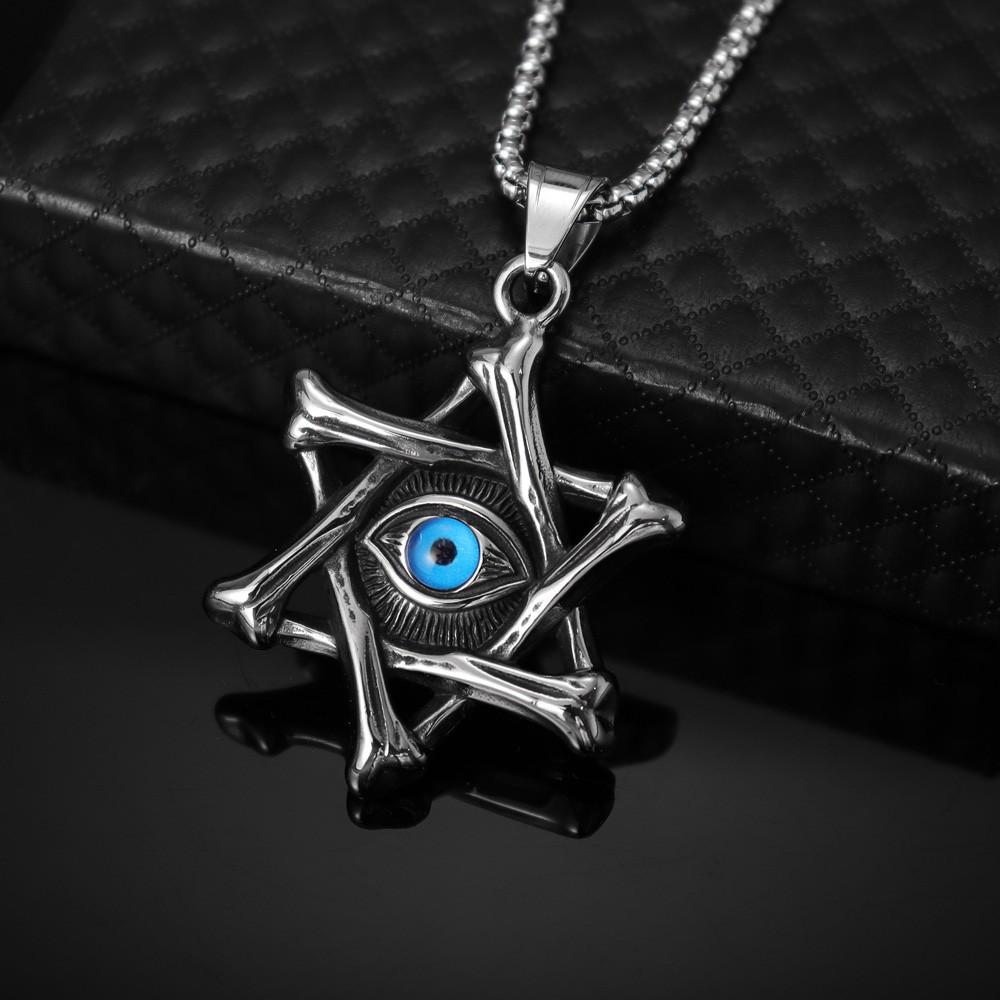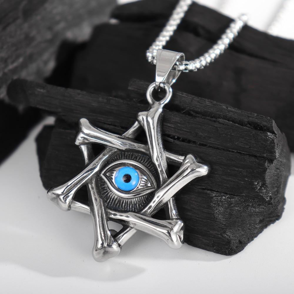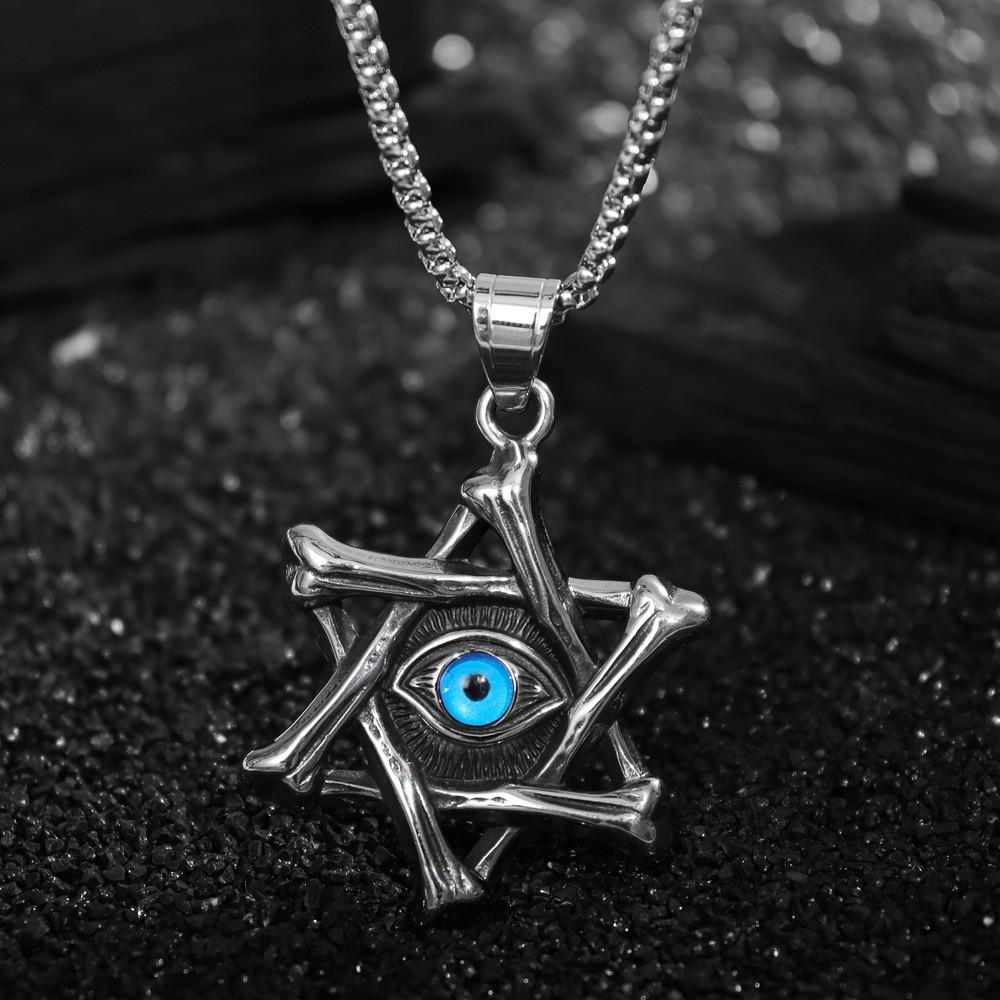 Collar con colgante de aleación para hombre Temu, personalizado, retro, estrella de seis puntas, ojo del diablo, entrega de una sola pieza