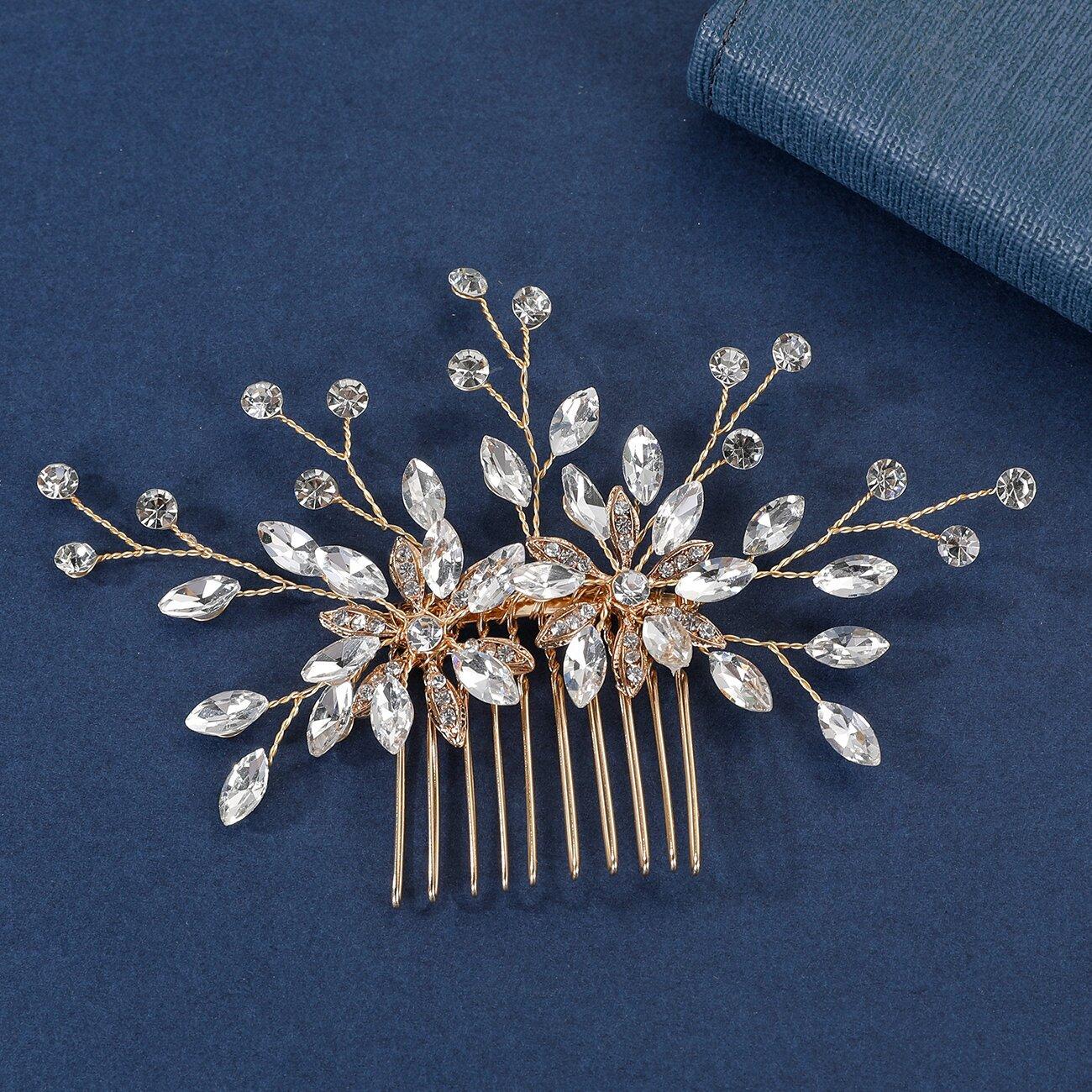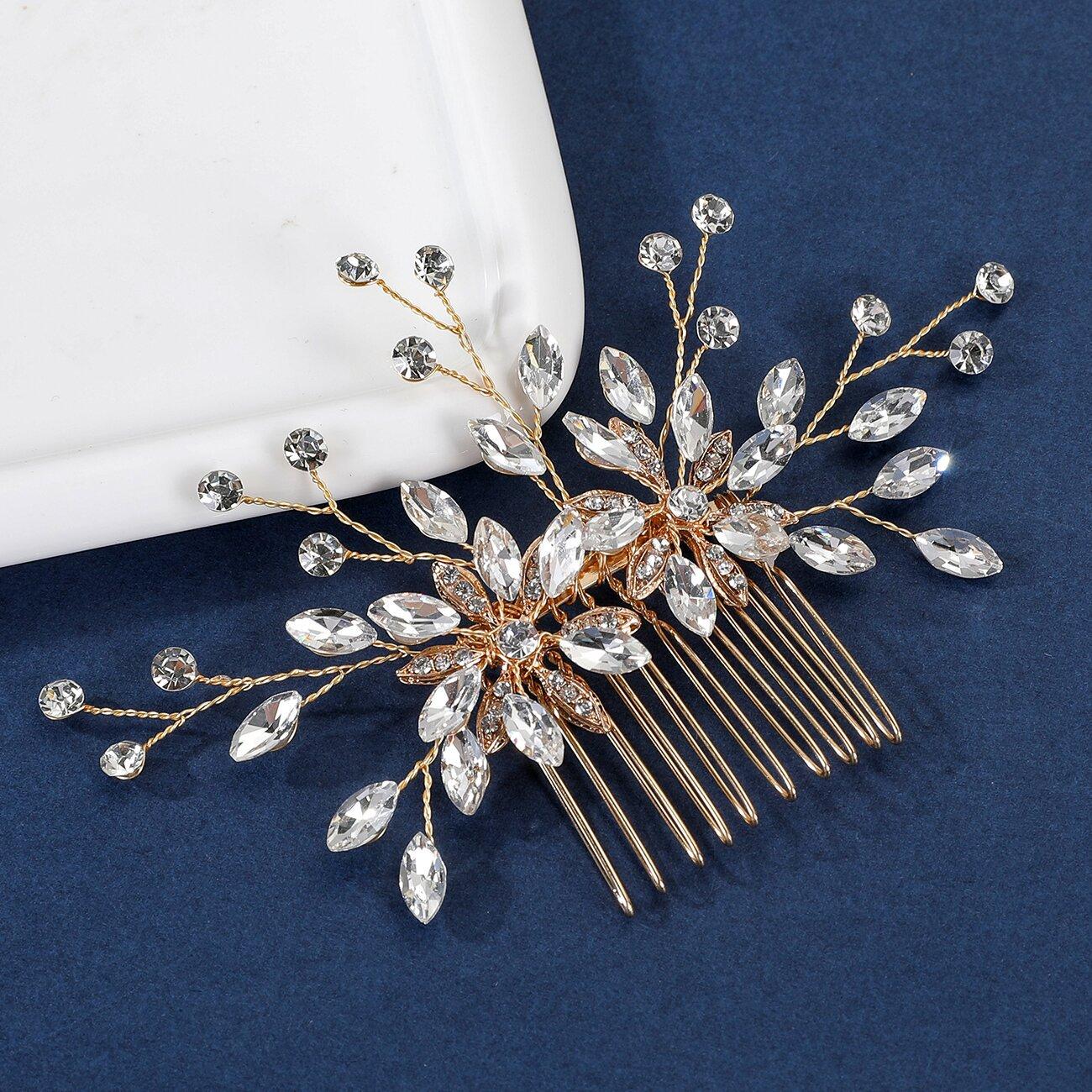 Peine de diamantes de imitación transfronterizos europeos y americanos, tocado de novia sencillo, elegante horquilla para el pelo, peine para fotos de boda, accesorios para el cabello al por mayor