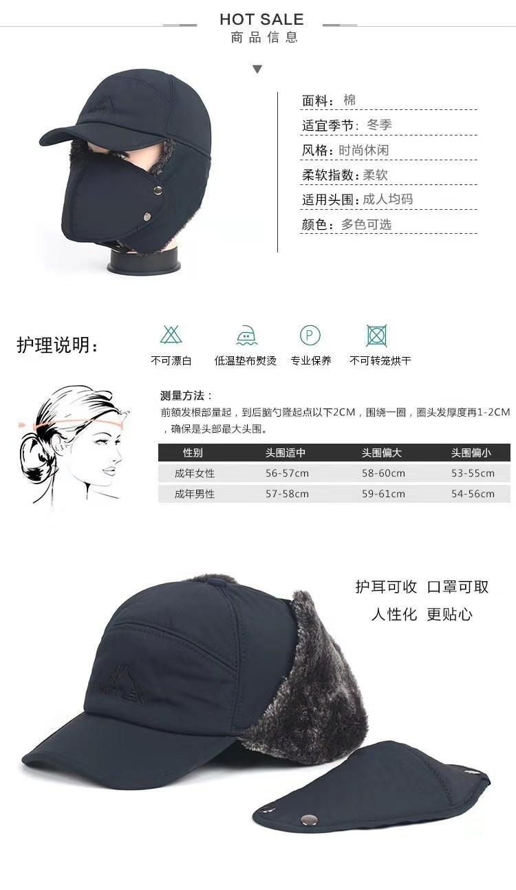 Gorro de invierno Lei Feng, gorra de béisbol de algodón estilo coreano, máscara extraíble, gorra con visera cálida a prueba de frío, gorro cálido a prueba de viento y nieve.