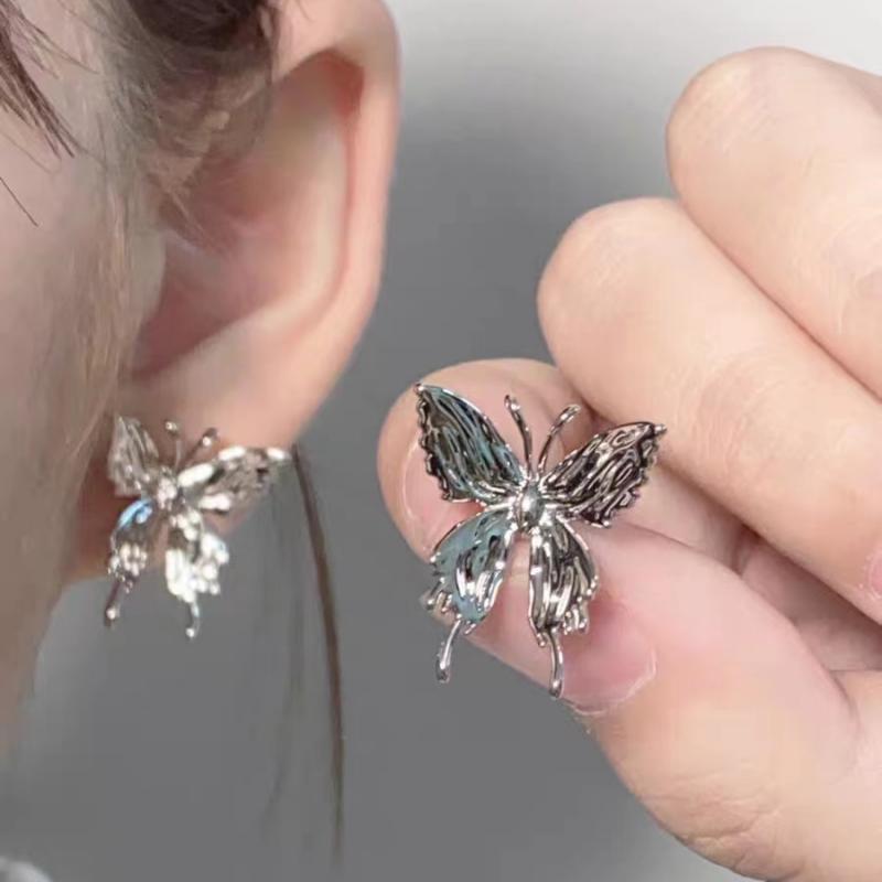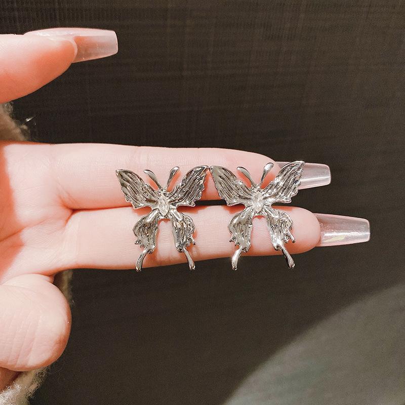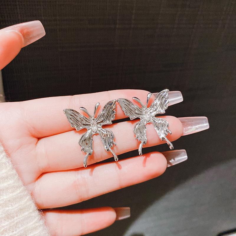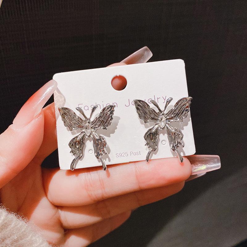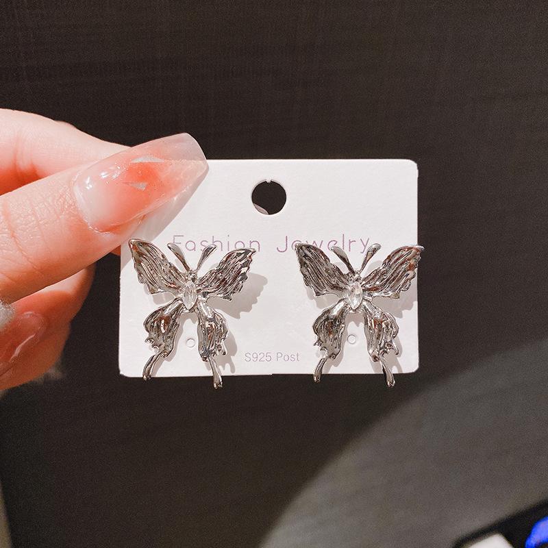 Pendientes de mariposa grandes plisados con aguja de plata s925, nuevos pendientes de estilo coreano, estilo frío, pendientes de temperamento dulce y fresco, venta al por mayor