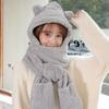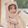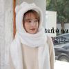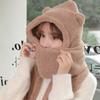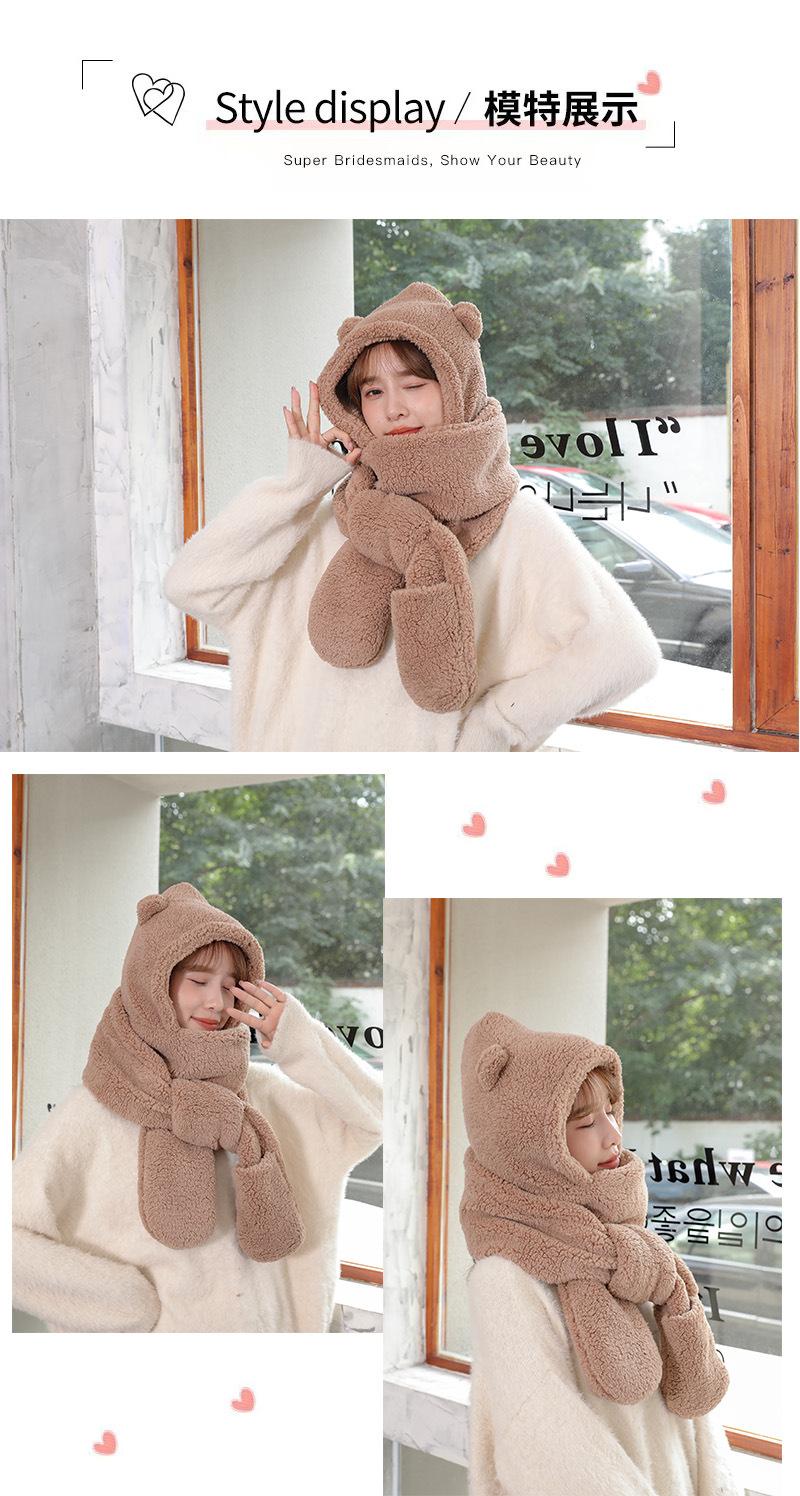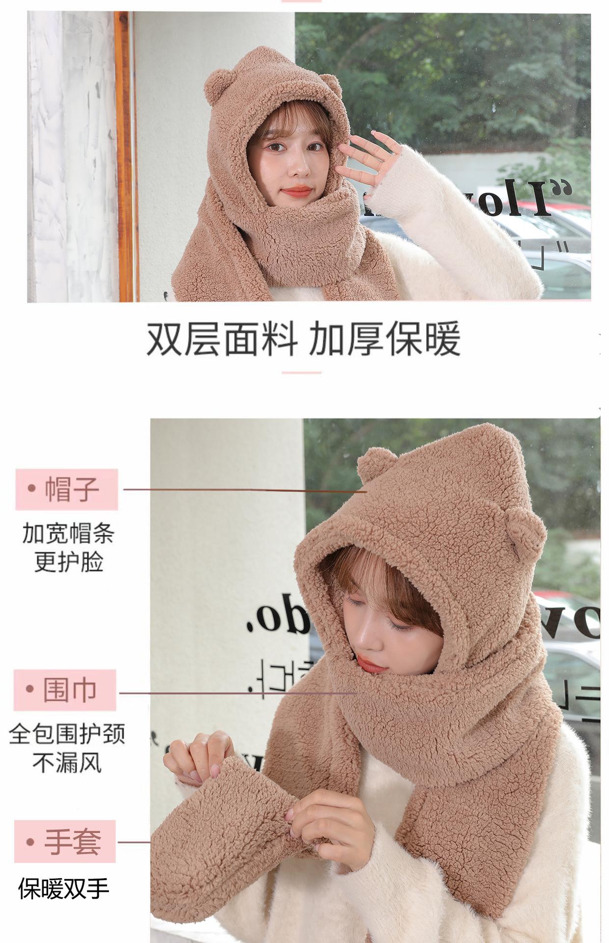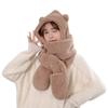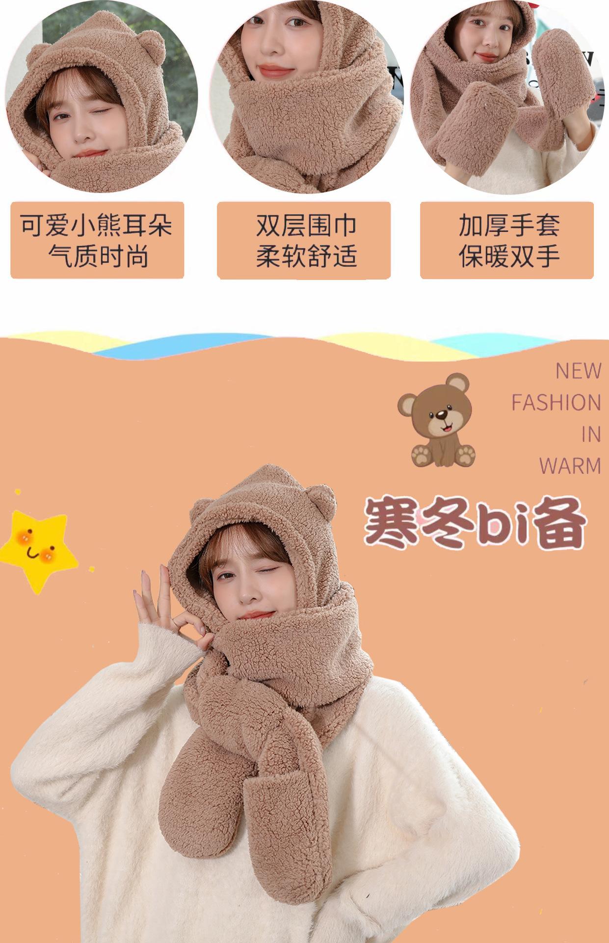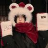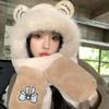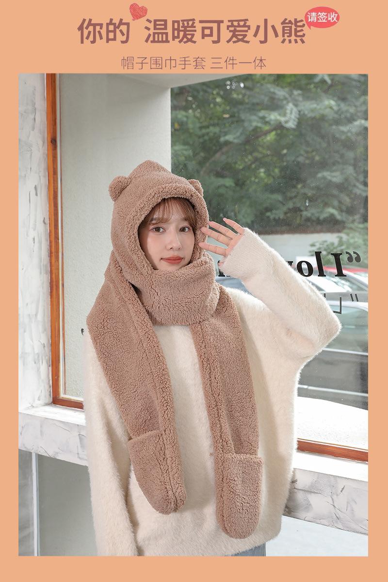 Set de tres piezas de gorro de oso, guantes y bufanda, invierno, lindo, forro polar, forro polar de coral, una pieza con capucha, cálido para el cuello, gorro para mujer