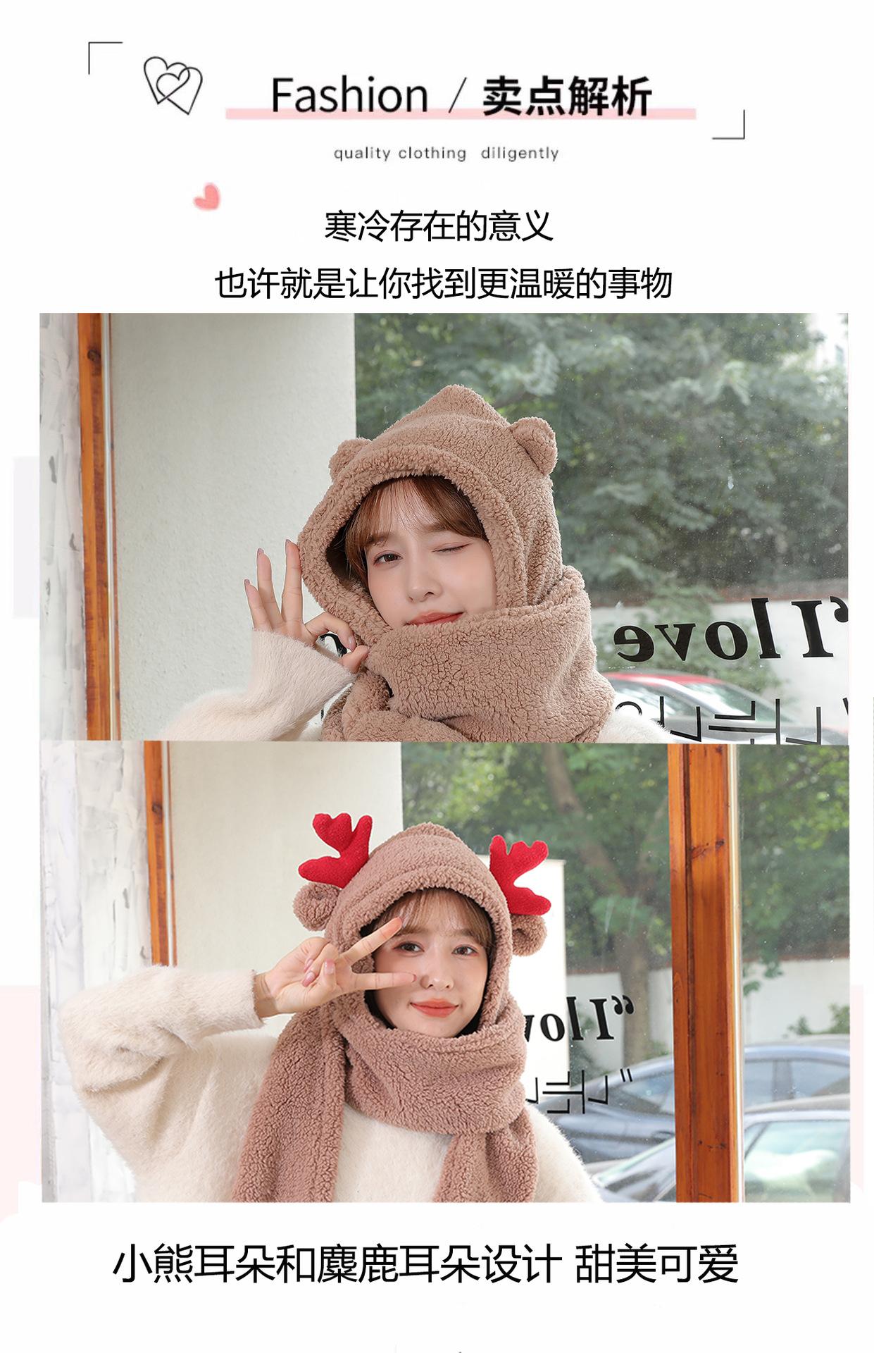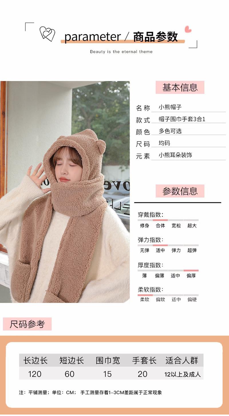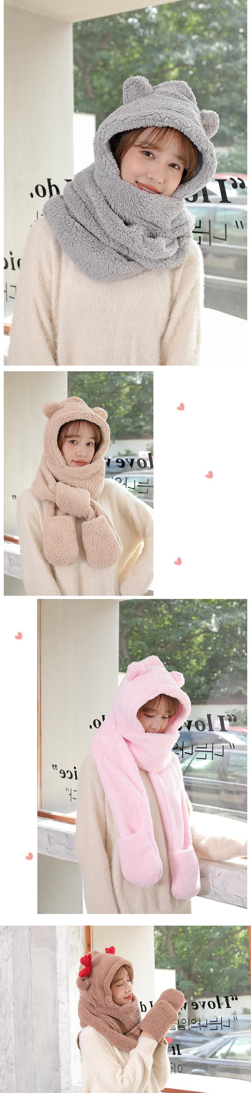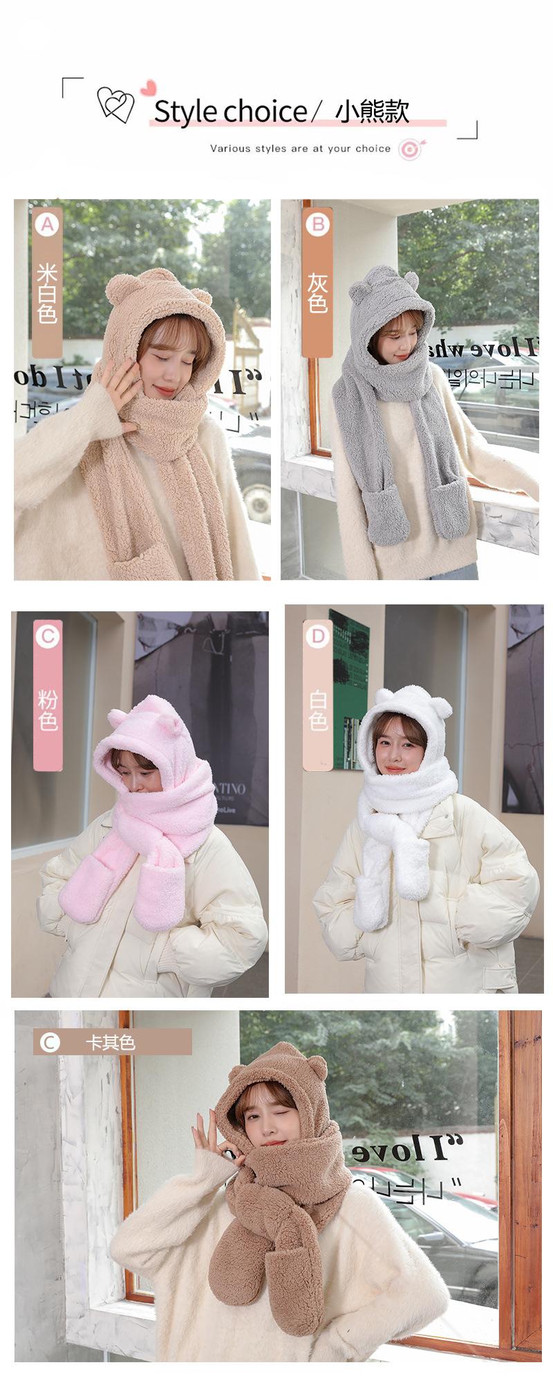 Set de tres piezas de gorro de oso, guantes y bufanda, invierno, lindo, forro polar, forro polar de coral, una pieza con capucha, cálido para el cuello, gorro para mujer