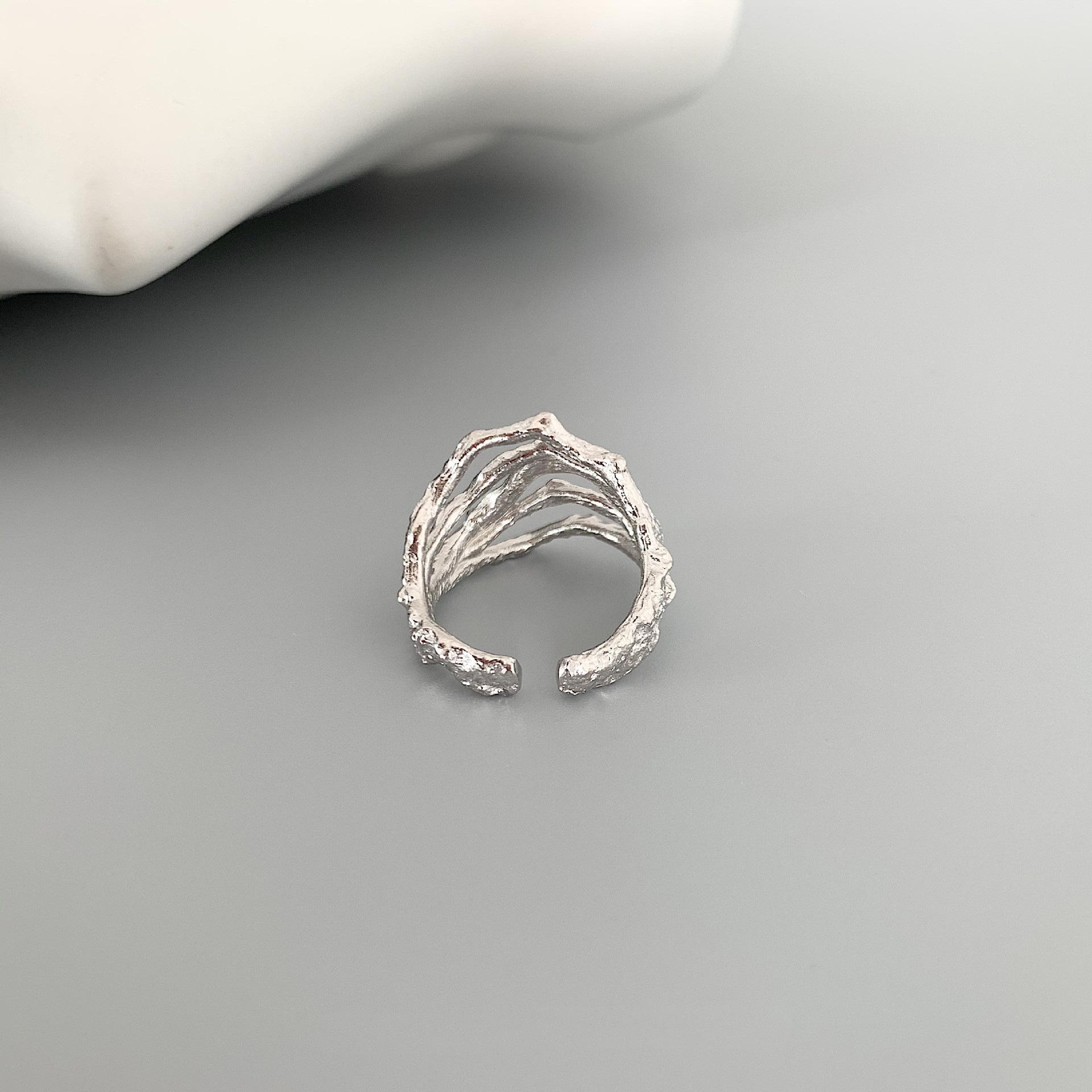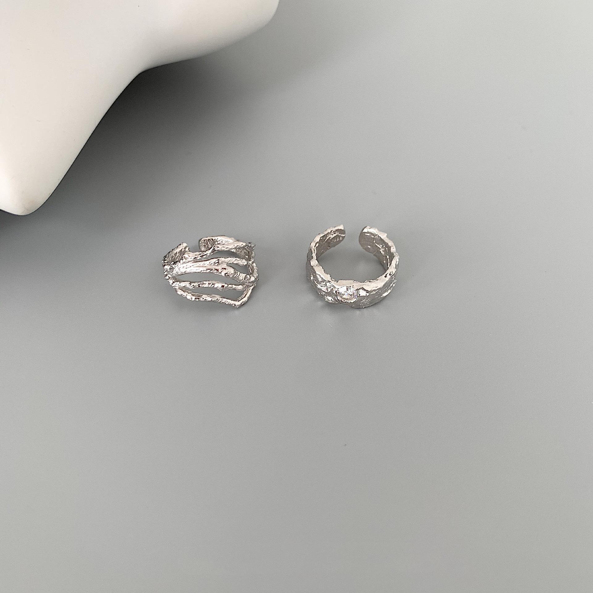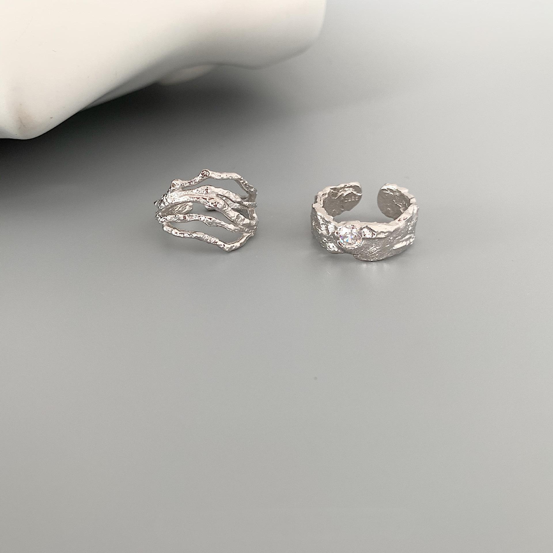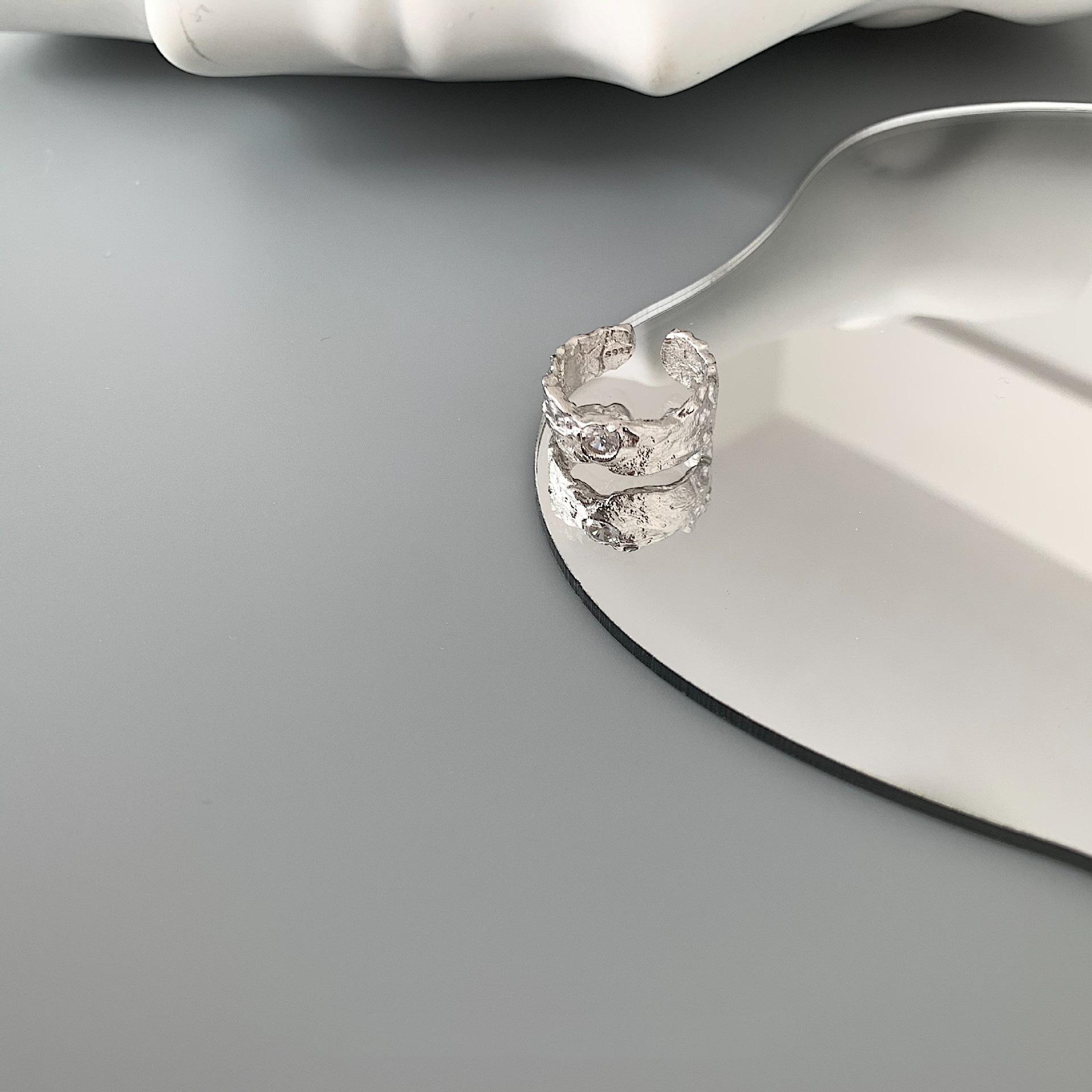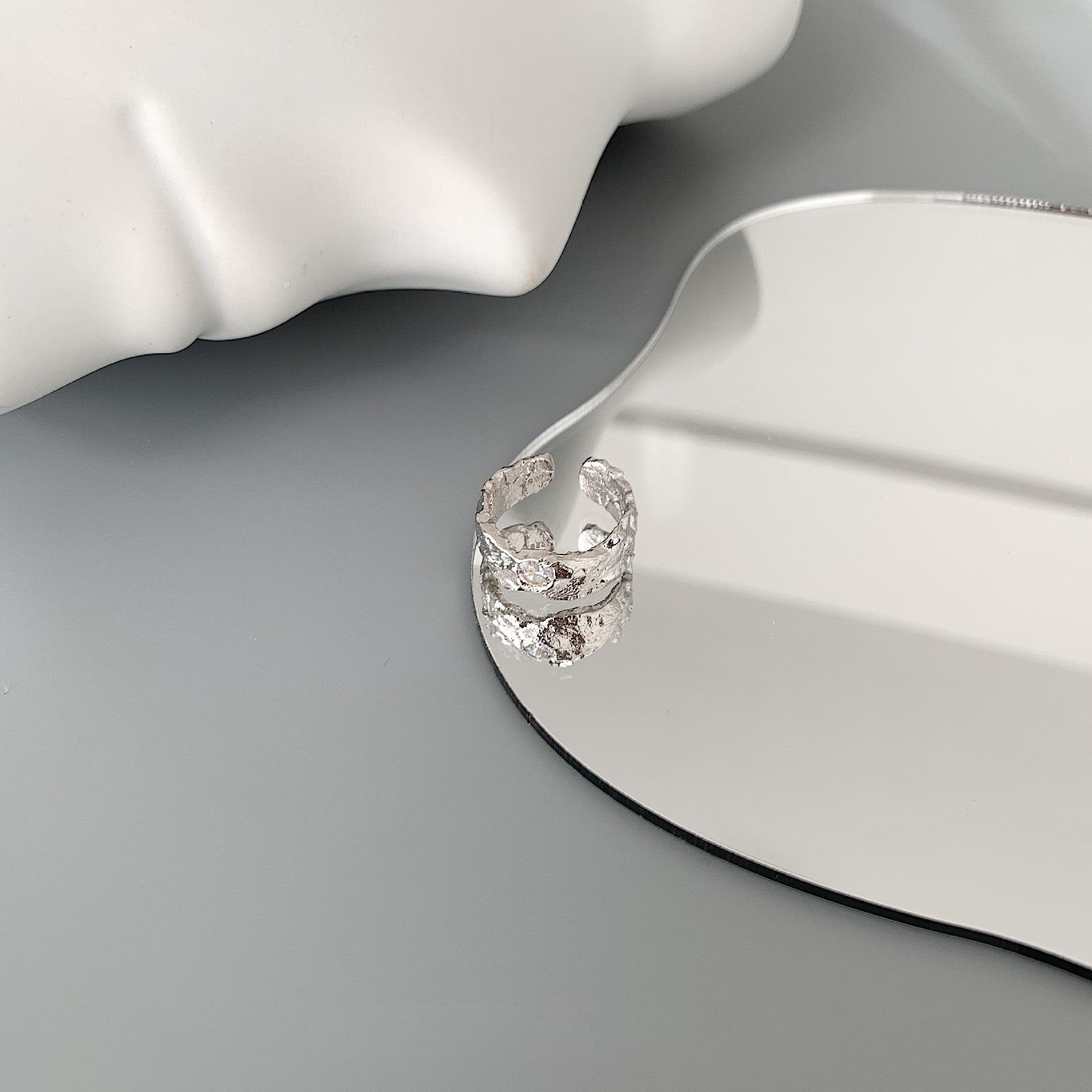 Anillo Geométrico Irregular de Plata S925 Estilo Coreano para Mujer Moda Retro Hip Hop Zircón Anillo Abierto Anillo de Dedo Creativo