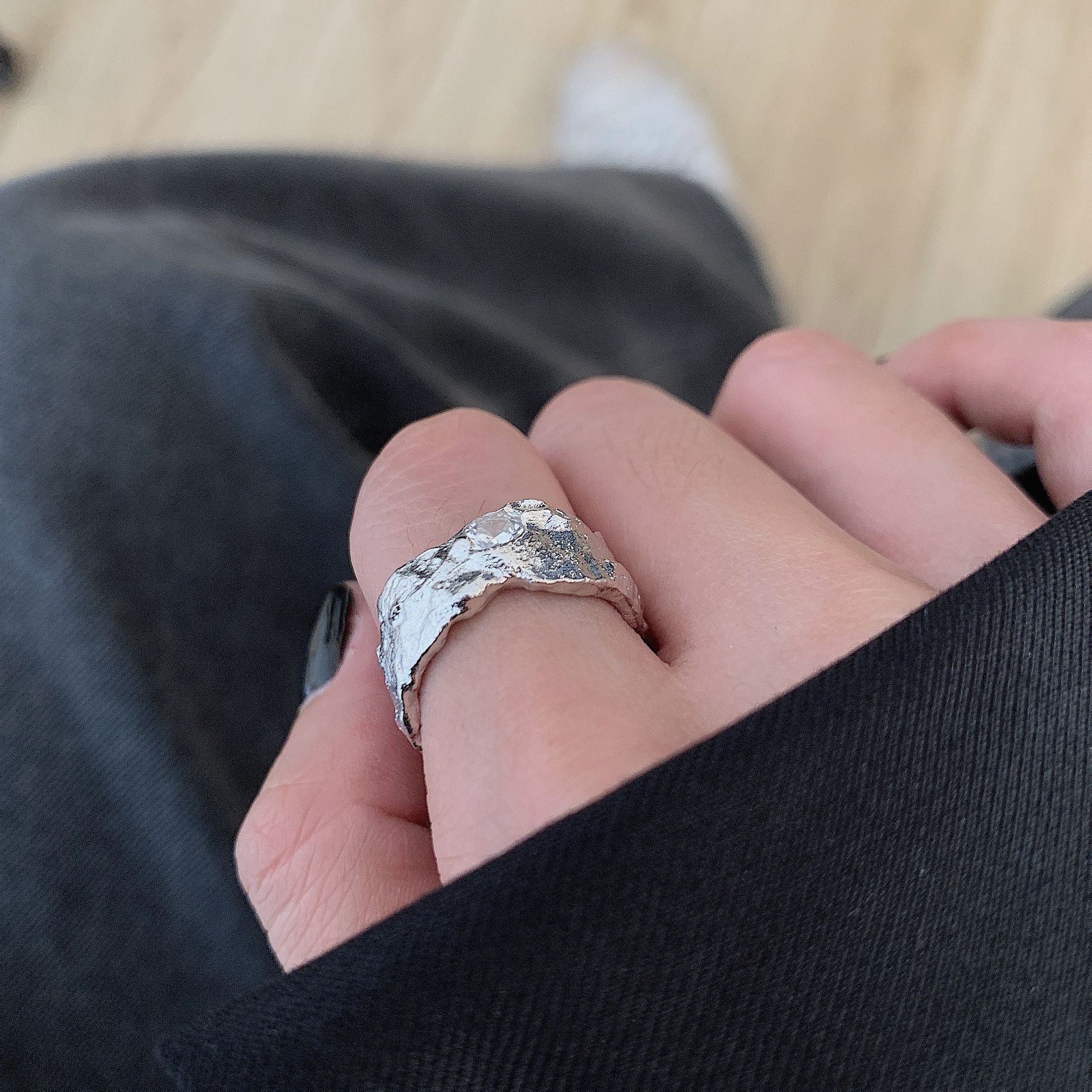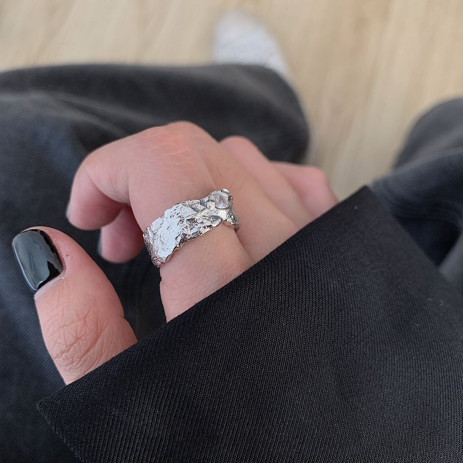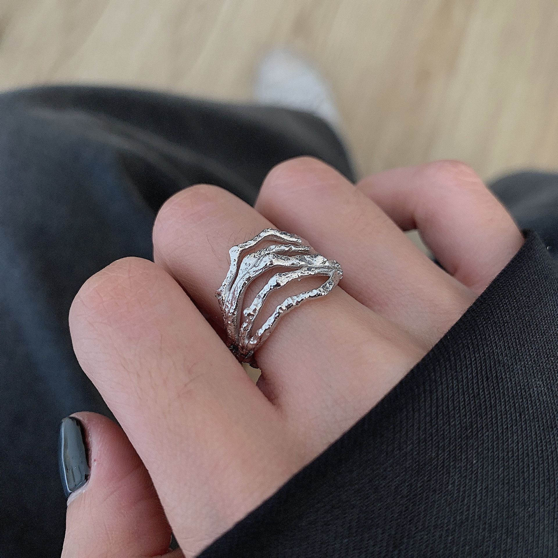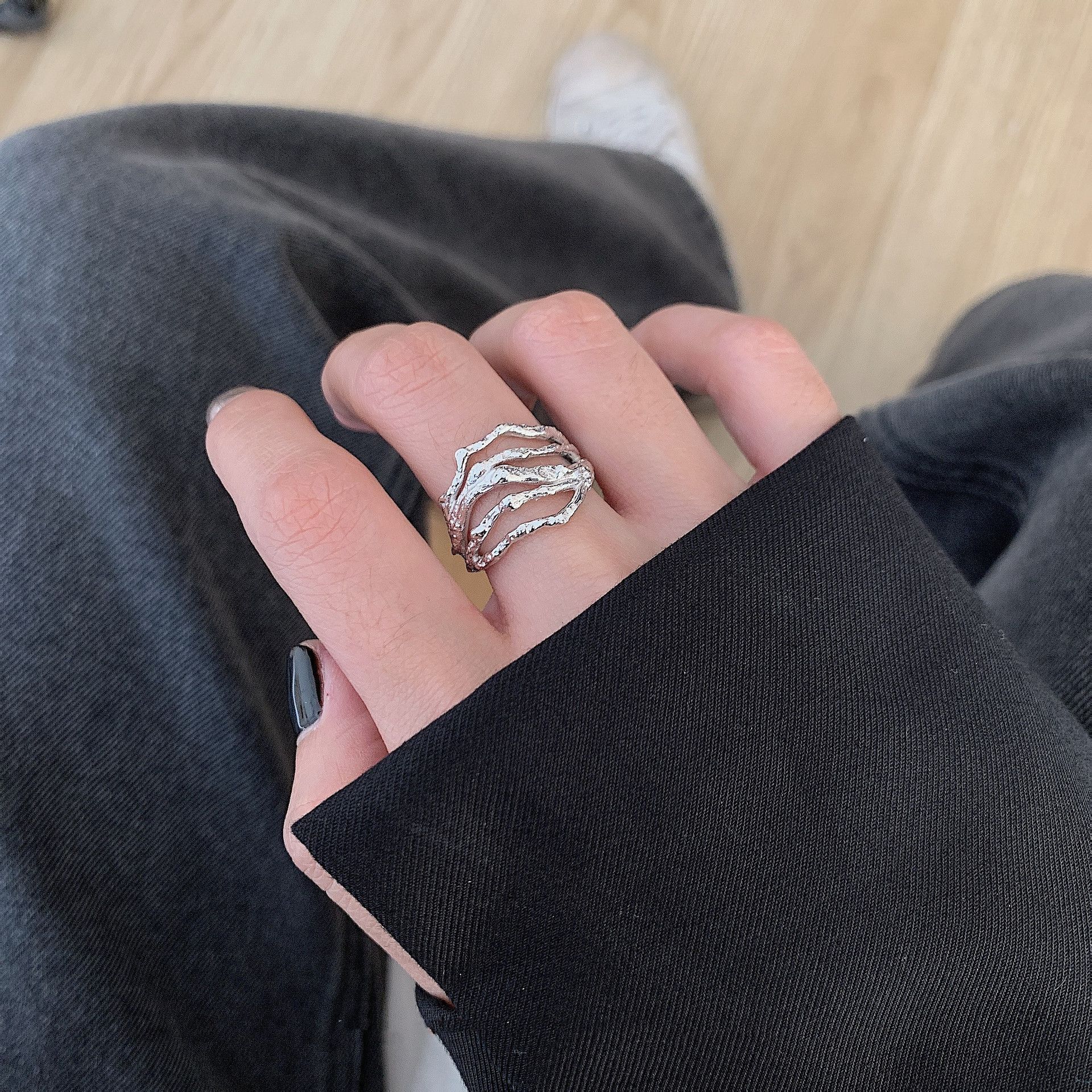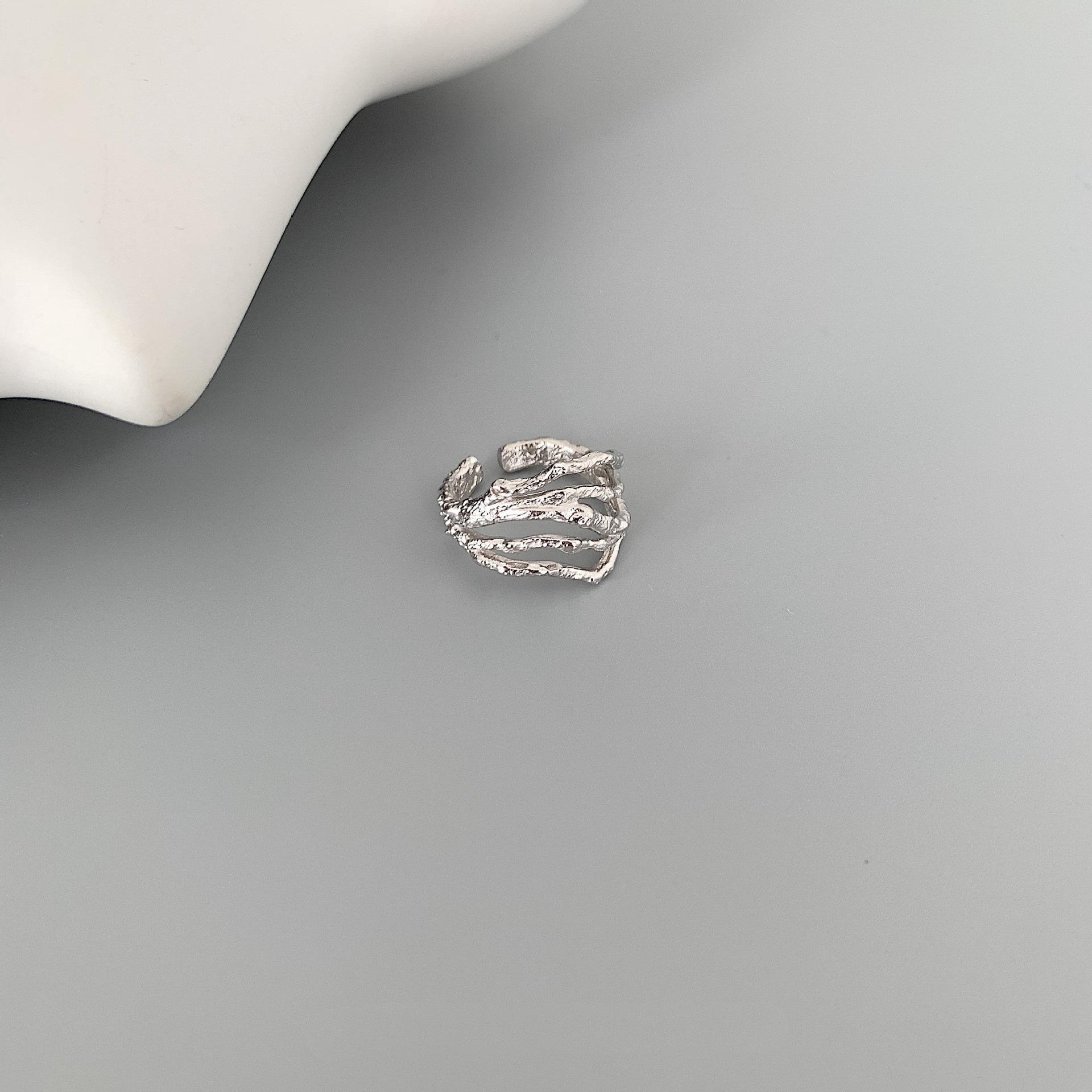Anillo Geométrico Irregular de Plata S925 Estilo Coreano para Mujer Moda Retro Hip Hop Zircón Anillo Abierto Anillo de Dedo Creativo