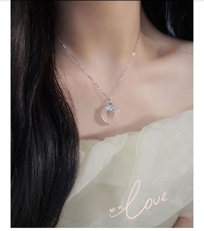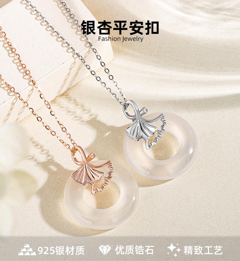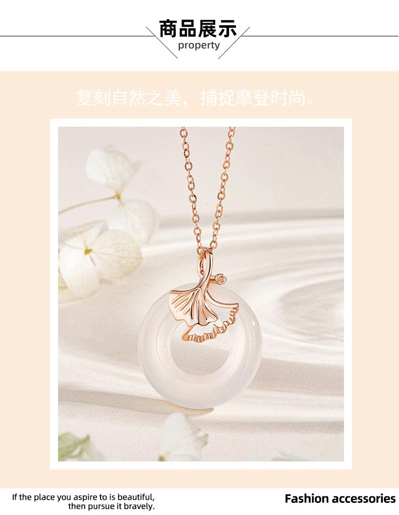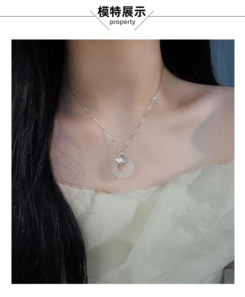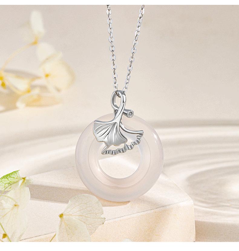 Collar con hebilla de seguridad de hoja de ginkgo puro S925 para niña, colgante de calcedonia de nicho de lujo ligero, regalo de cumpleaños 2024