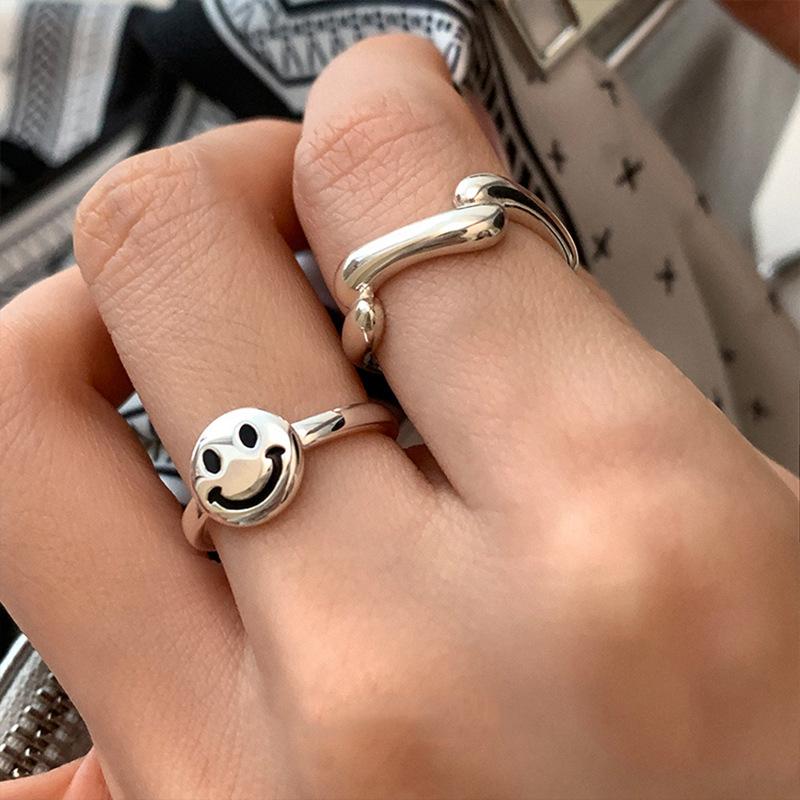 Anillo de cara sonriente con diseño de nicho simple de estilo coreano, anillo de dedo índice abierto de alta calidad, elegante y de moda minimalista para mujer.