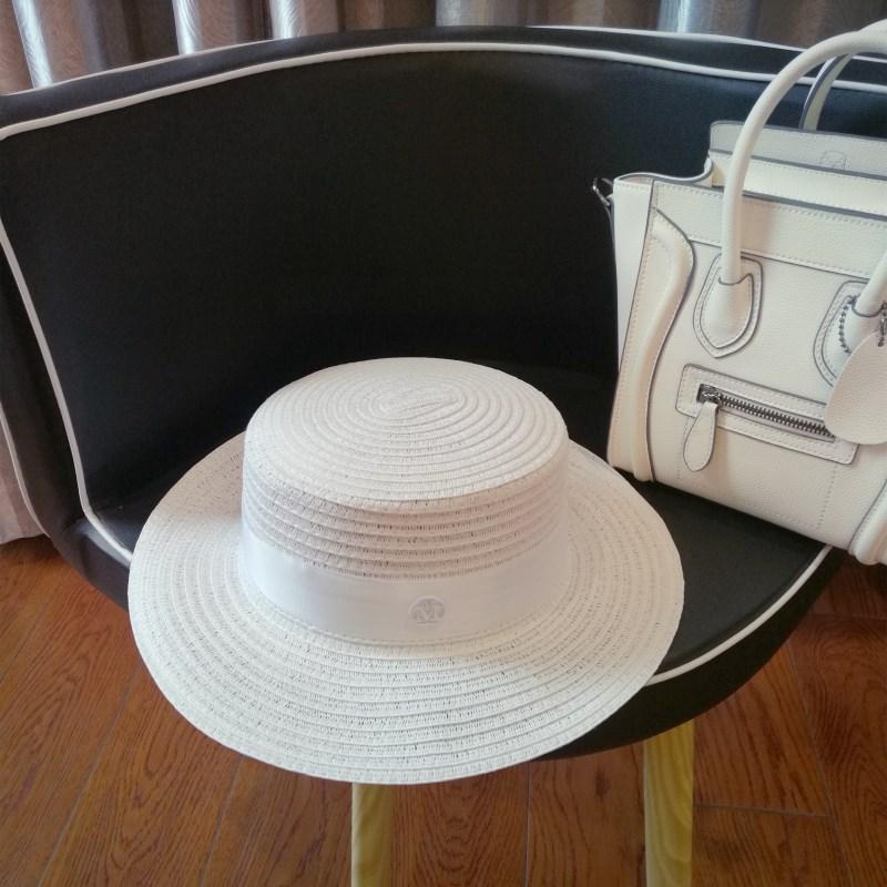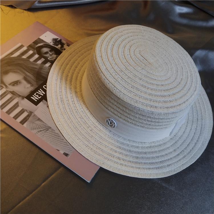 Sombrero de Mujer Verano Viaje Vacaciones Marítimas Sombrero Protector Solar Sombrero de Copa Plana con Letra M Sombrero de Paja de Moda Sombrero para el Sol de Exterior