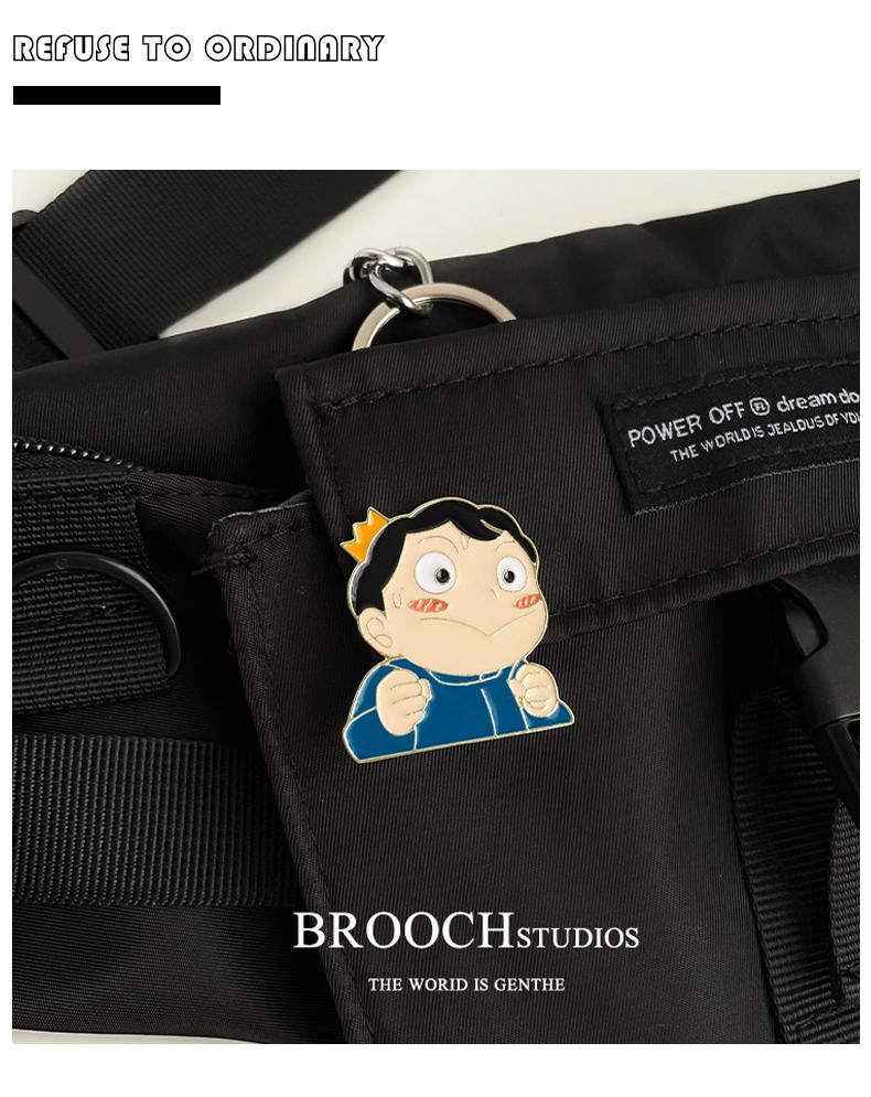 Broche Poji de rango de rey periférico de anime, linda insignia de metal de dibujos animados japoneses, mochila de estudiante, bufanda, accesorios