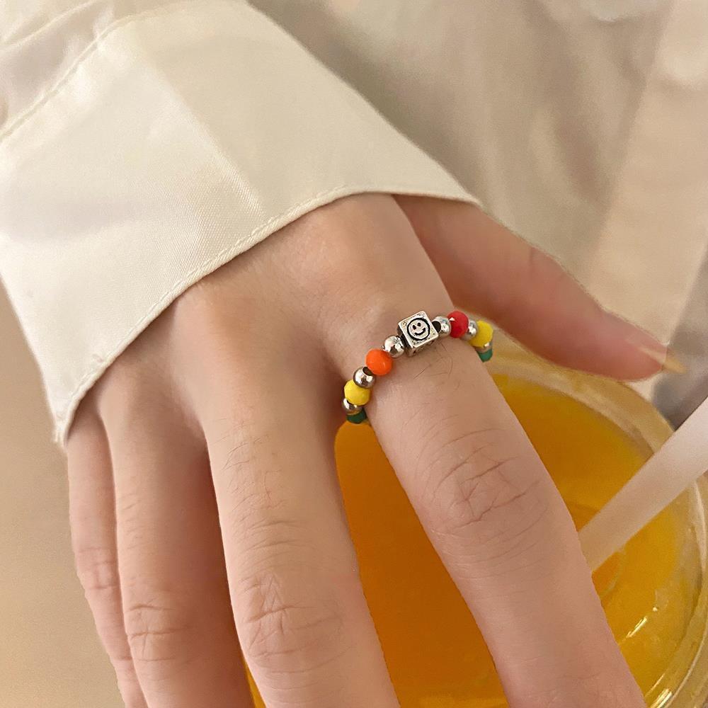 Anillo Elástico Cuadrado Arcoíris Femenino Estilo K Moda Anillo de Diseño Elegante Ins Anillo para Dedo Índice de Estudiante Tendencia