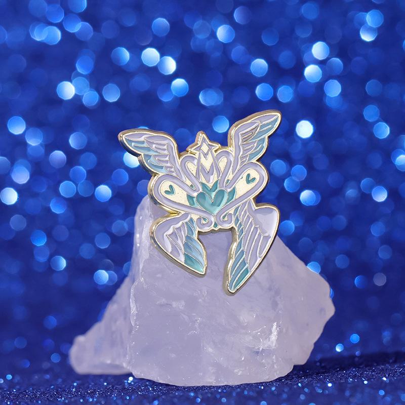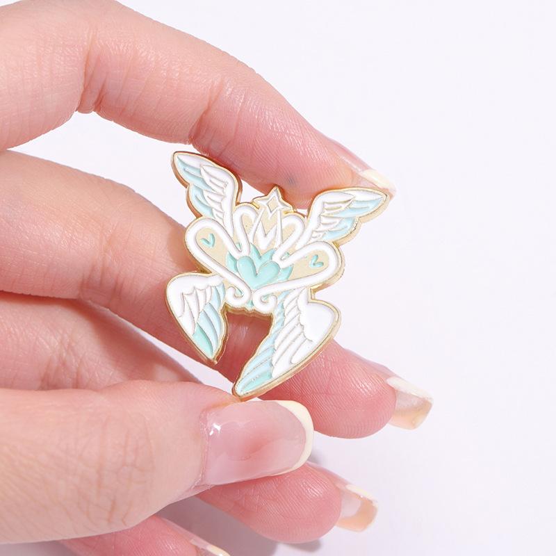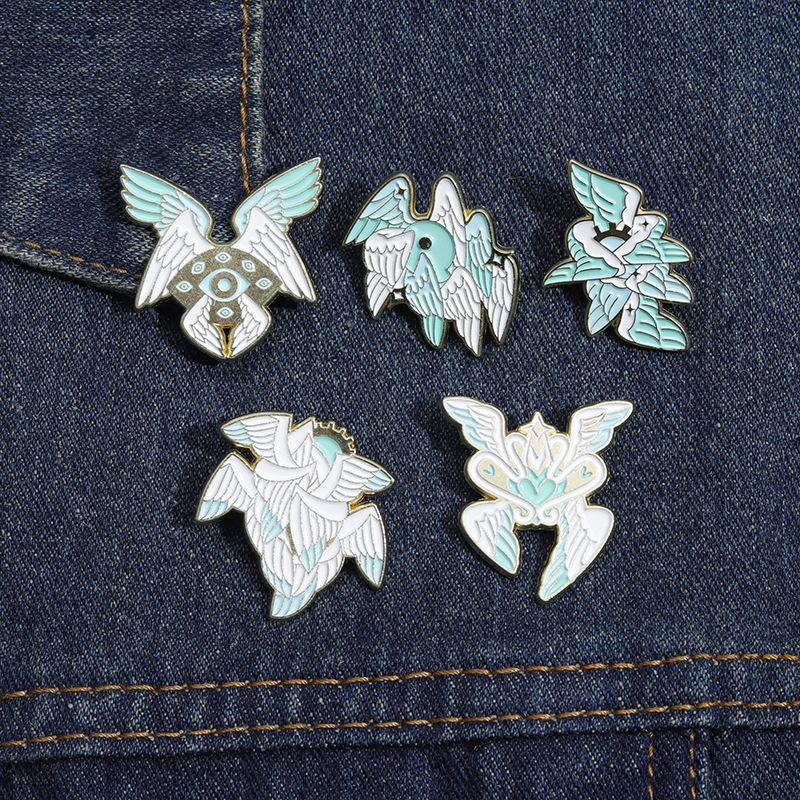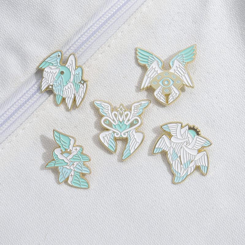 Insignia creativa nueva de dibujos animados ojo Pluma serie europea y americana alas blancas broche de aleación personalidad accesorios transfronterizos