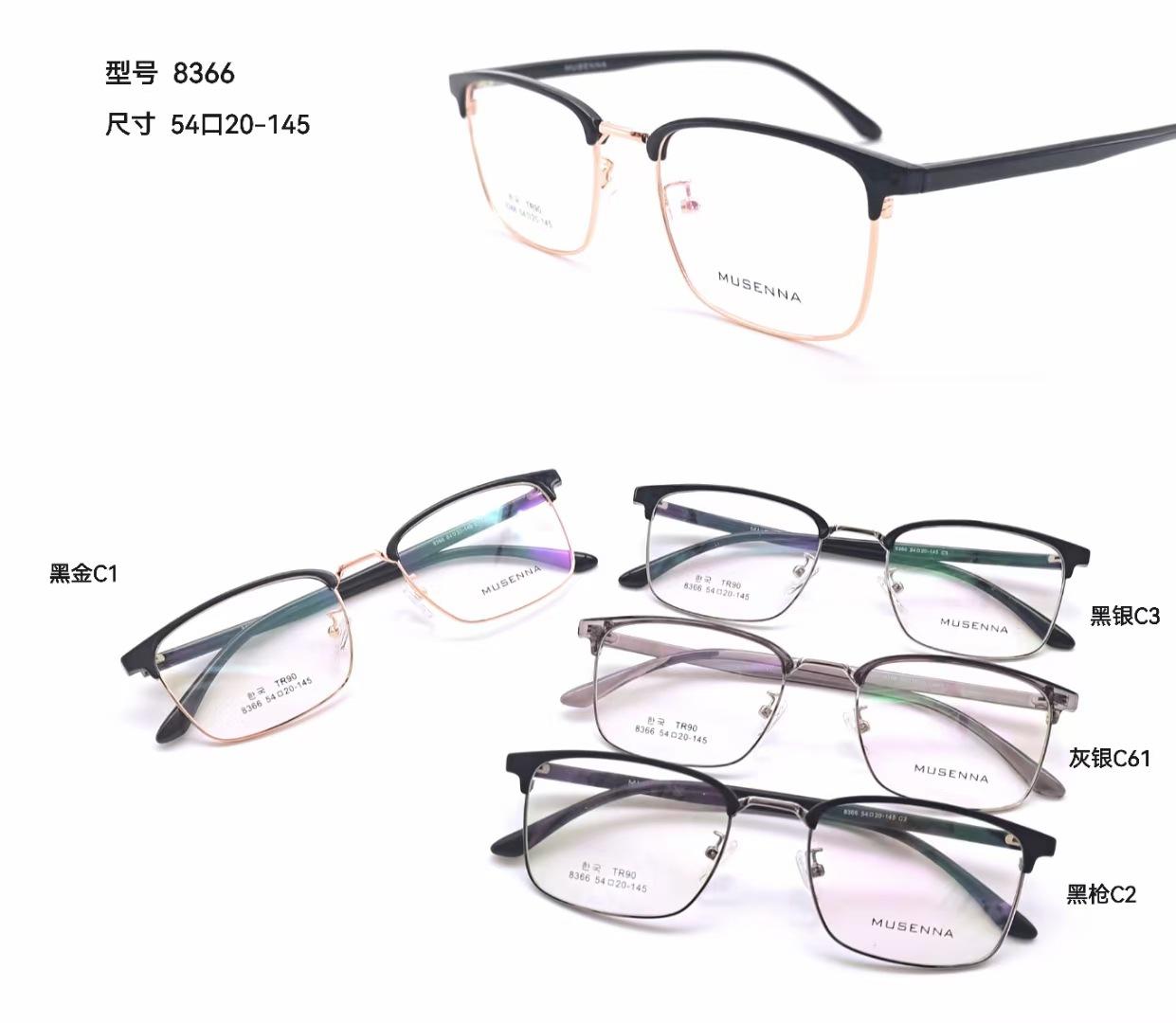Montura de gafas informal de estilo coreano de moda TR90 con diseño de cejas anchas, estilo retro clásico 8366
