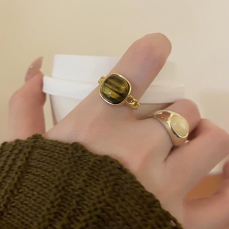 Anillo abierto de piedra natural para niñas, temperamento retro, diseño de nicho, anillo para el dedo índice, celebridad de internet, moda, personalidad, anillo para novias