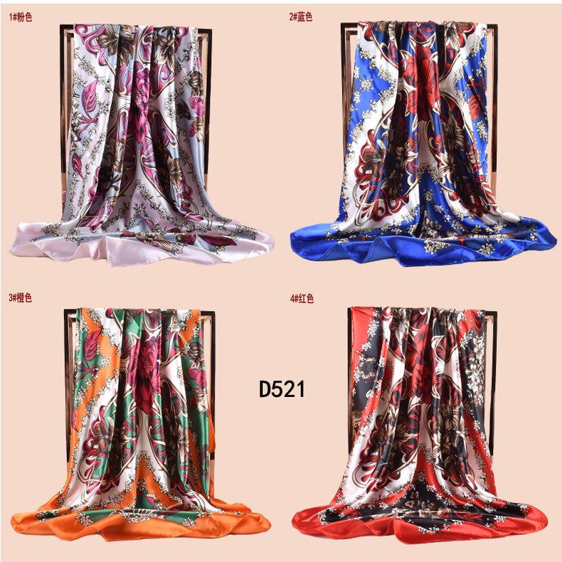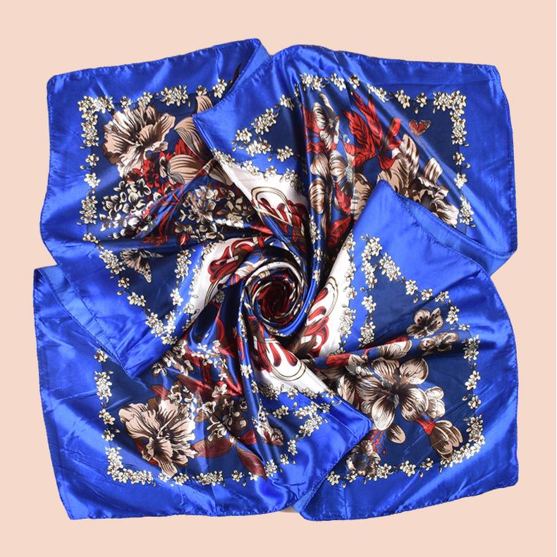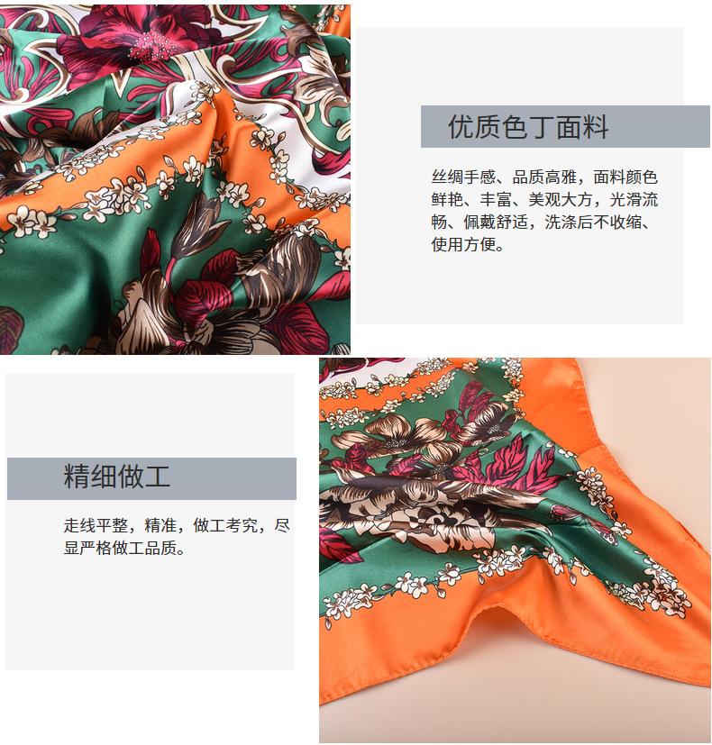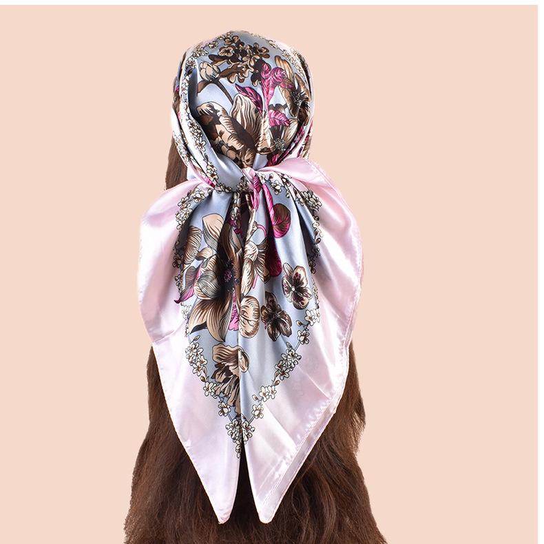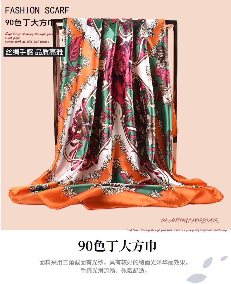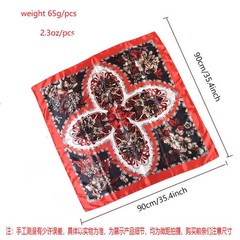Bufanda grande de seda con estampado de plantas, estilo primavera, para el comercio exterior, con 90 bolsitas, cuadrada, para la cabeza