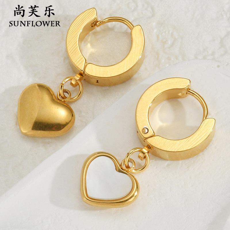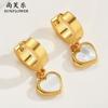Pendientes de concha de acero de titanio con forma de corazón personalizados transfronterizos europeos y americanos Pendientes de mujer de alto sentido Accesorios Yiwu al por mayor