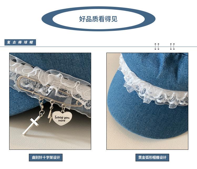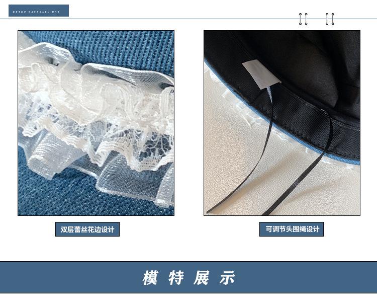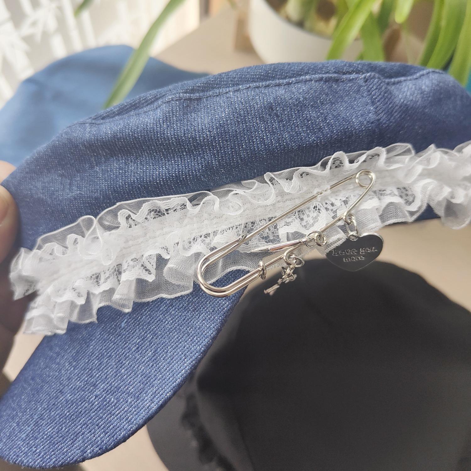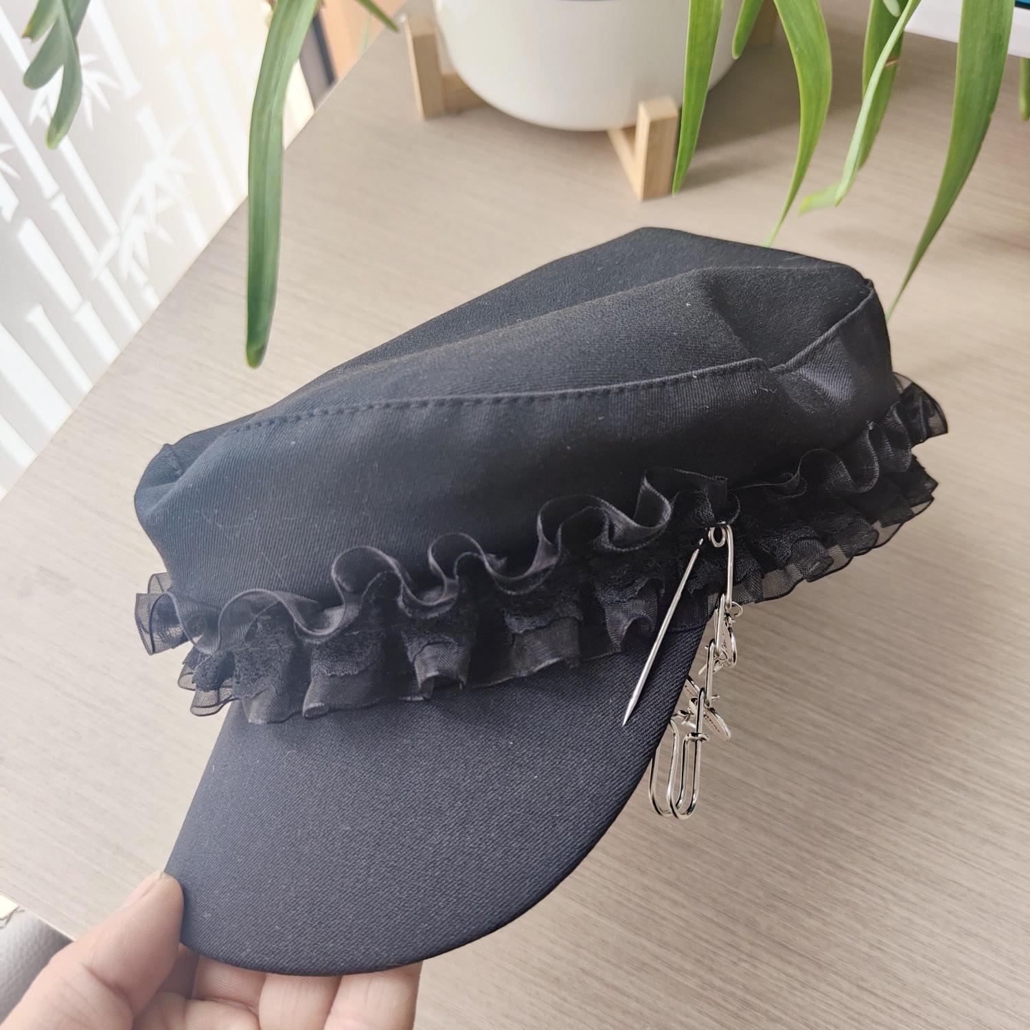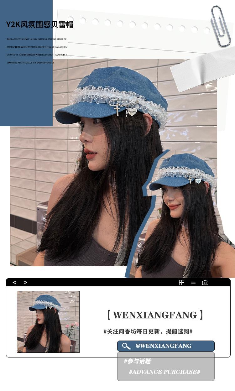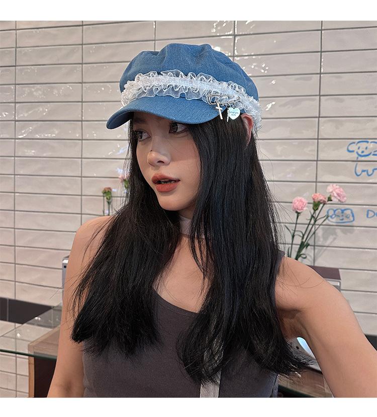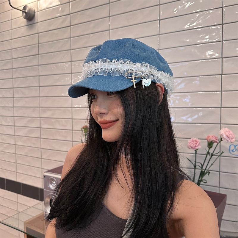 Ins Pin de Encaje de Celebridad Cibernética Sombrero Militar de Mezclilla Dulce de Nicho Cara Dulce Pequeño Sombrero Octogonal de Calle Sombrero de Pintor para Mujeres