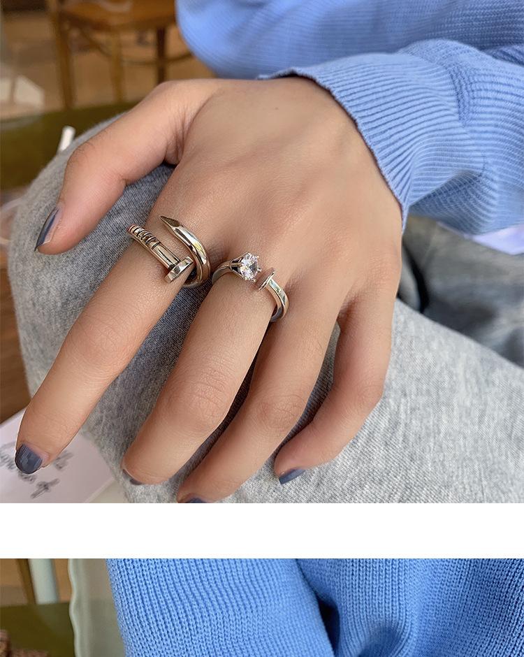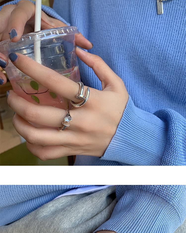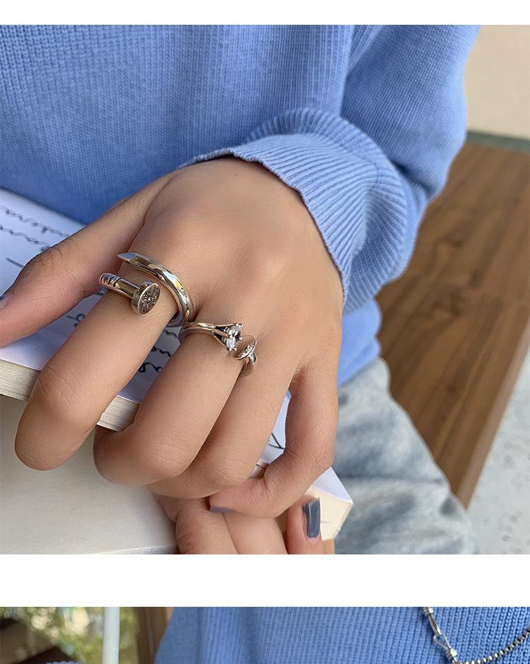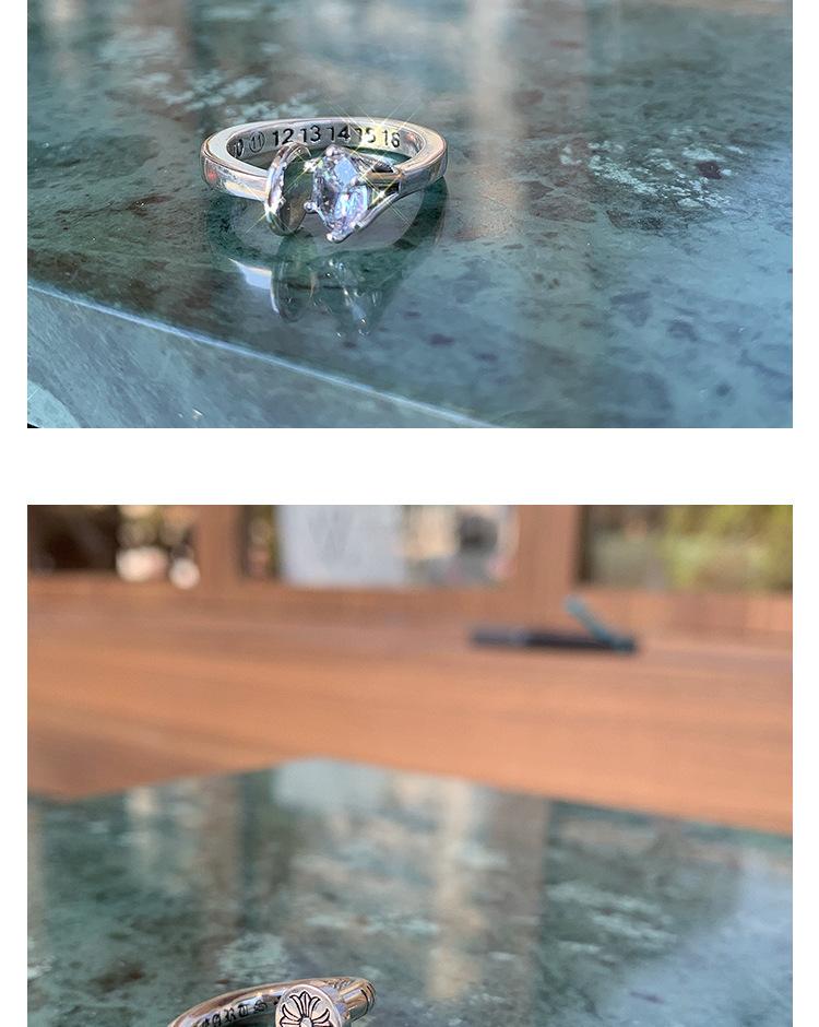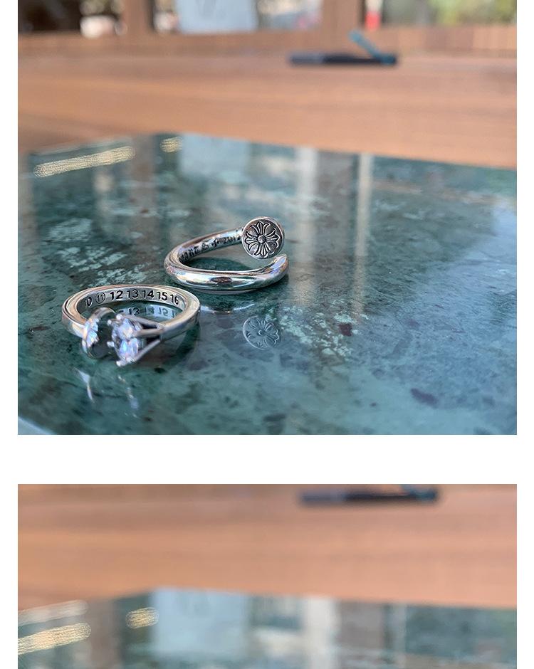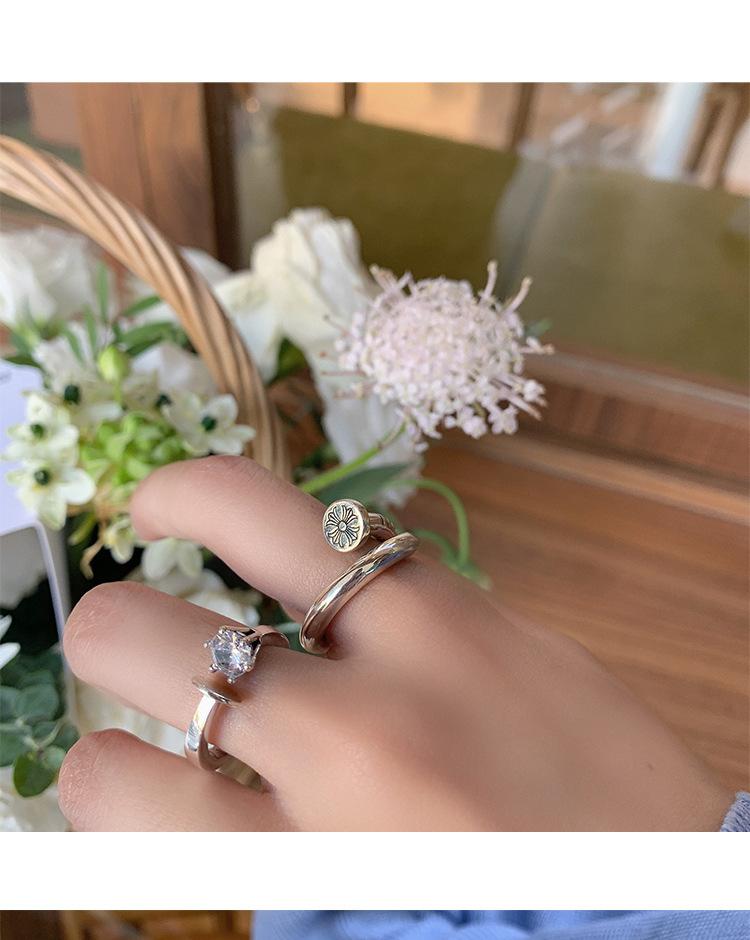Anillo Coreano Micro-Incrustado Geométrico Digital para Mujer Plateado 925 Ins Elegante Retro Margarita Geométrico Abierto Anillo de Dedo Índice Tendencia