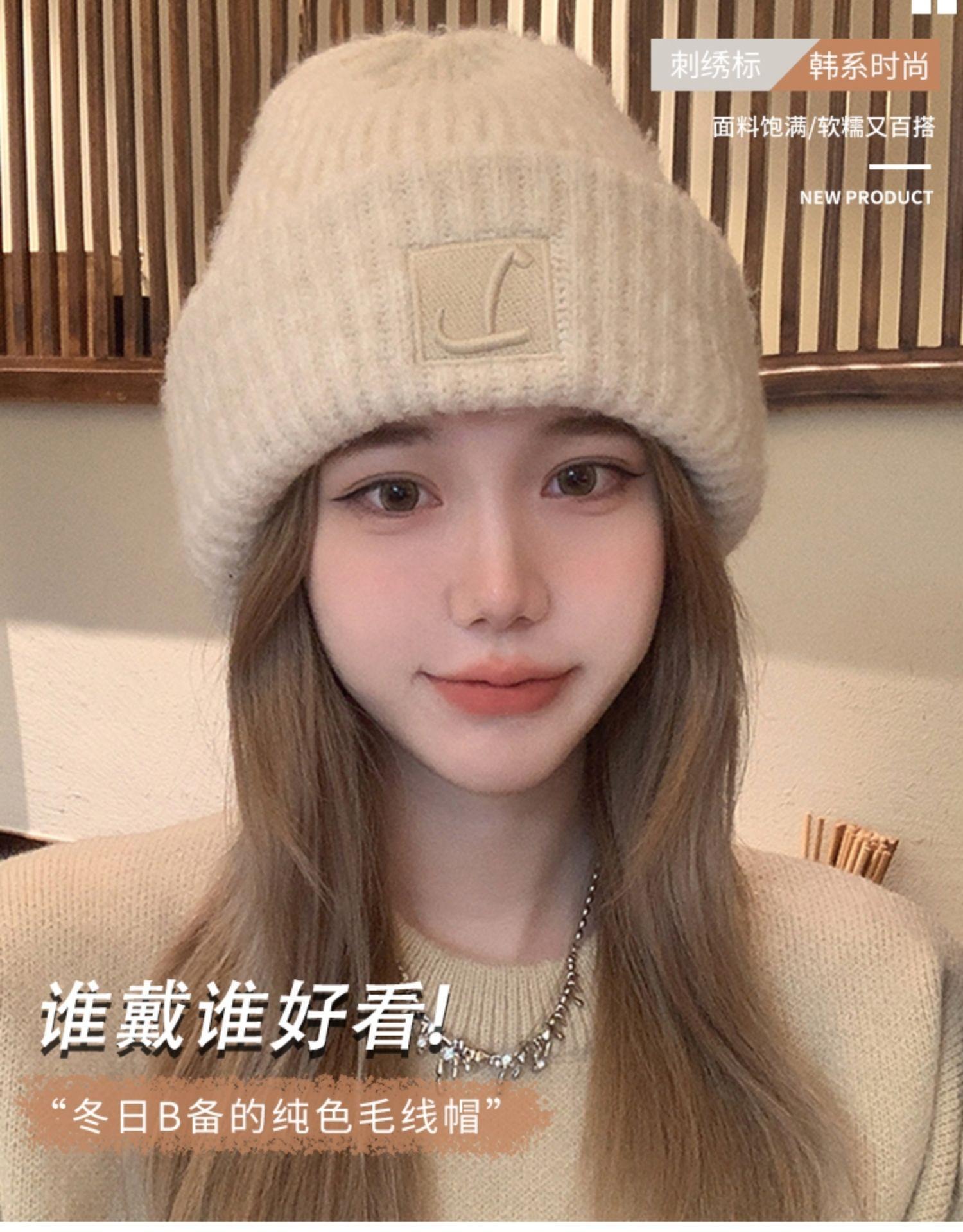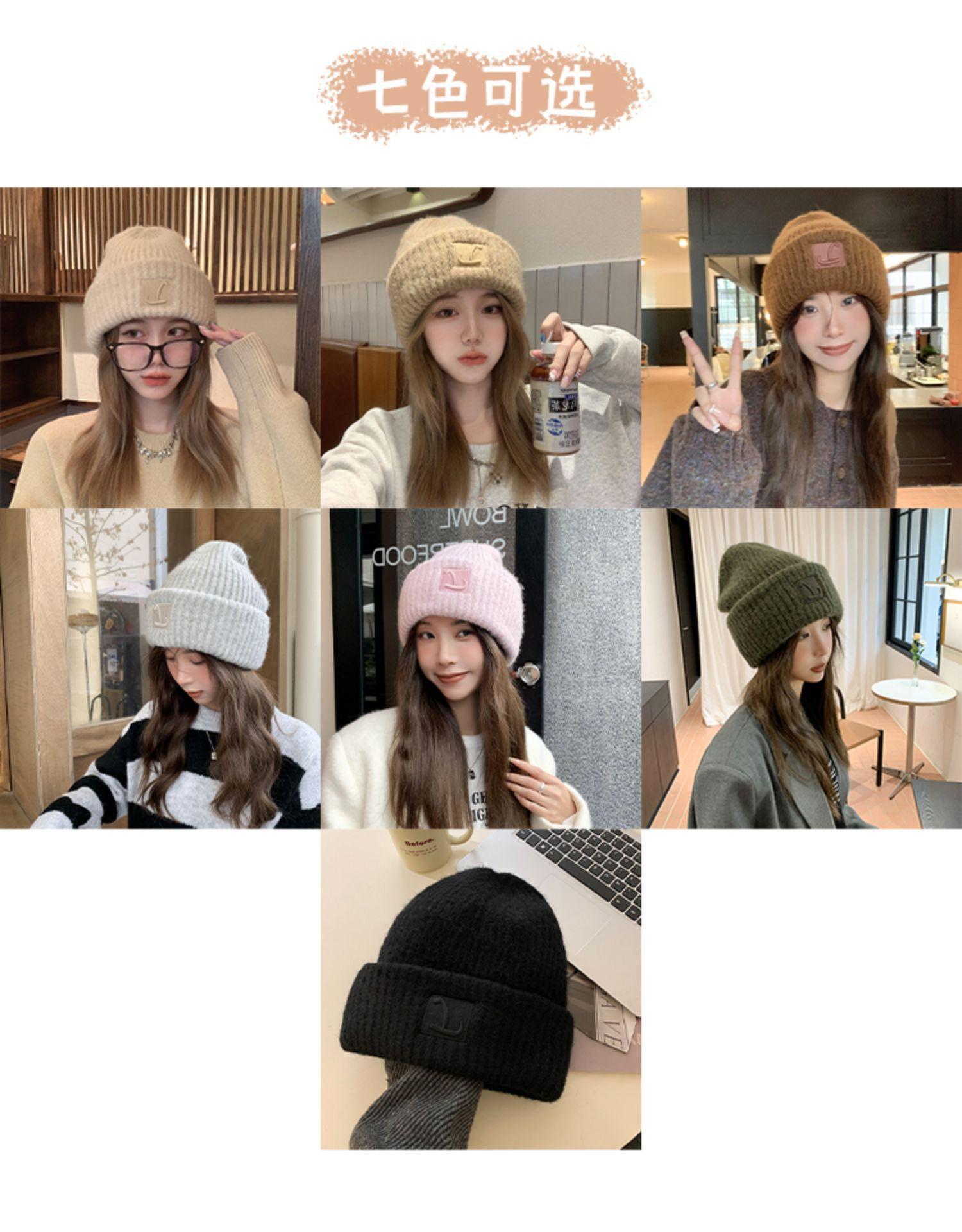 Gorros de Otoño e Invierno para Mujer con Circunferencia de Cabeza Grande, Gorros Cálidos de Punto con Letras, Gorros para el Frío con Forro Polar, Gorros de Lana de Invierno con Bordado para Protección contra el Frío