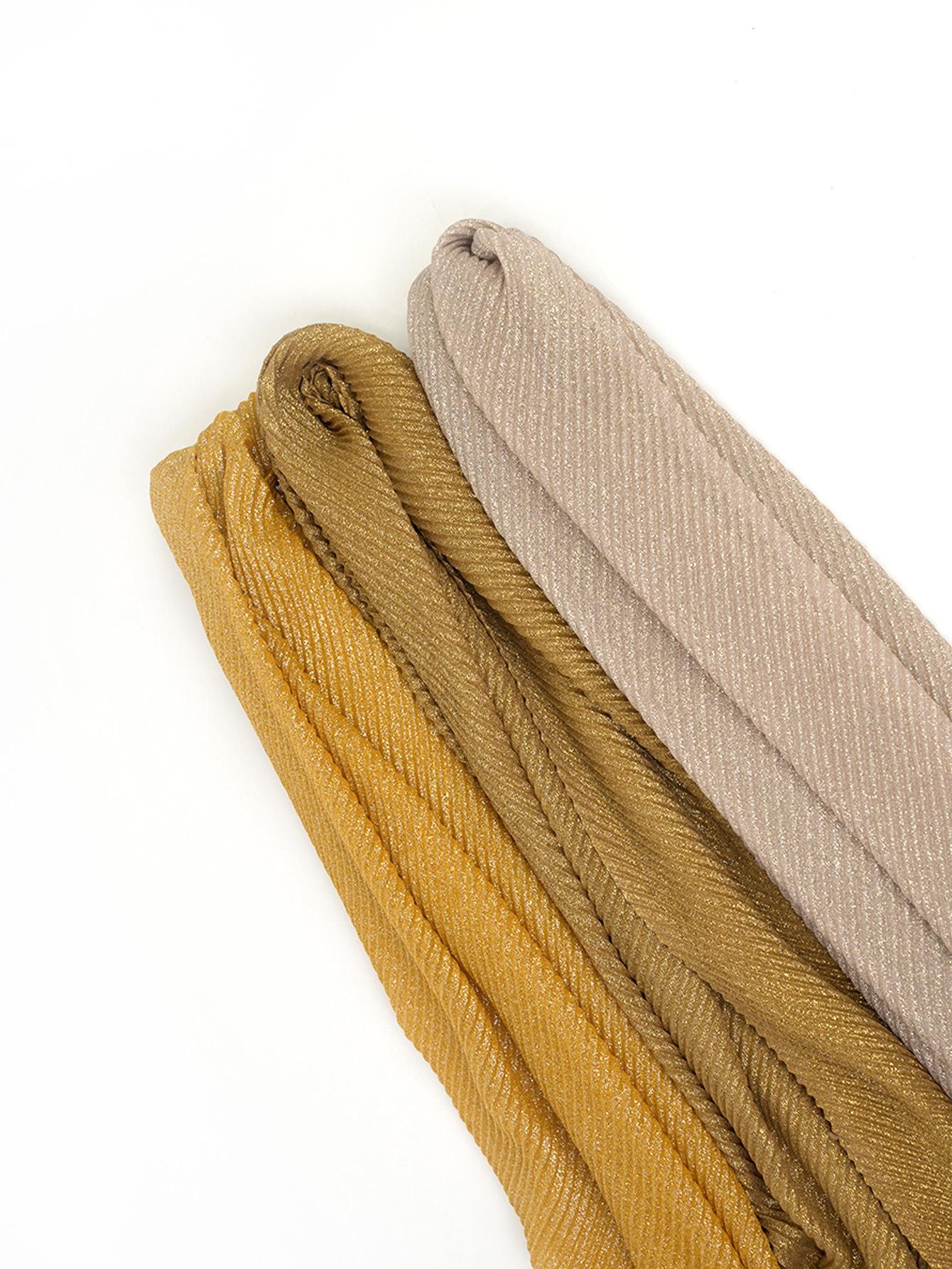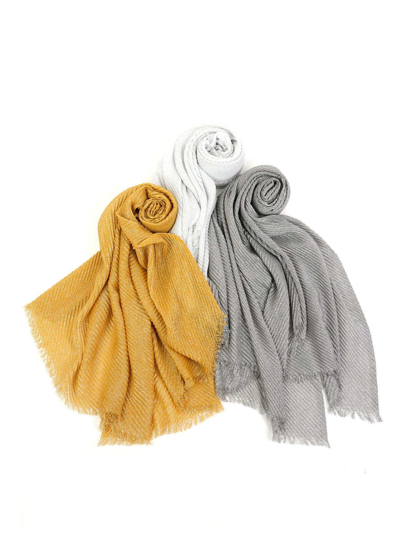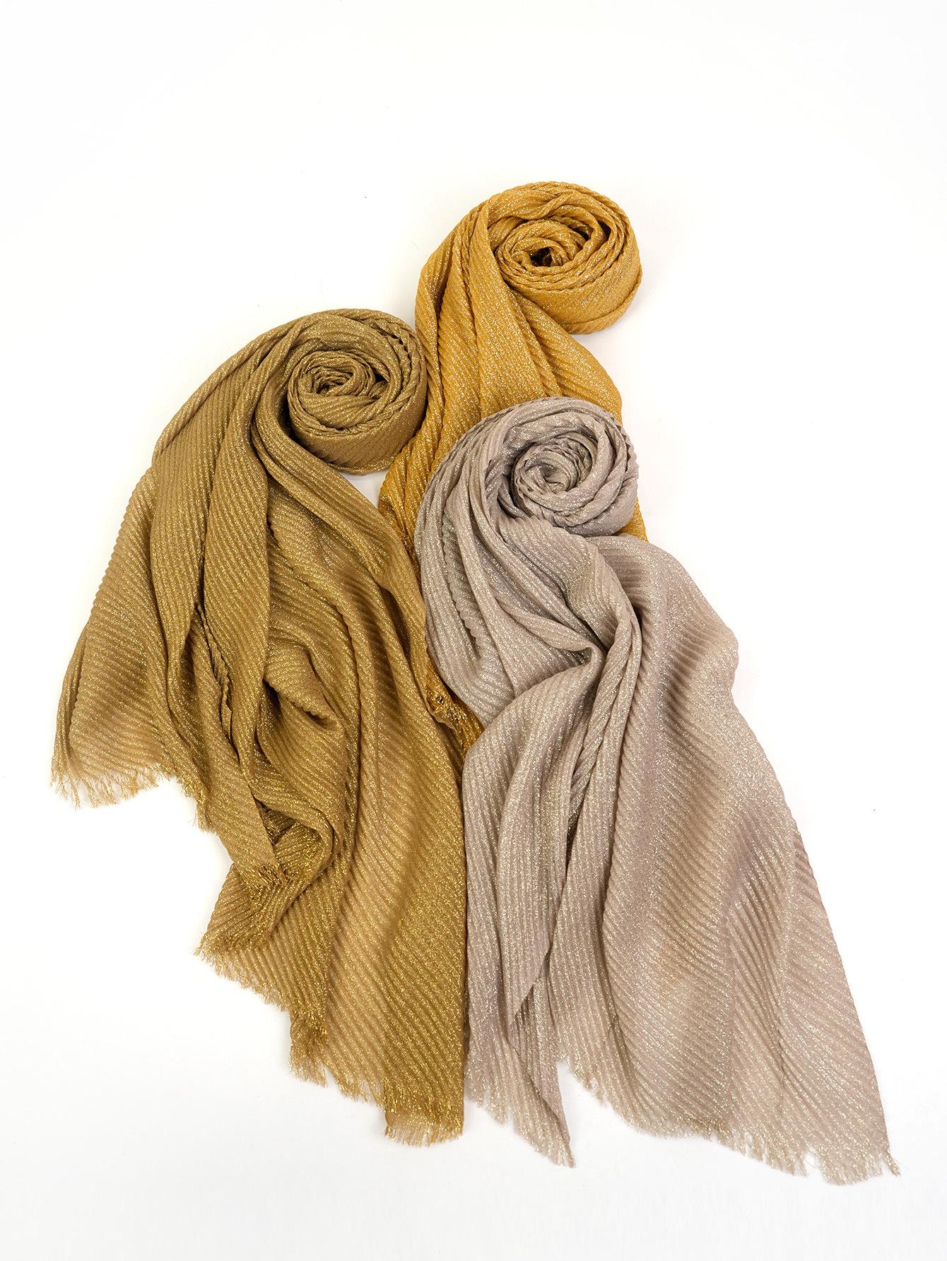 Entrega de una pieza Venta caliente europea y americana Nuevo 1 juego 3 piezas Chal plisado informal de seda dorada que combina con todo Bufanda de mujer