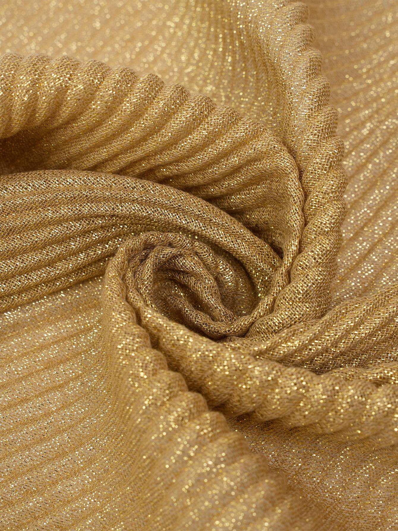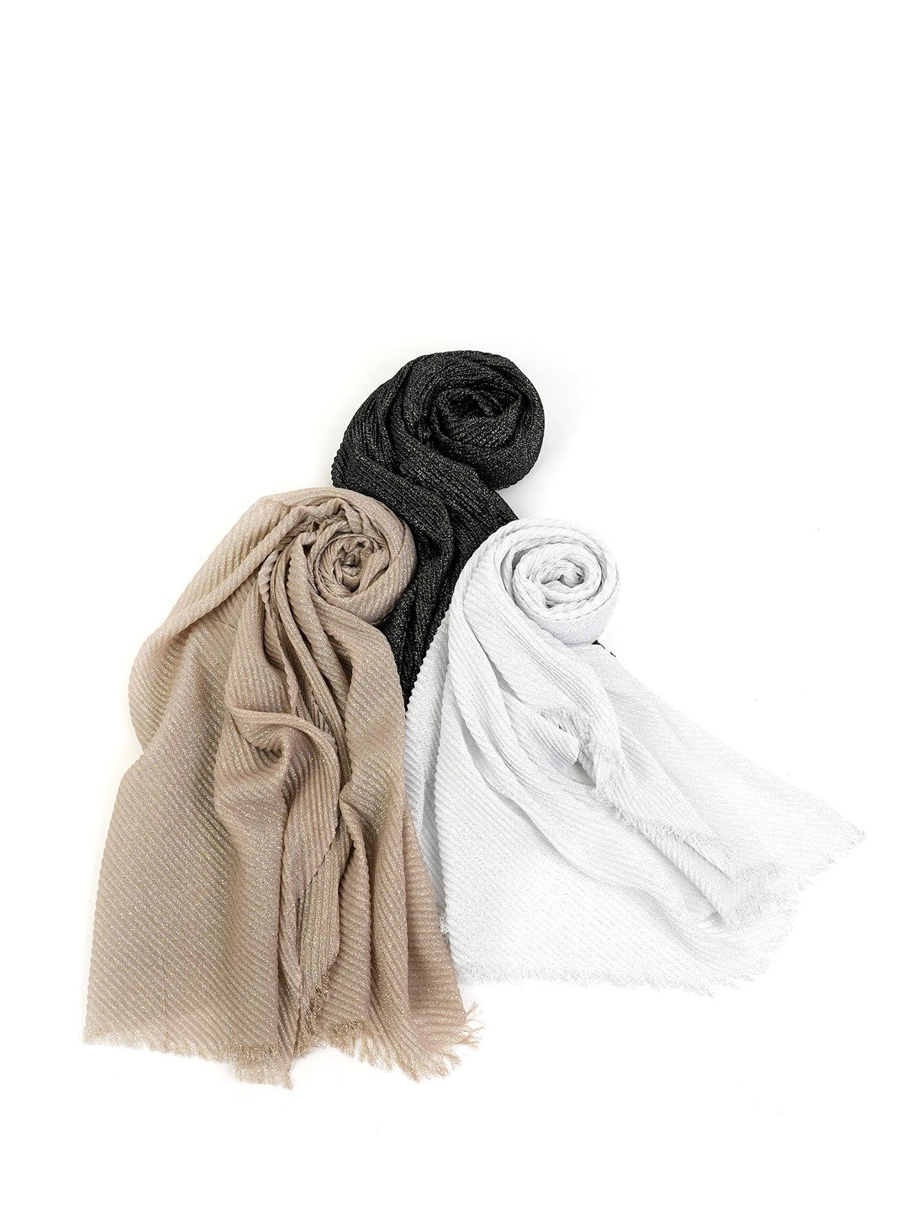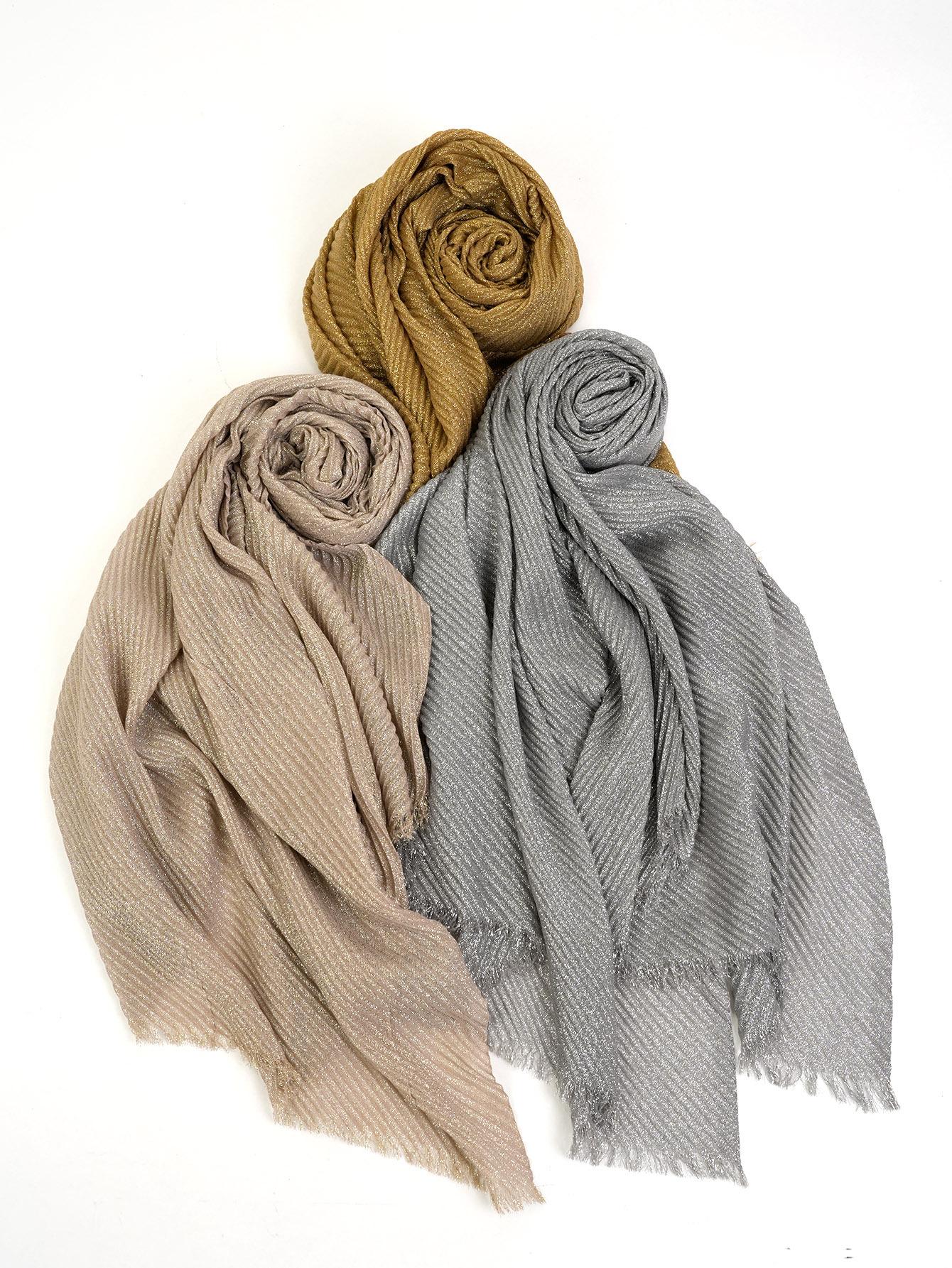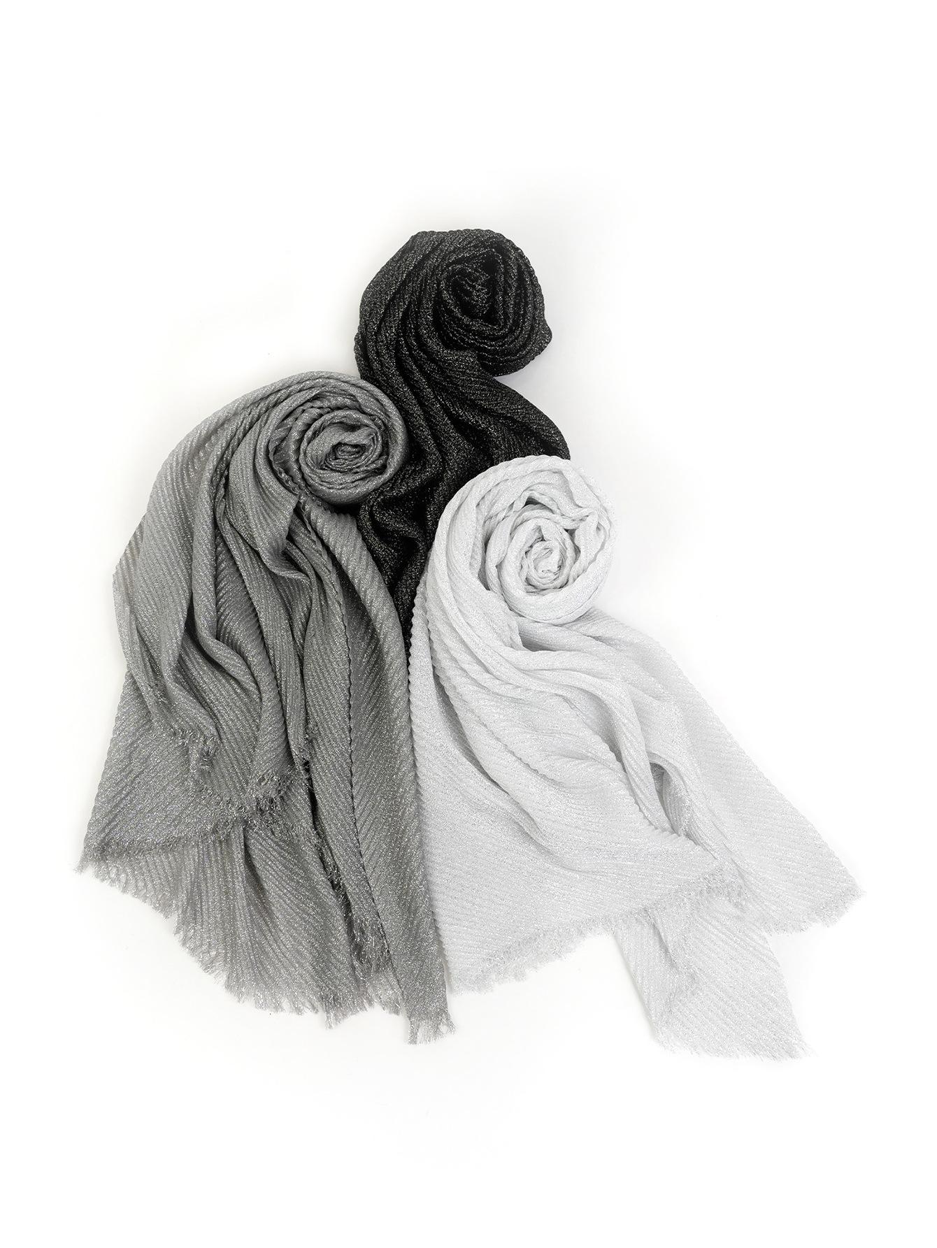 Entrega de una pieza Venta caliente europea y americana Nuevo 1 juego 3 piezas Chal plisado informal de seda dorada que combina con todo Bufanda de mujer