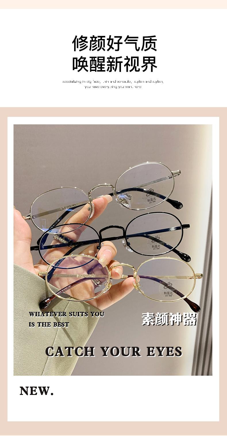 Lentes ovalados de montura pequeña para miopía, antirradiación de luz azul, estilo japonés, artísticos, para cara pequeña, luz plana, retro, cibernéticos, populares, montura para mujer