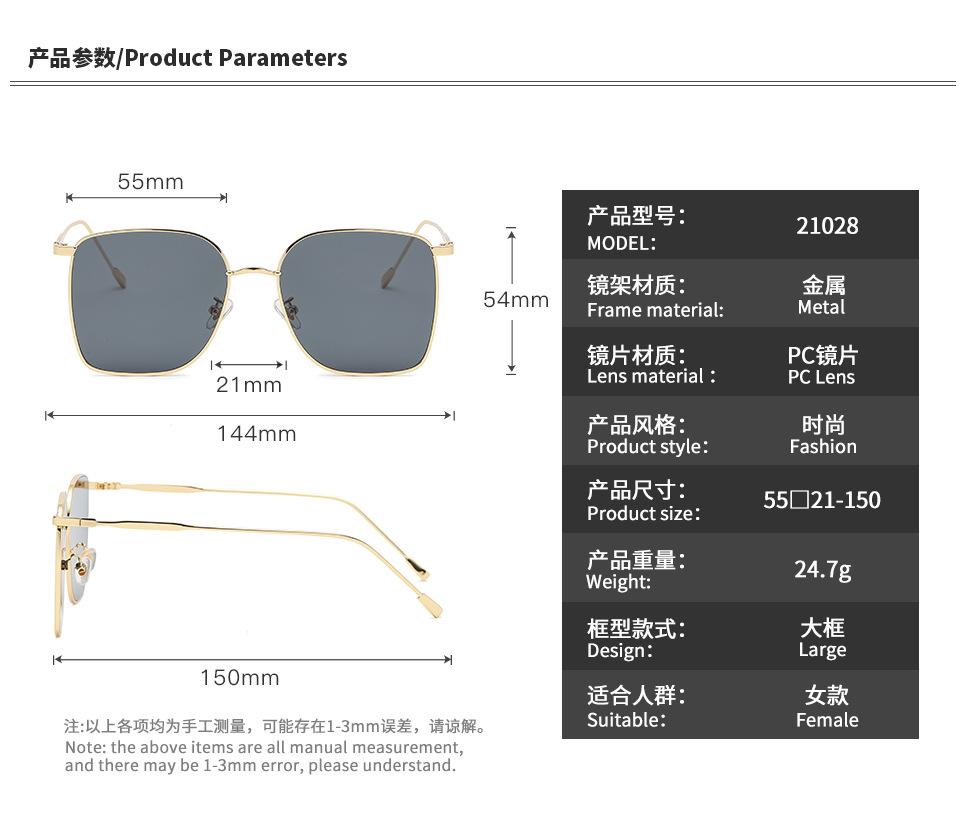 Nuevas Gafas de Sol Metálicas de Moda Gafas de Sol de Moda Coloridas para Mujer Anti-UV Marco Cuadrado Gafas de Sol para Sesión de Fotos en la Calle Venta al por Mayor