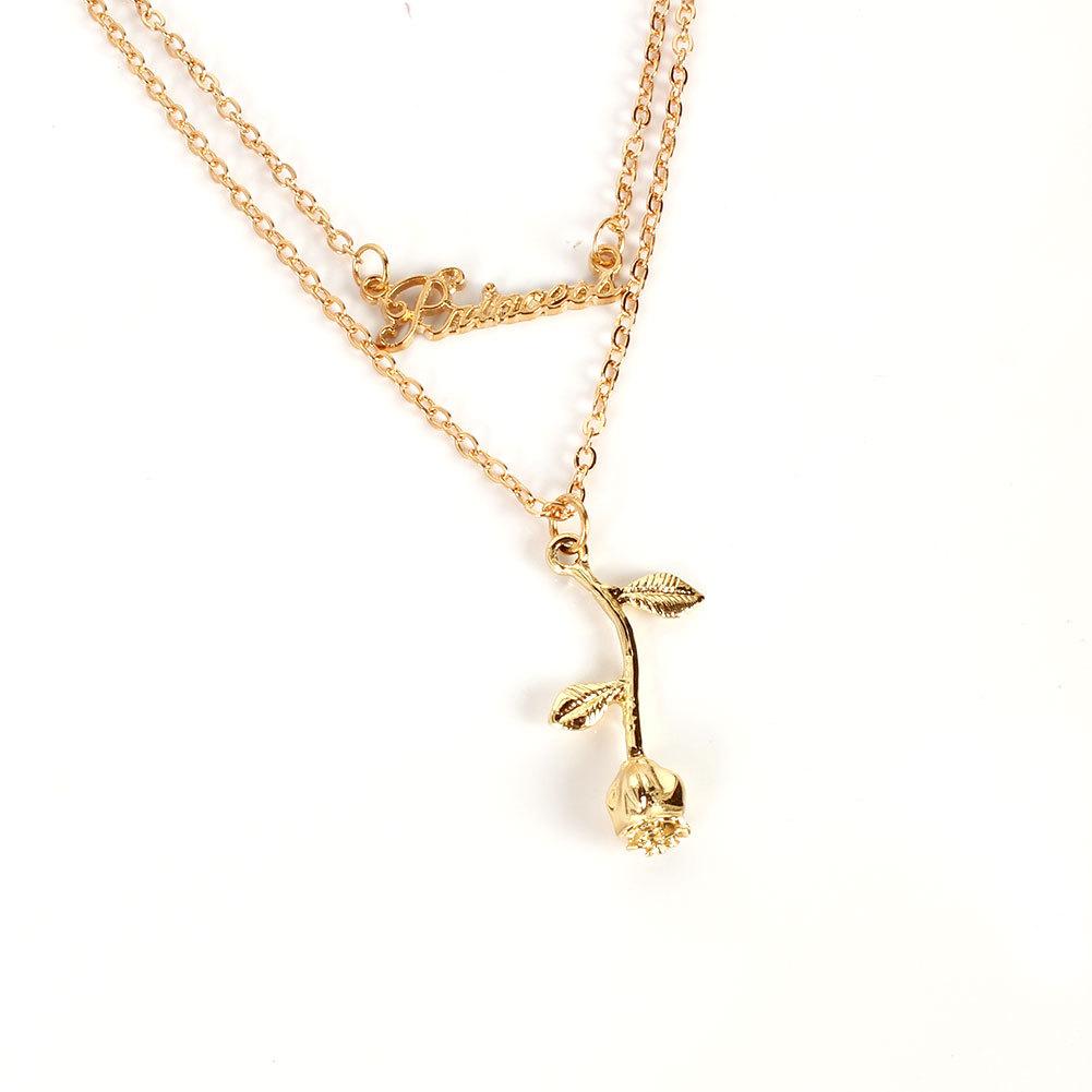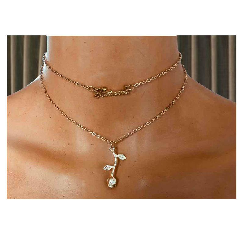 Collar sencillo de estilo europeo y americano transfronterizo con colgante de rosa de aleación de moda, collar de cadena de clavícula para mujer 14520