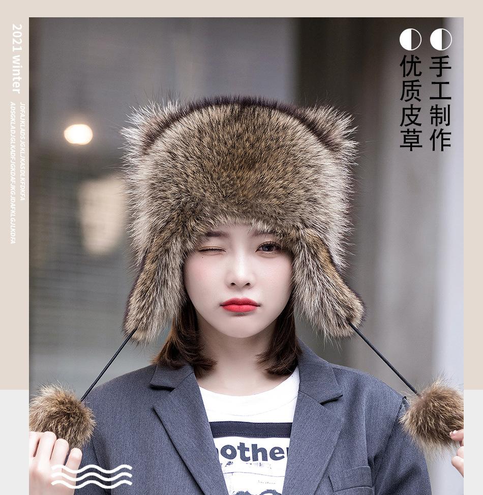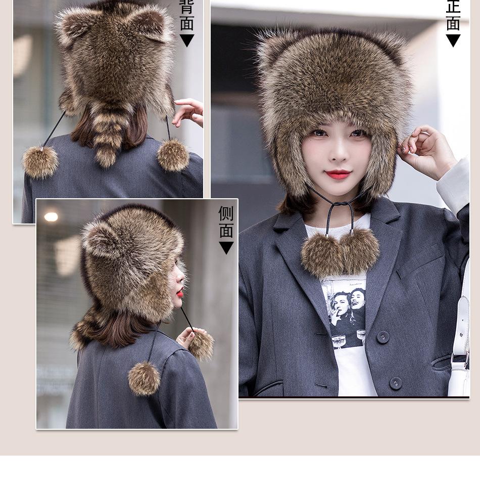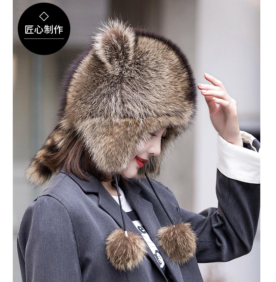 Sombrero de mapache de piel de mapache nueva Sombreros de piel entera para hombres y mujeres Adultos Niños Invierno Exterior Protección para las orejas Cálido