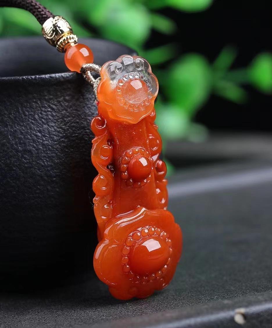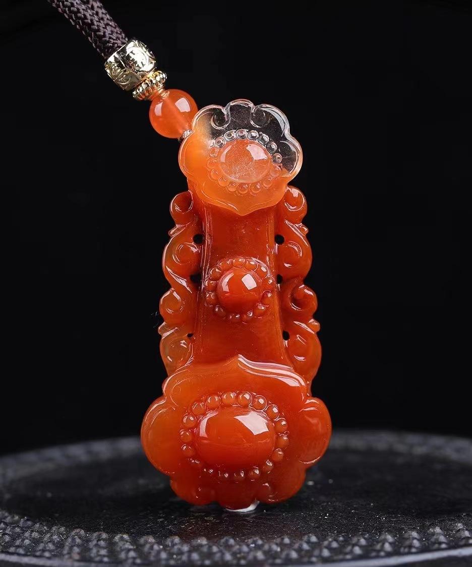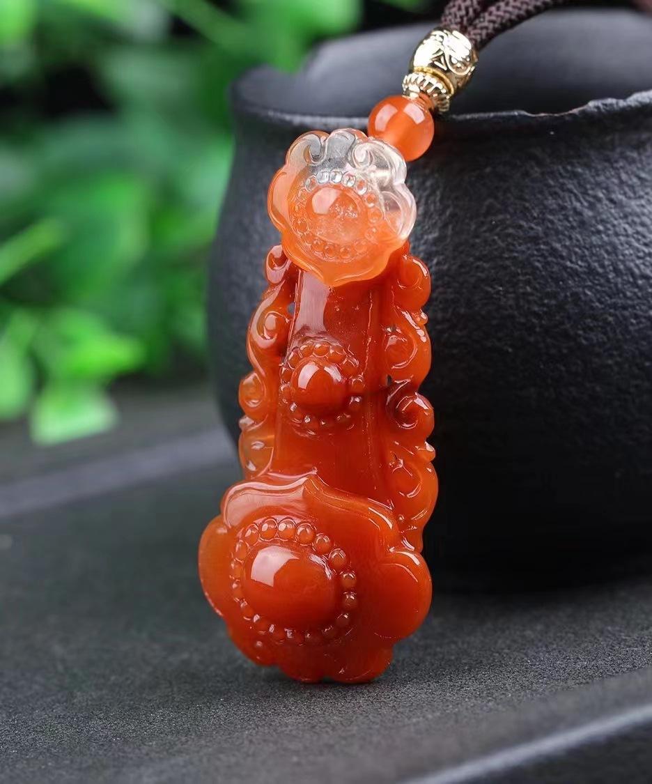 Natural crystal red rabbit fur ruyi (51*23 * 15mm) pendant