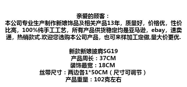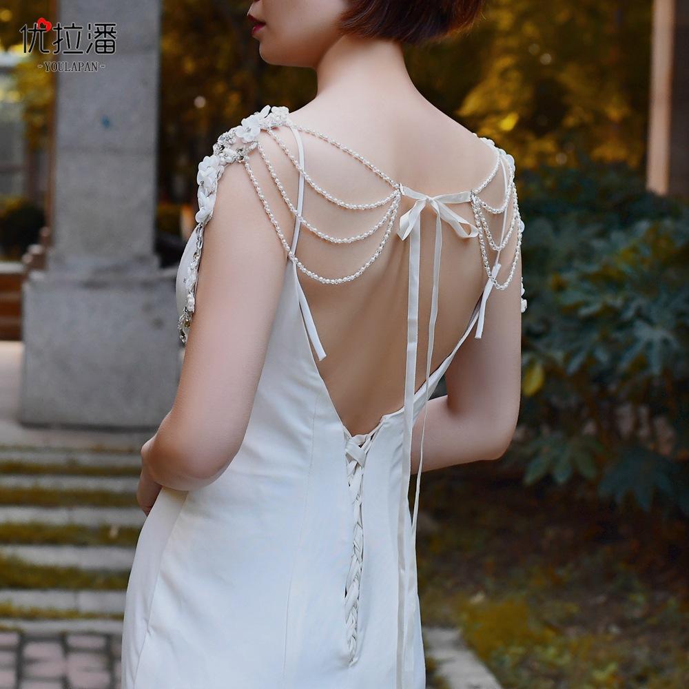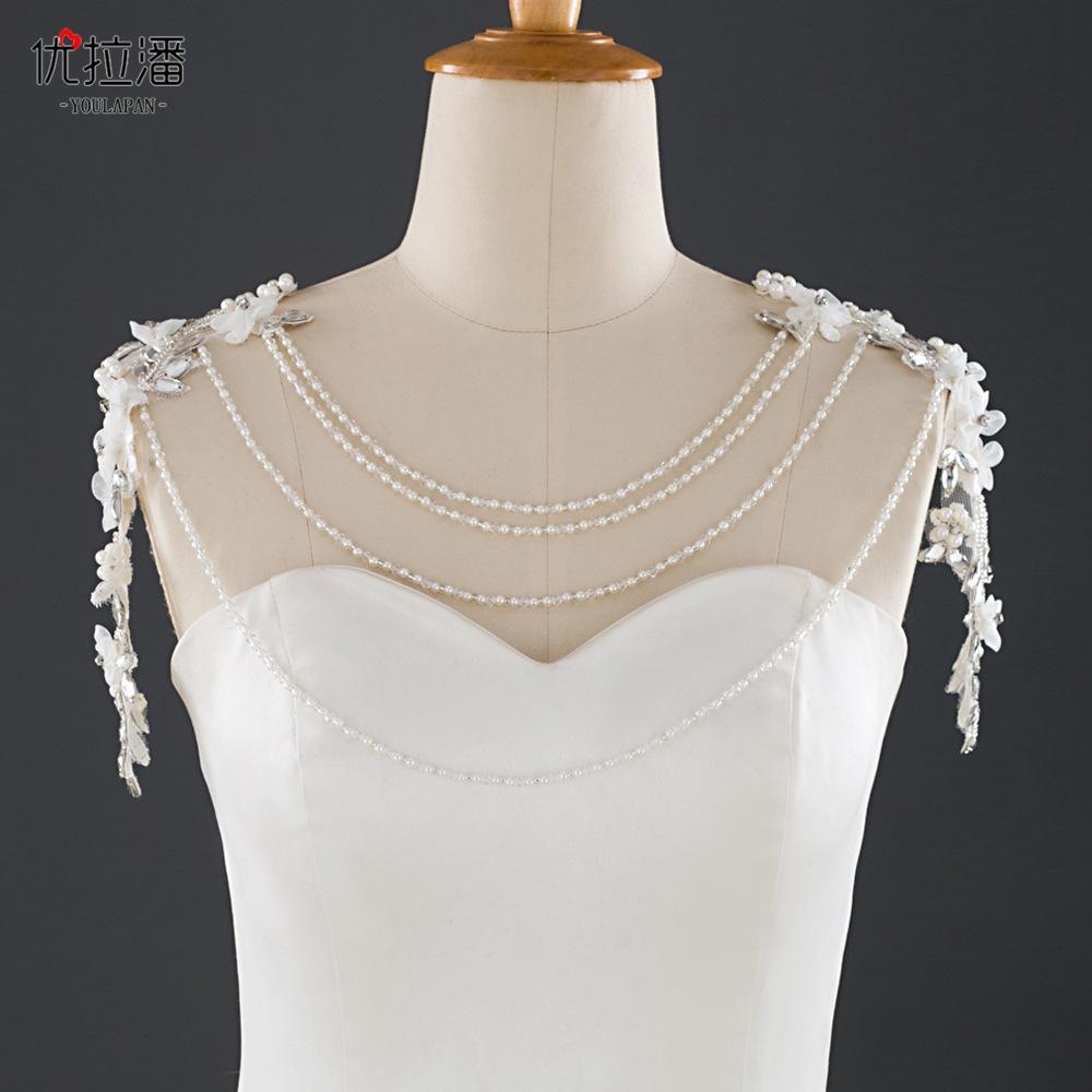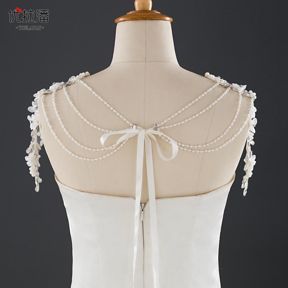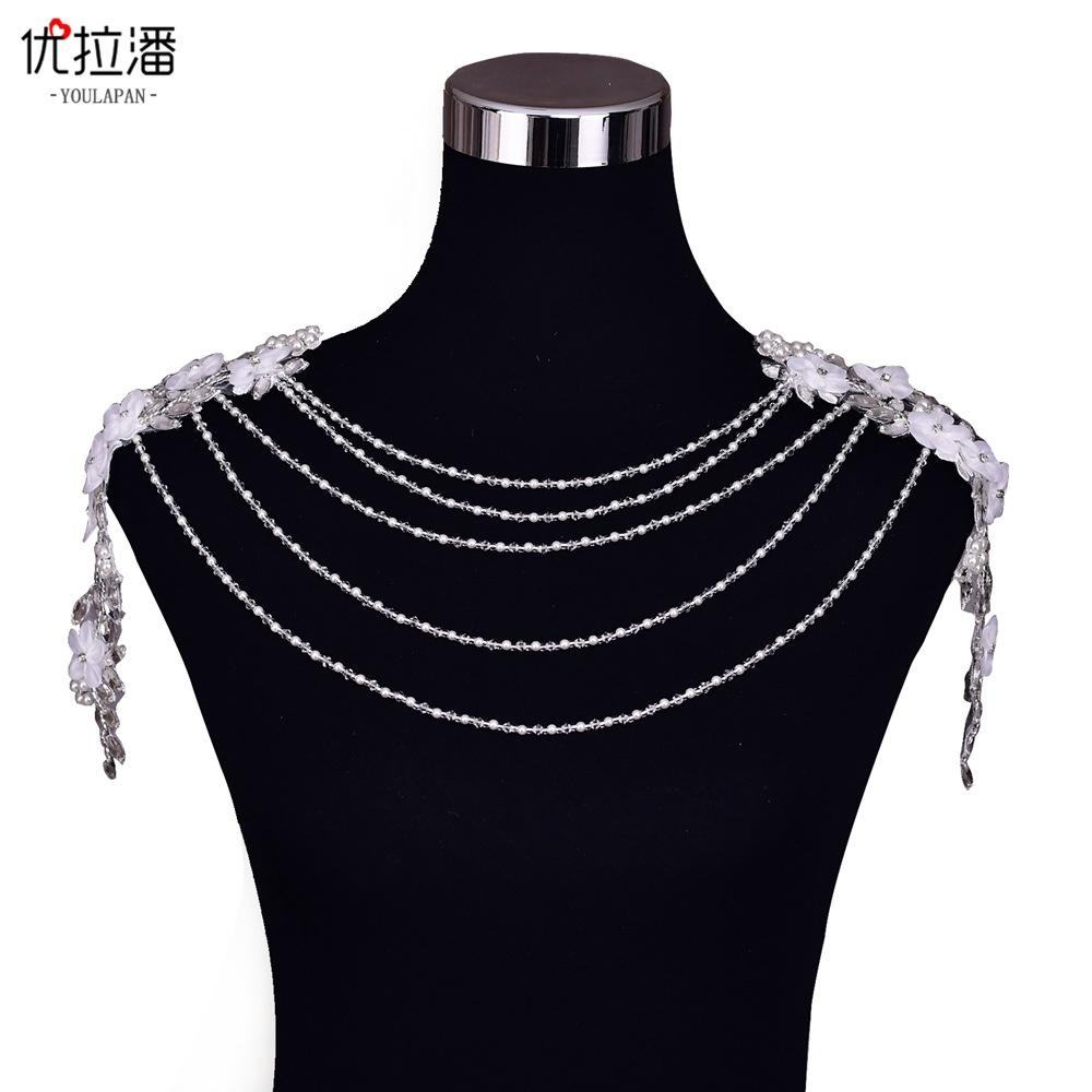 Youlapan Sg19 Chal Nupcial Encaje de Pedrería Nupcial Cadena de Hombro Borla de un Hombro Decoración de Hombro Accesorios para Vestido