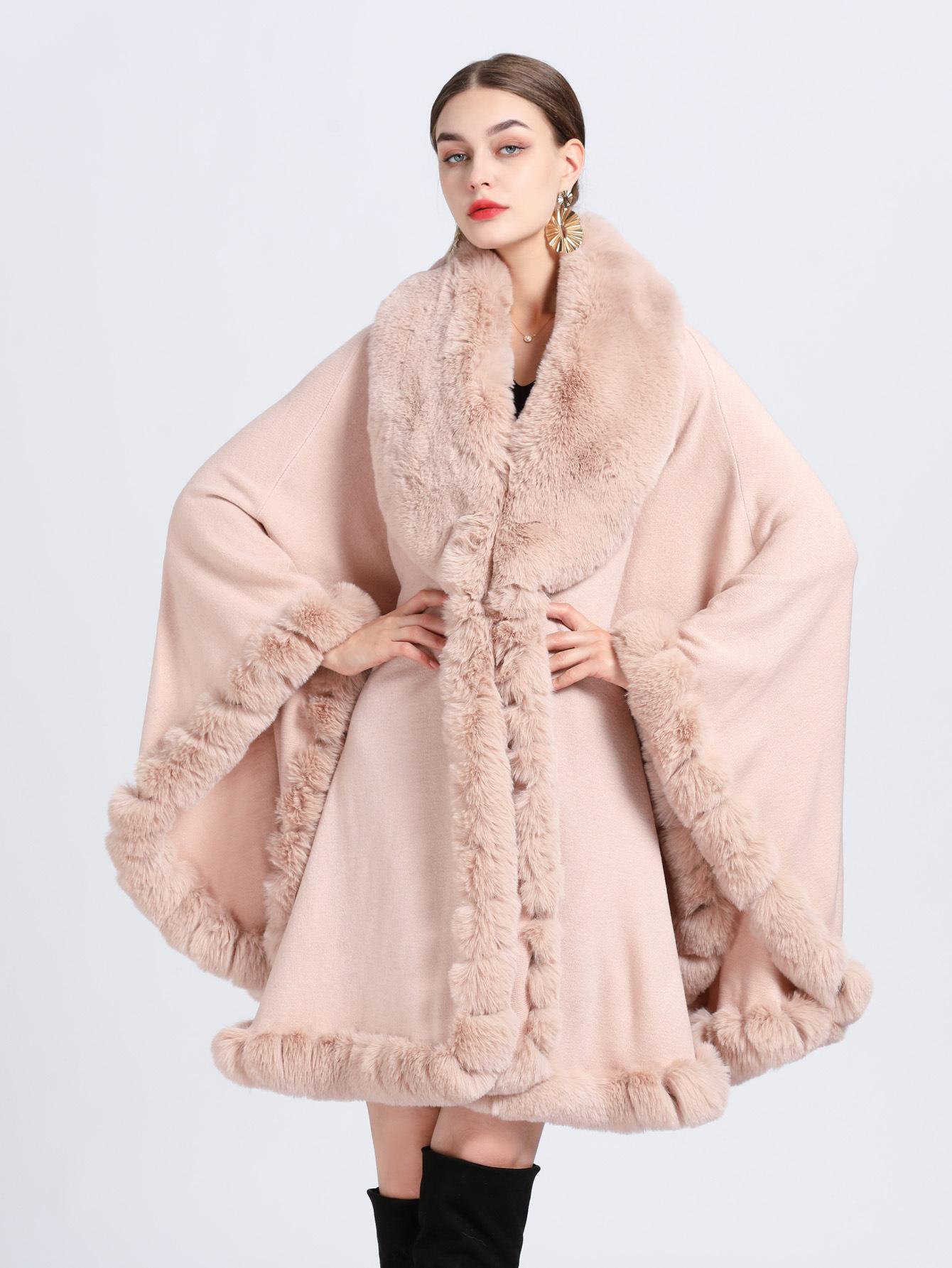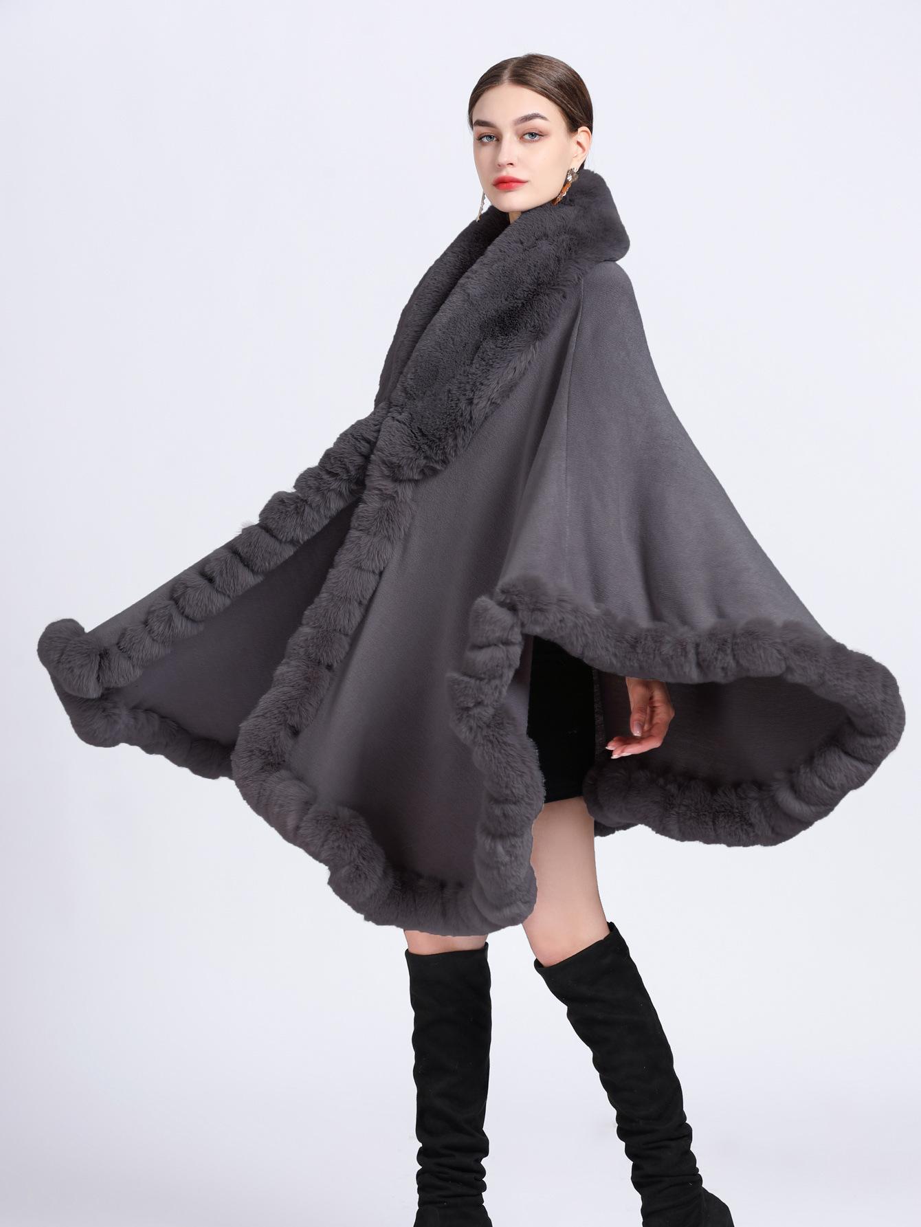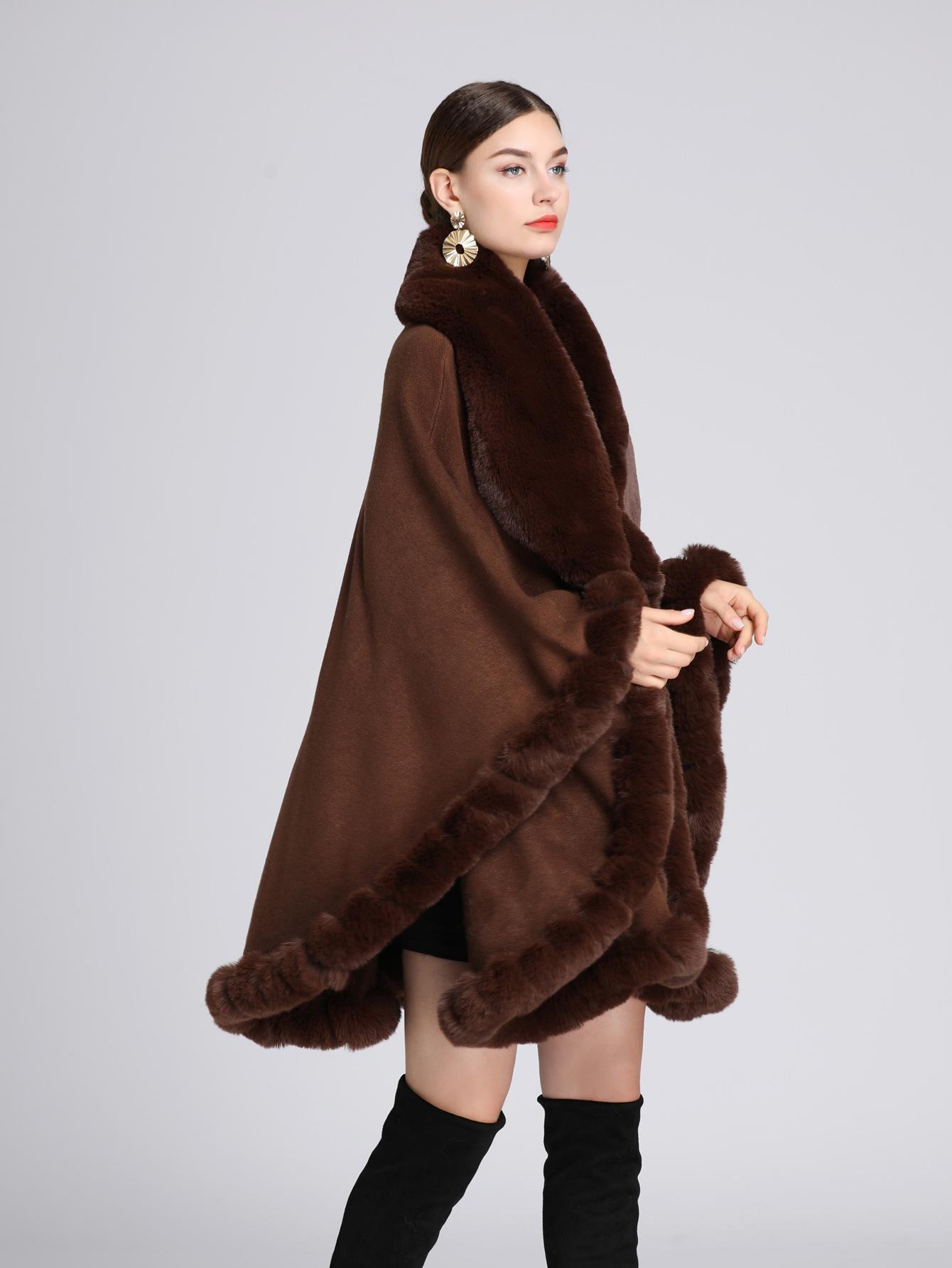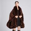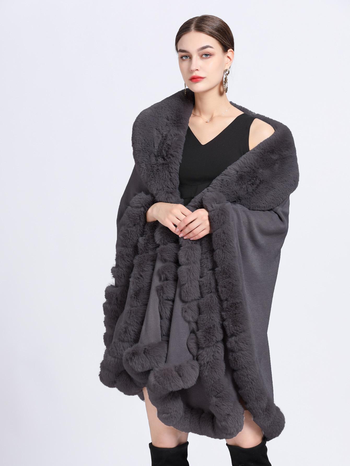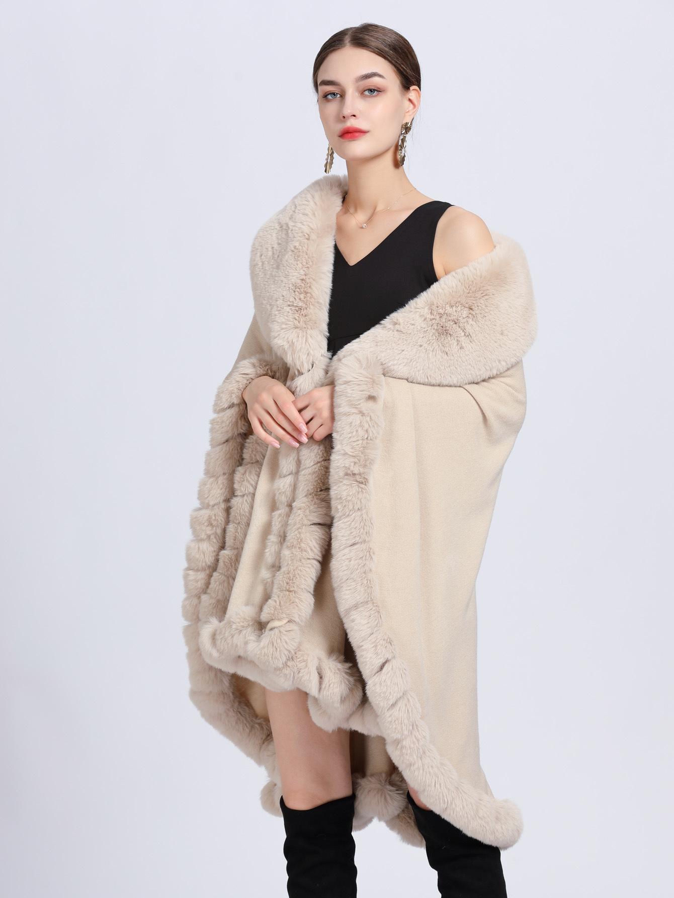 Nuevo estilo de invierno, cuello de piel de conejo Rex sintética, chal, capa de punto, cárdigan suelto, abrigo de moda grueso y cálido para mujer, venta al por mayor