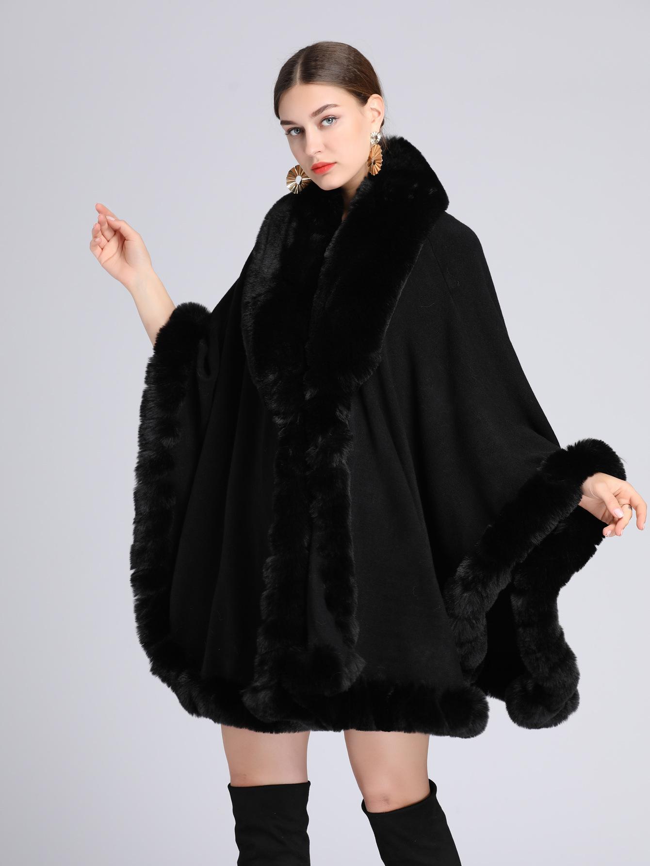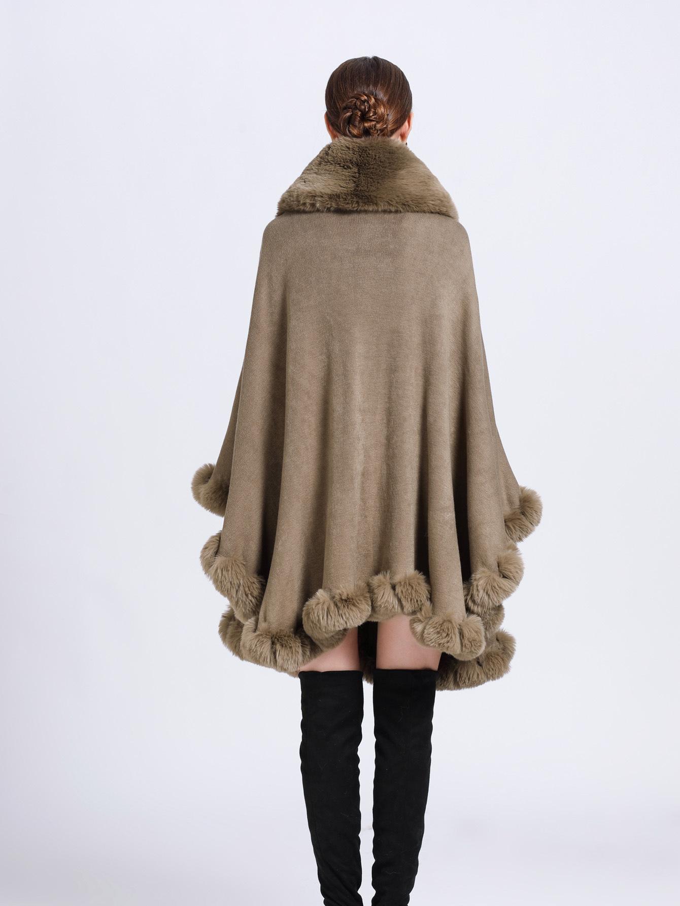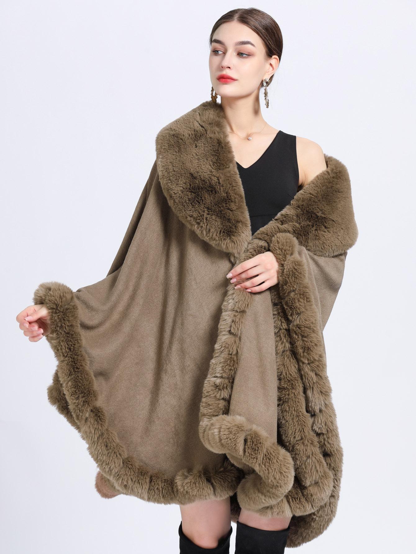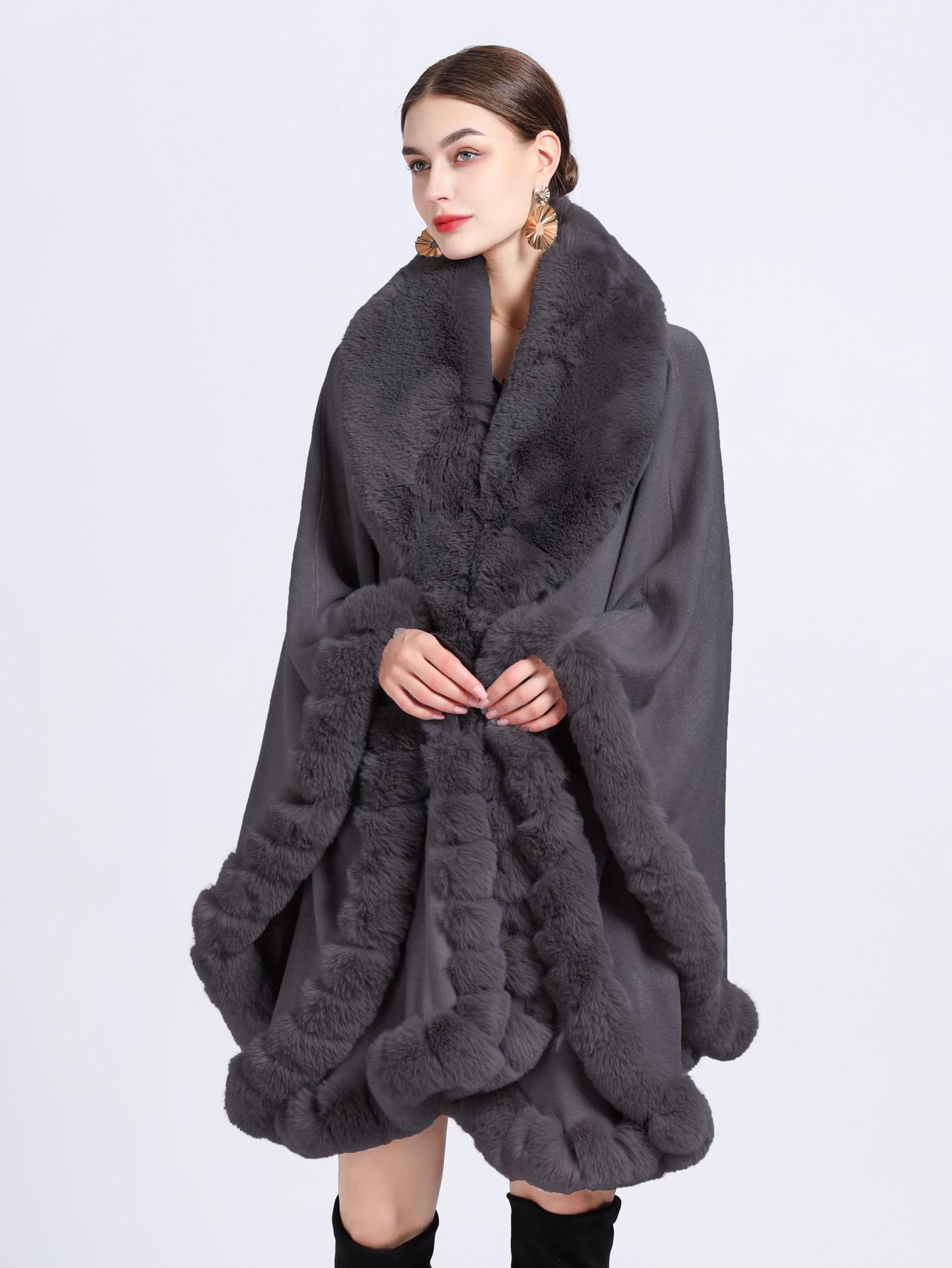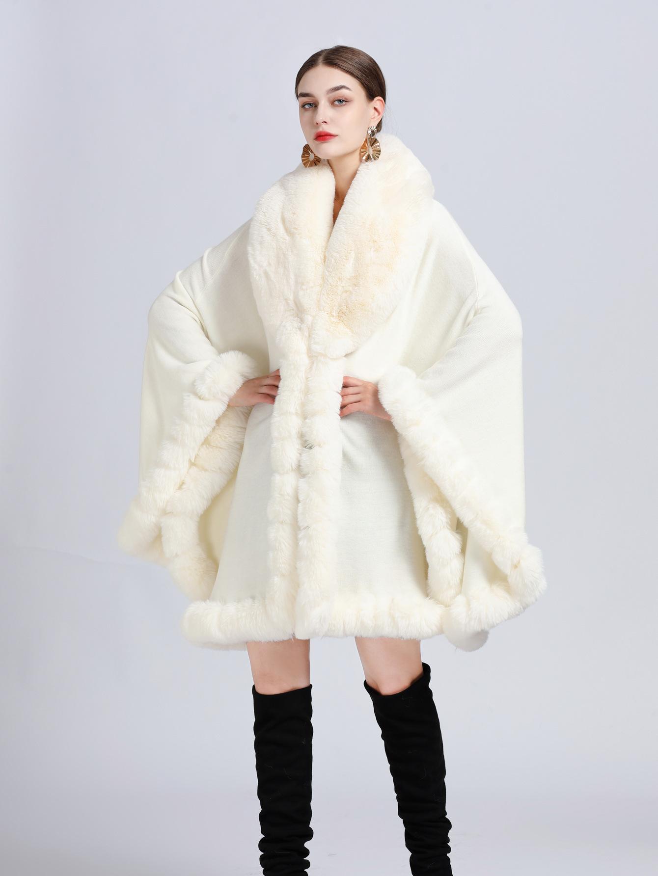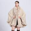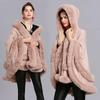 Nuevo estilo de invierno, cuello de piel de conejo Rex sintética, chal, capa de punto, cárdigan suelto, abrigo de moda grueso y cálido para mujer, venta al por mayor