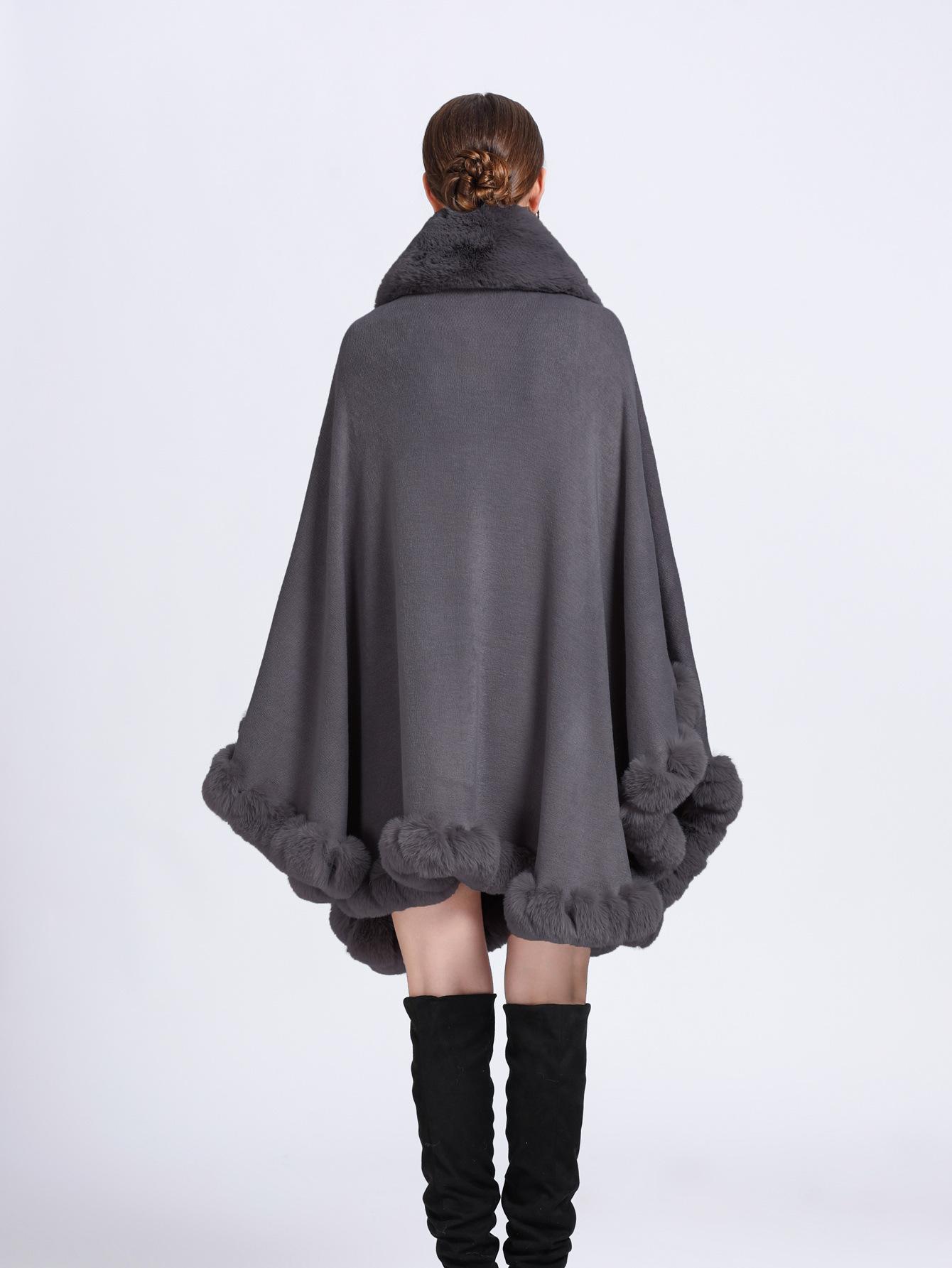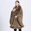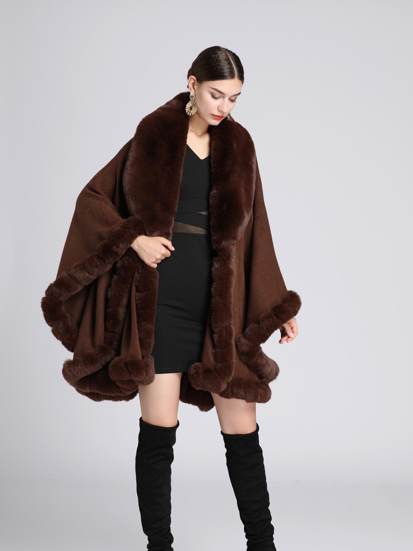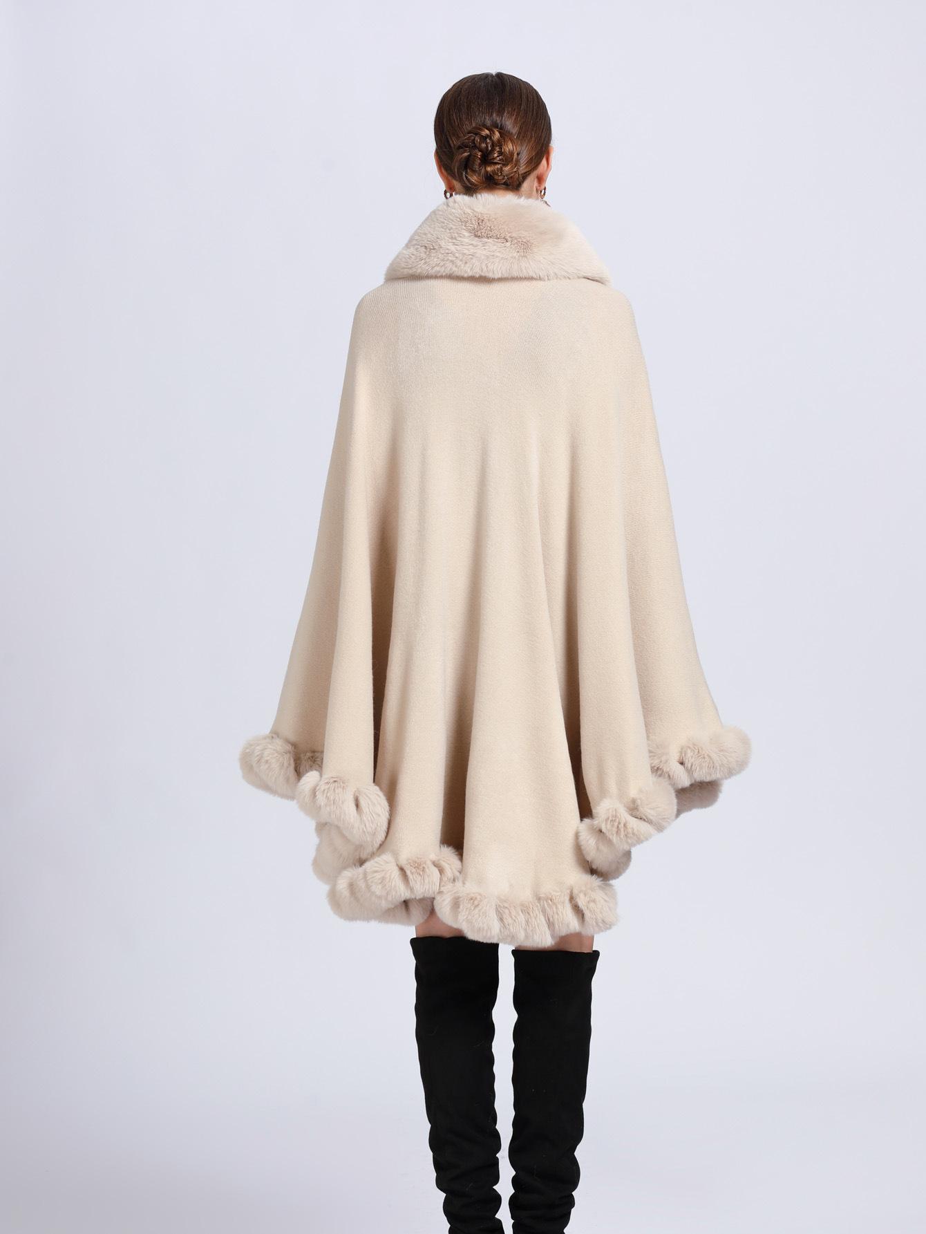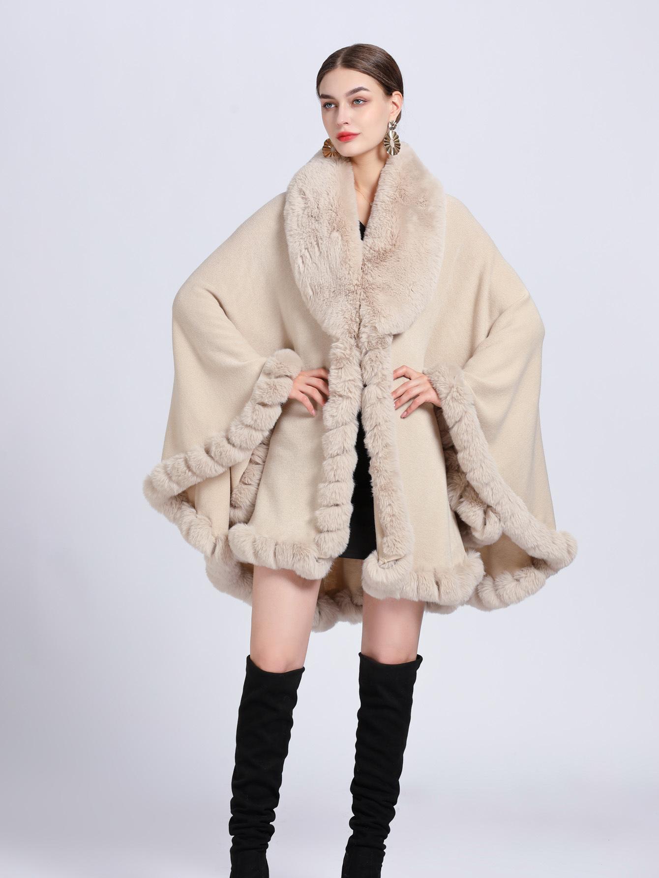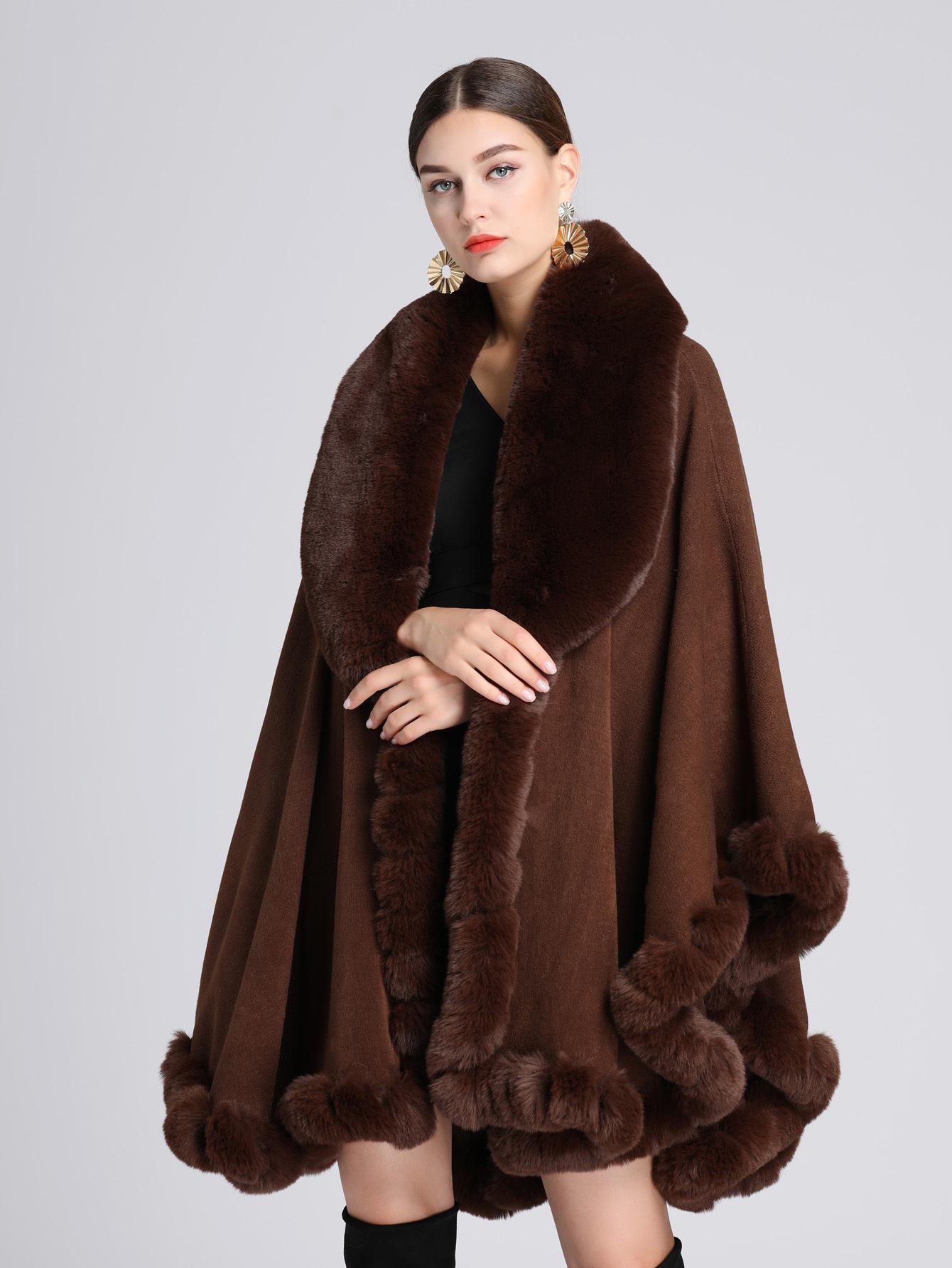 Nuevo estilo de invierno, cuello de piel de conejo Rex sintética, chal, capa de punto, cárdigan suelto, abrigo de moda grueso y cálido para mujer, venta al por mayor