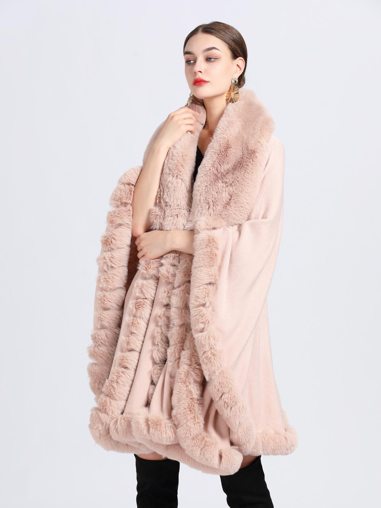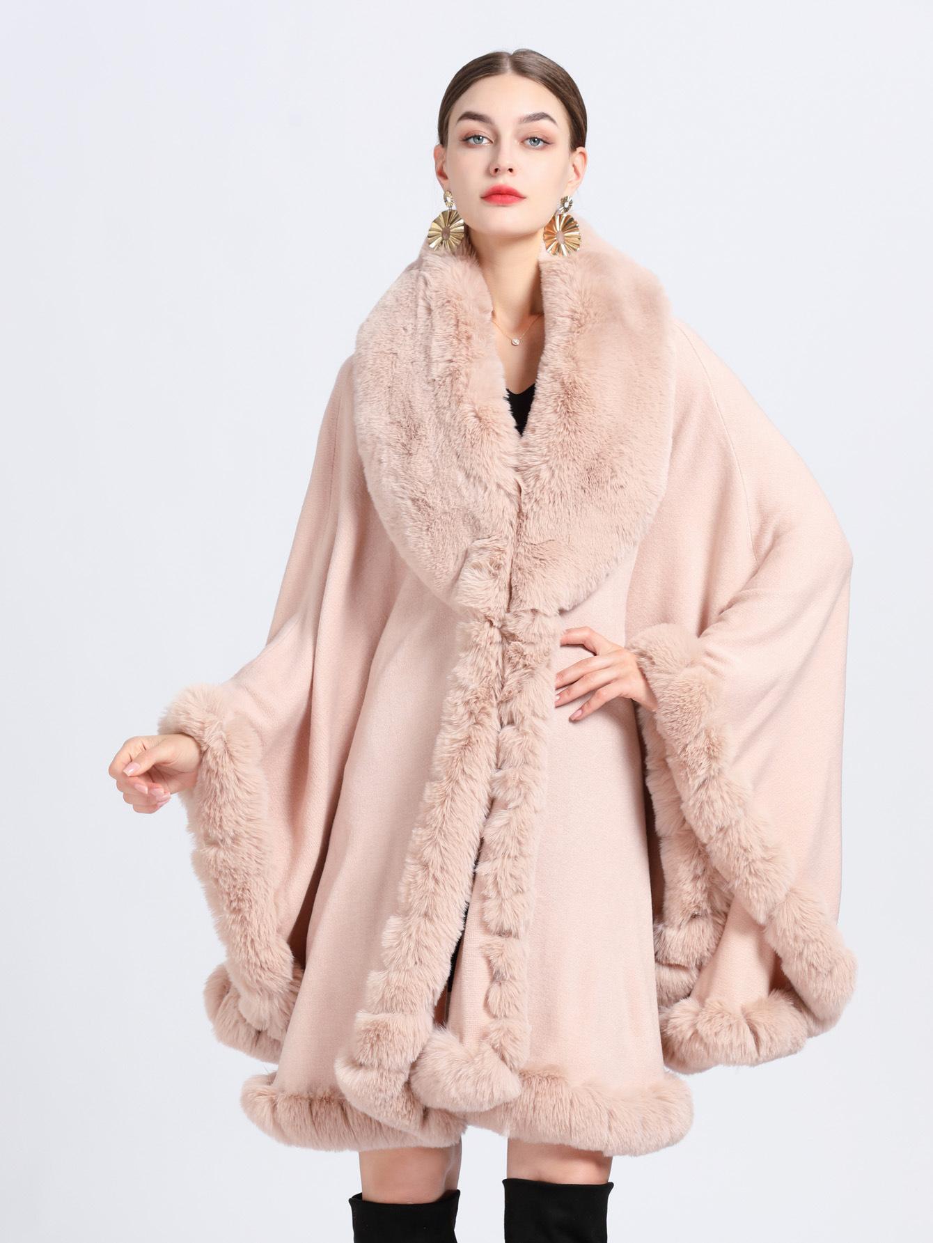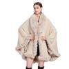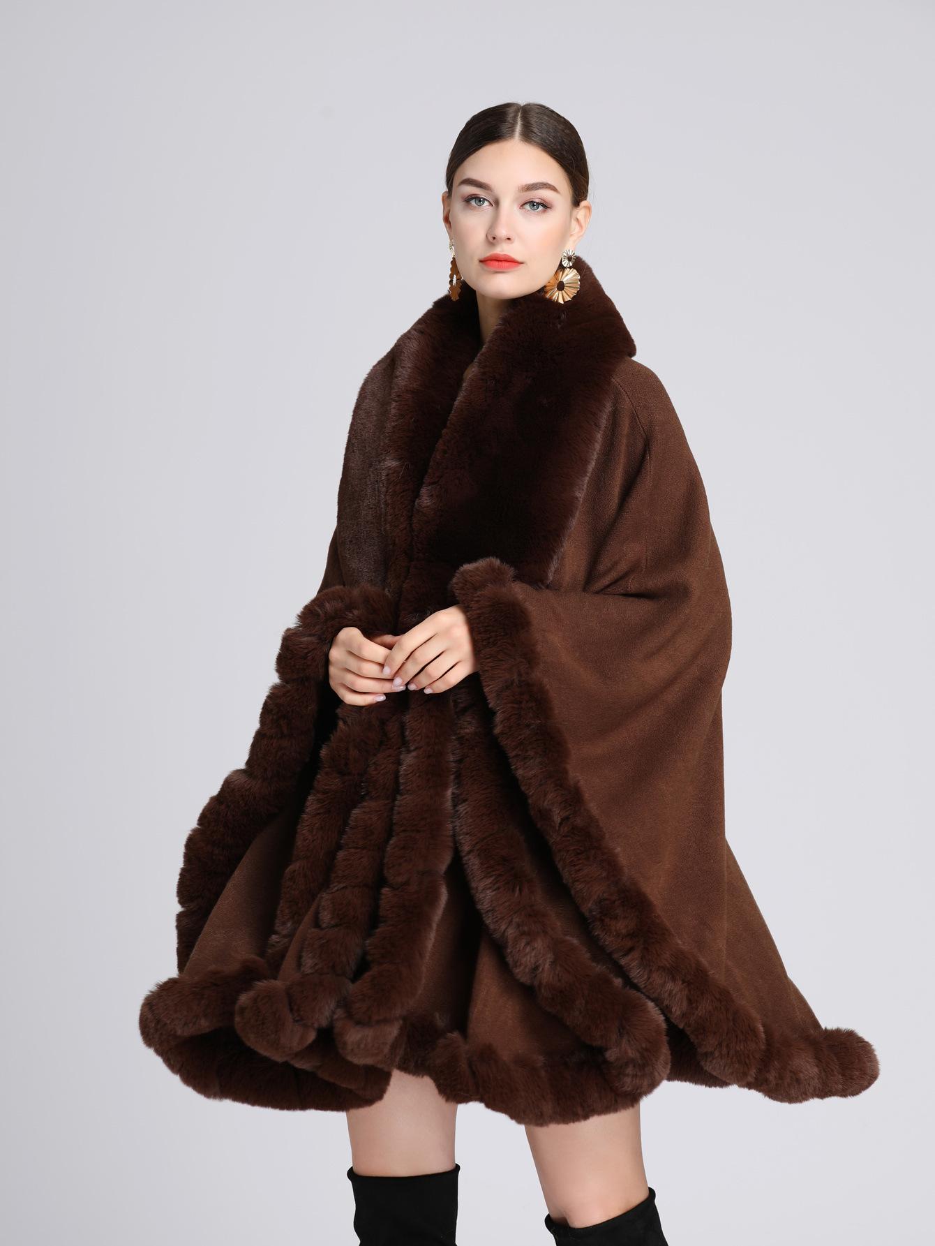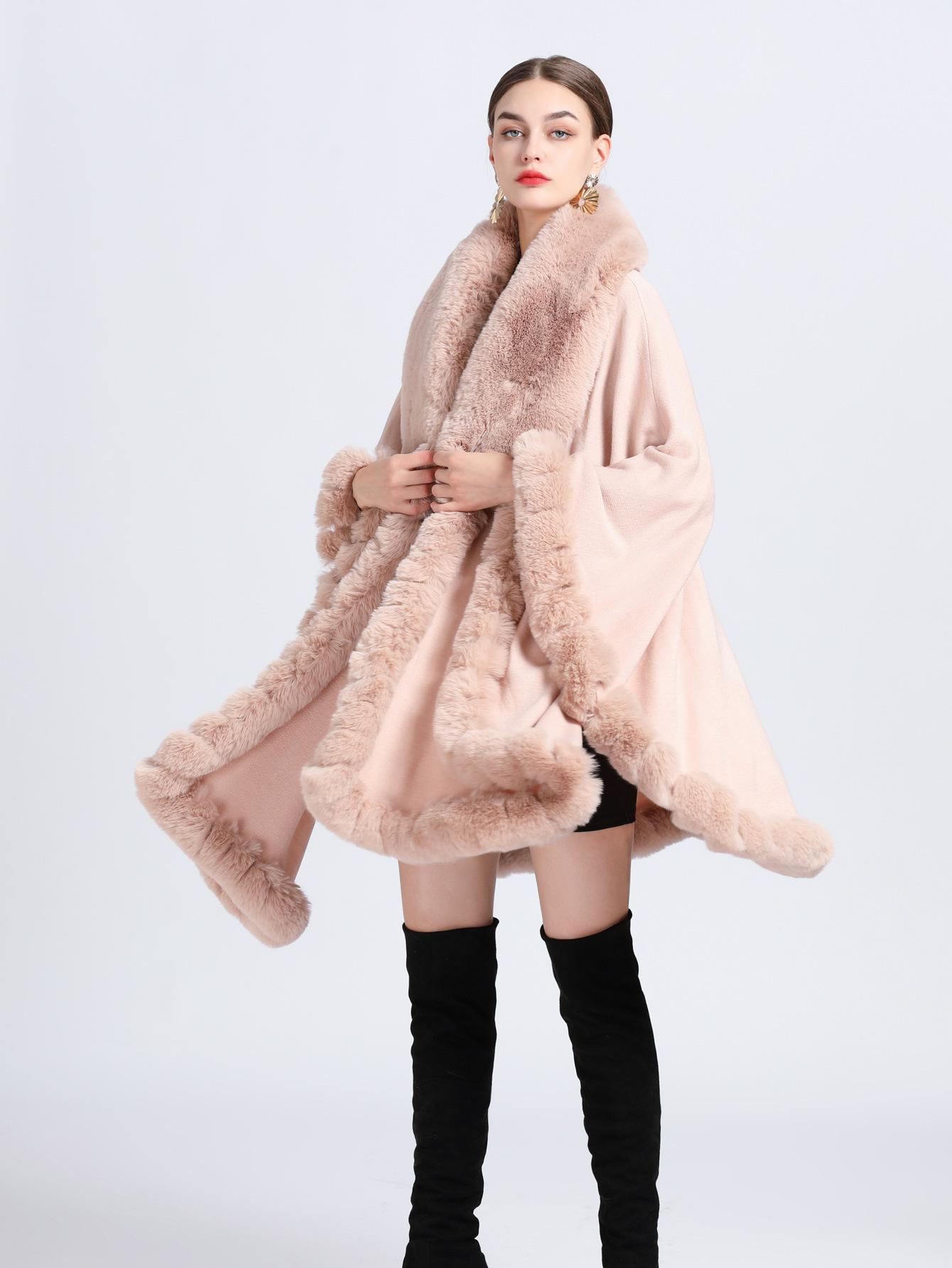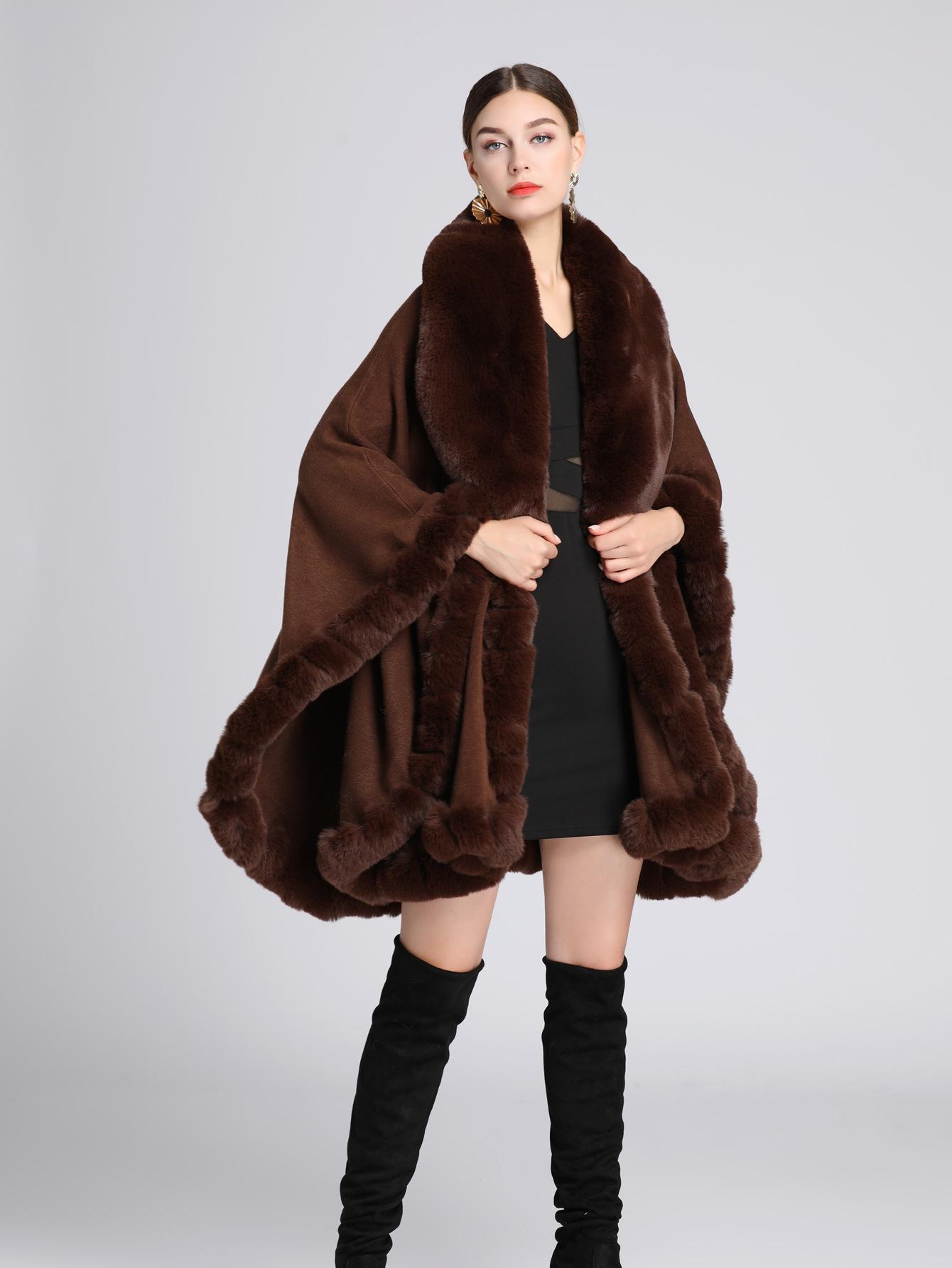 Nuevo estilo de invierno, cuello de piel de conejo Rex sintética, chal, capa de punto, cárdigan suelto, abrigo de moda grueso y cálido para mujer, venta al por mayor
