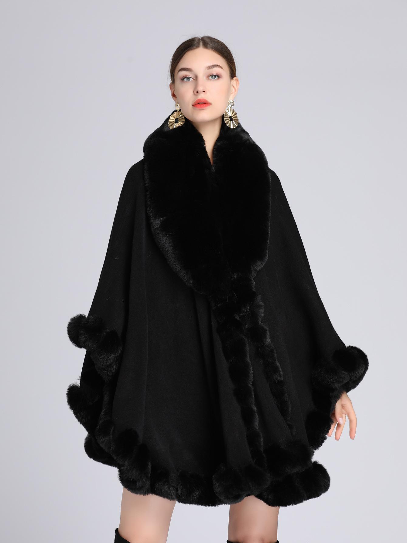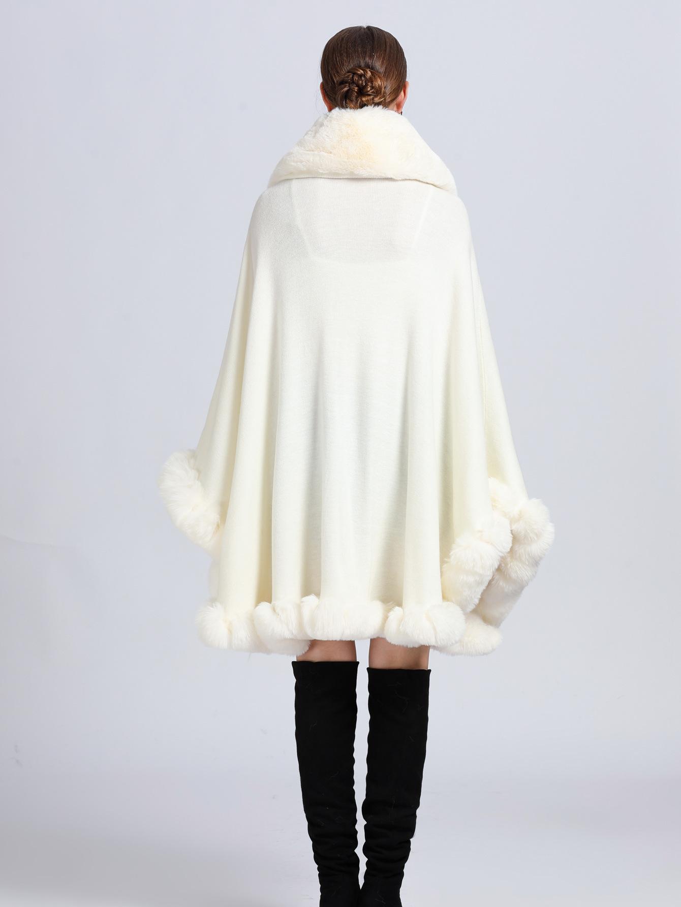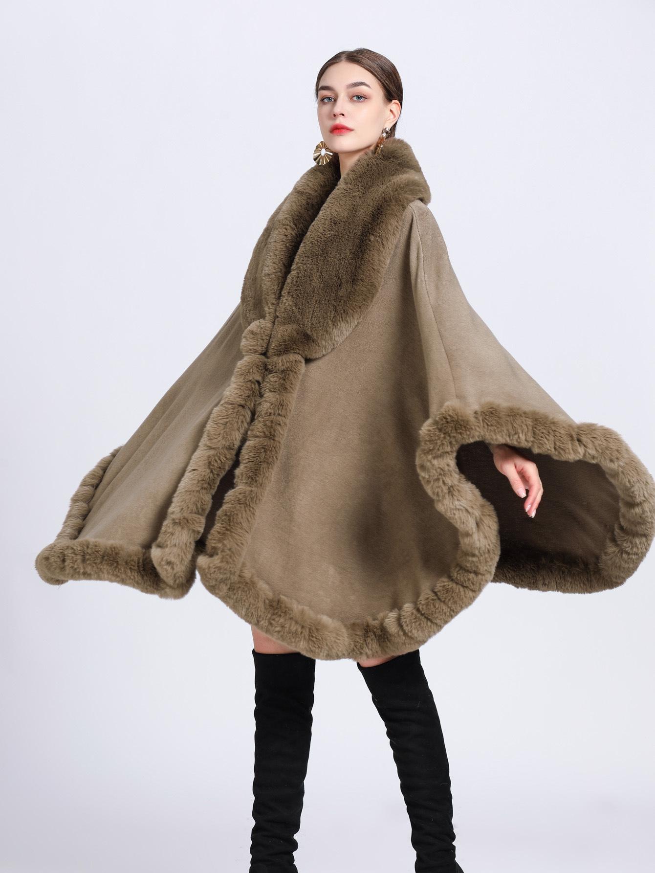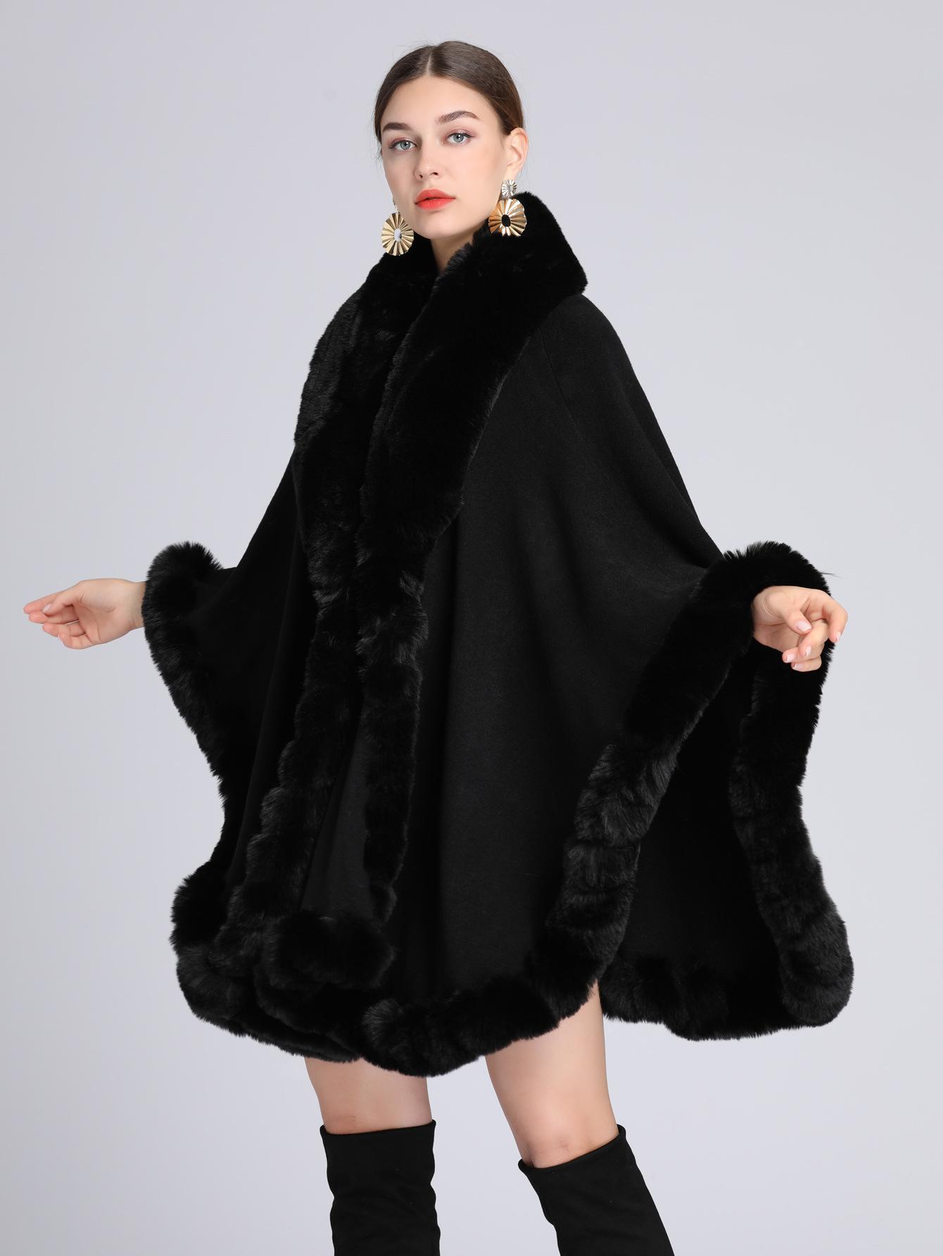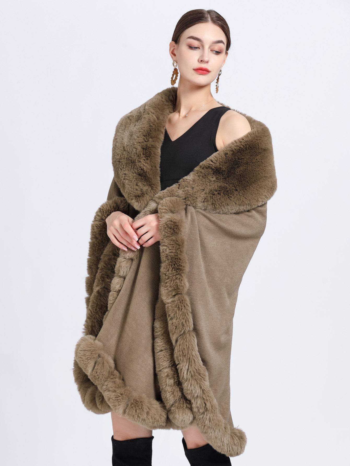 Nuevo estilo de invierno, cuello de piel de conejo Rex sintética, chal, capa de punto, cárdigan suelto, abrigo de moda grueso y cálido para mujer, venta al por mayor