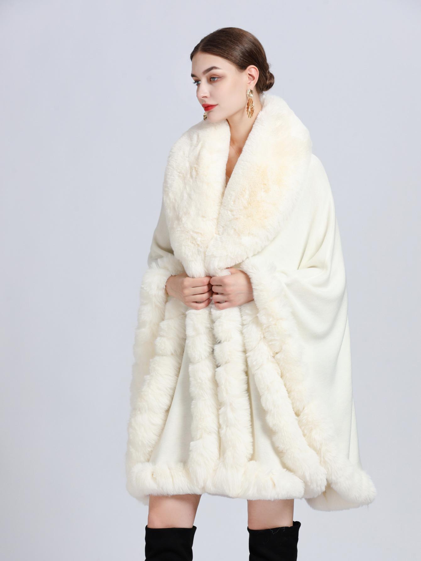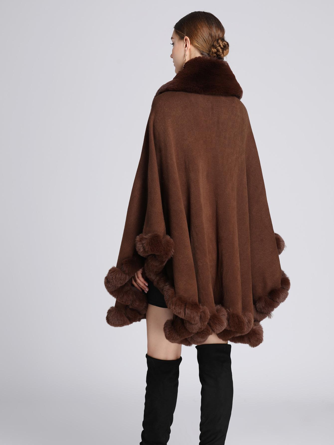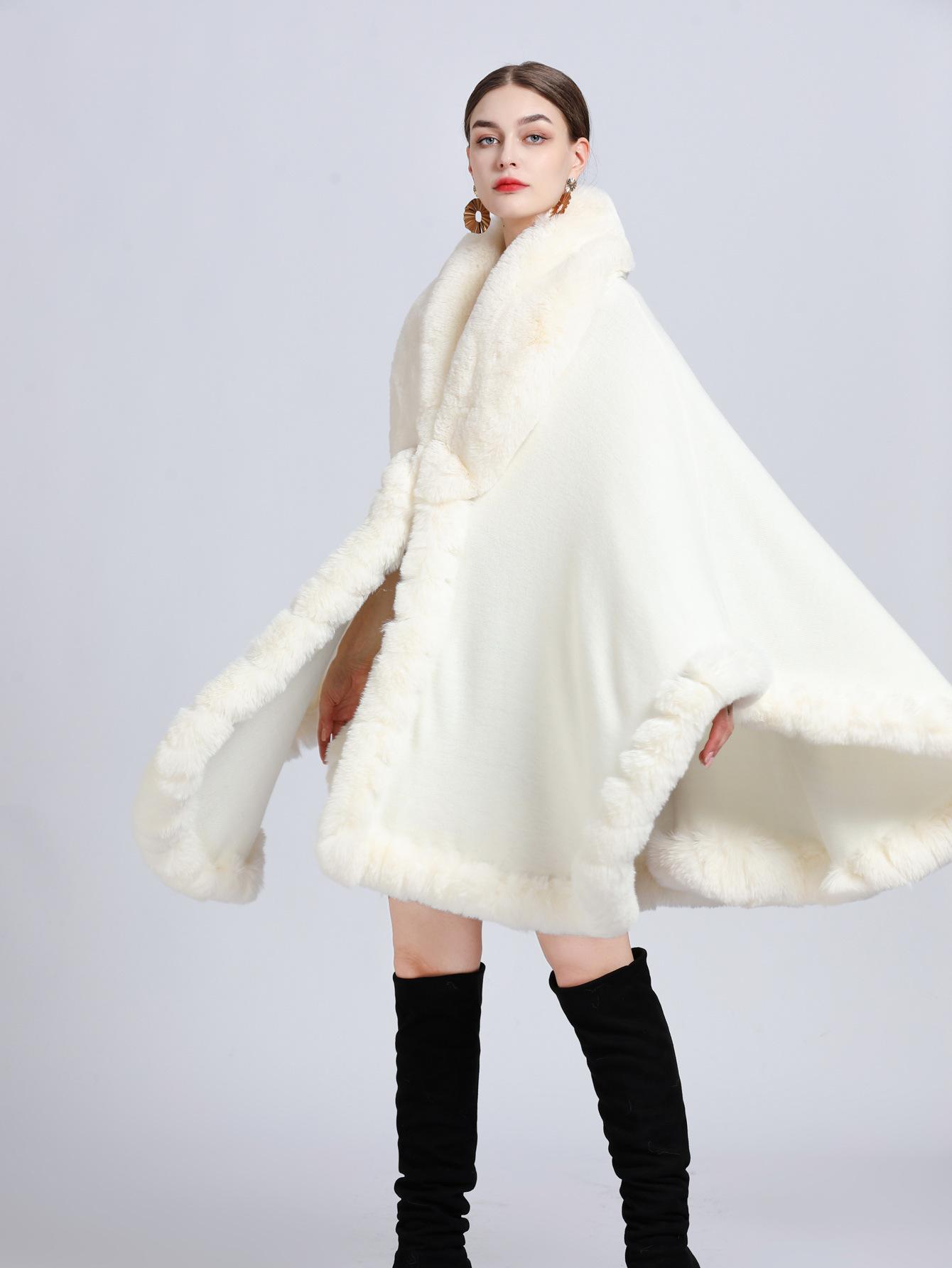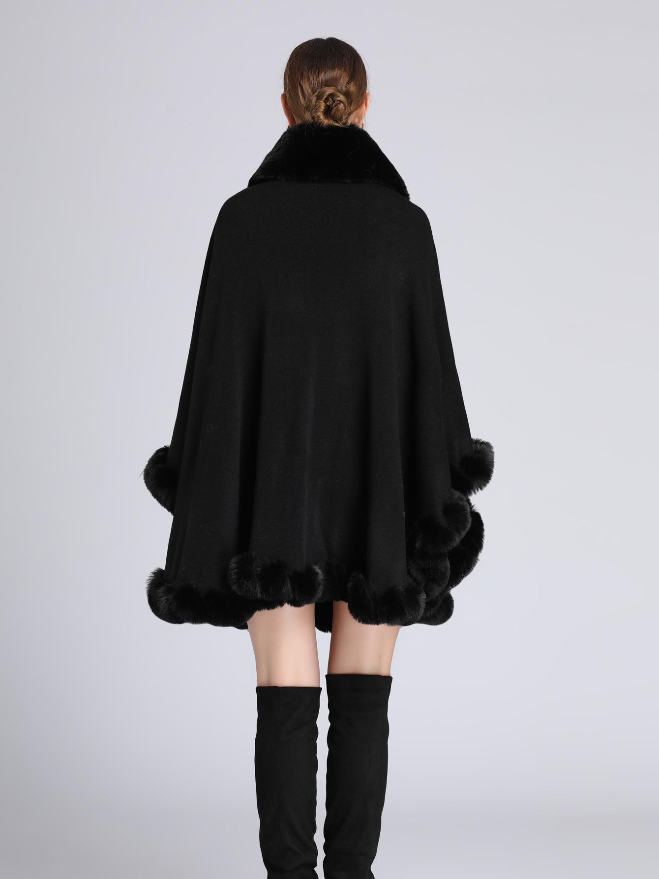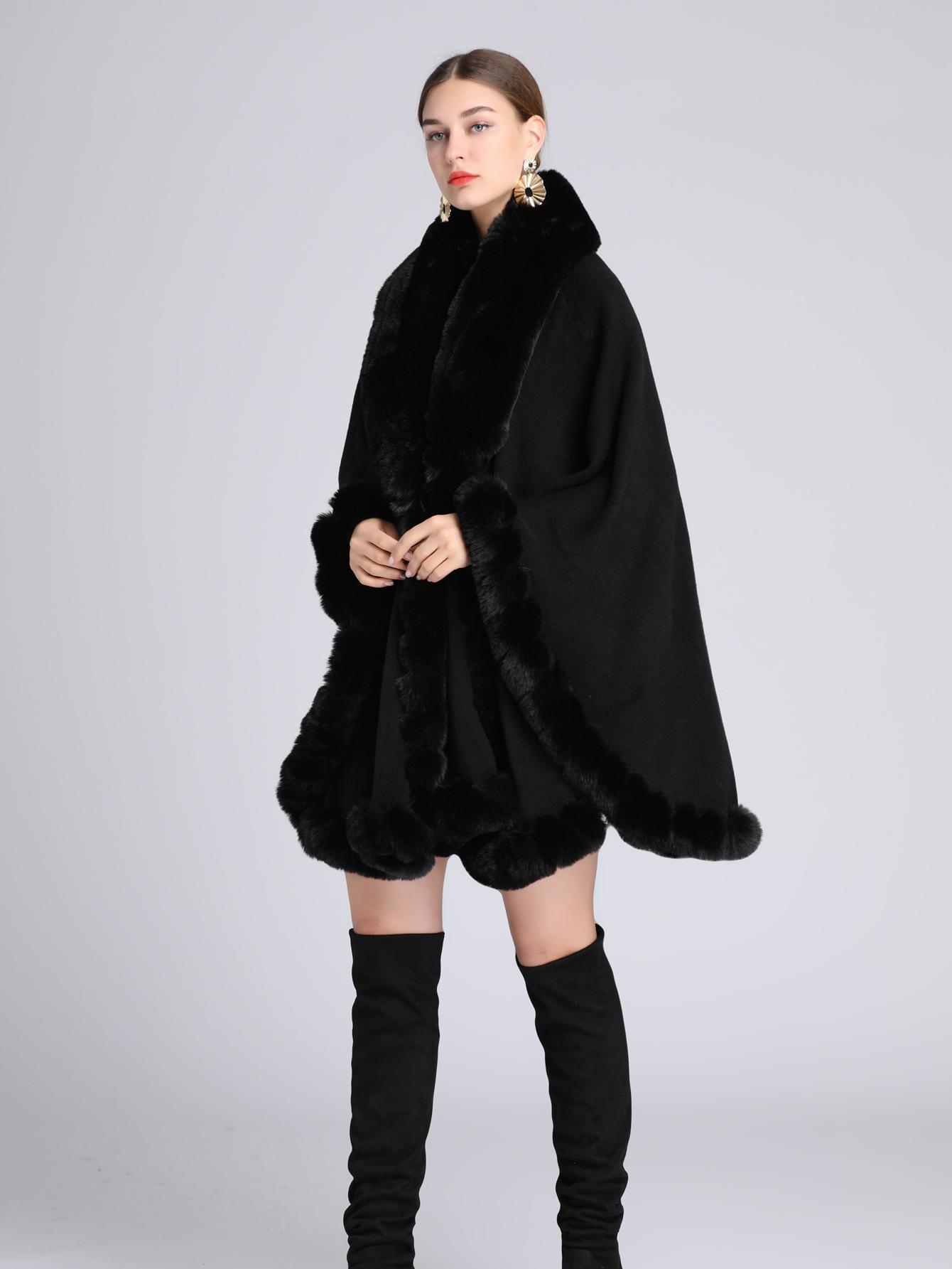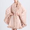 Nuevo estilo de invierno, cuello de piel de conejo Rex sintética, chal, capa de punto, cárdigan suelto, abrigo de moda grueso y cálido para mujer, venta al por mayor