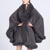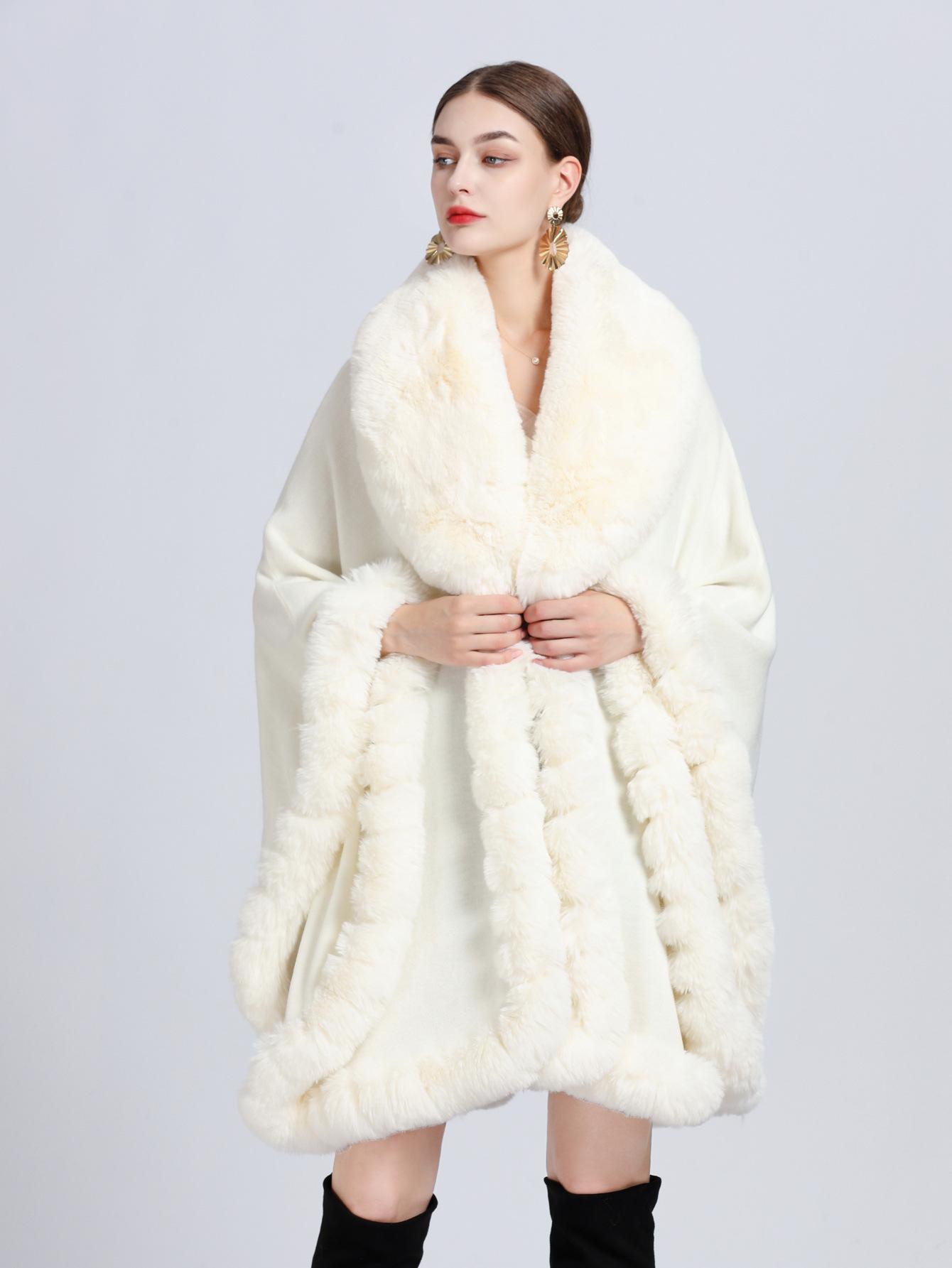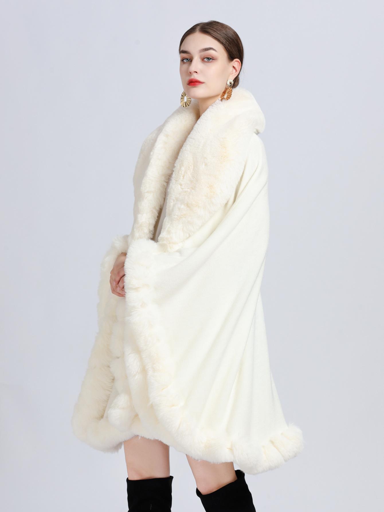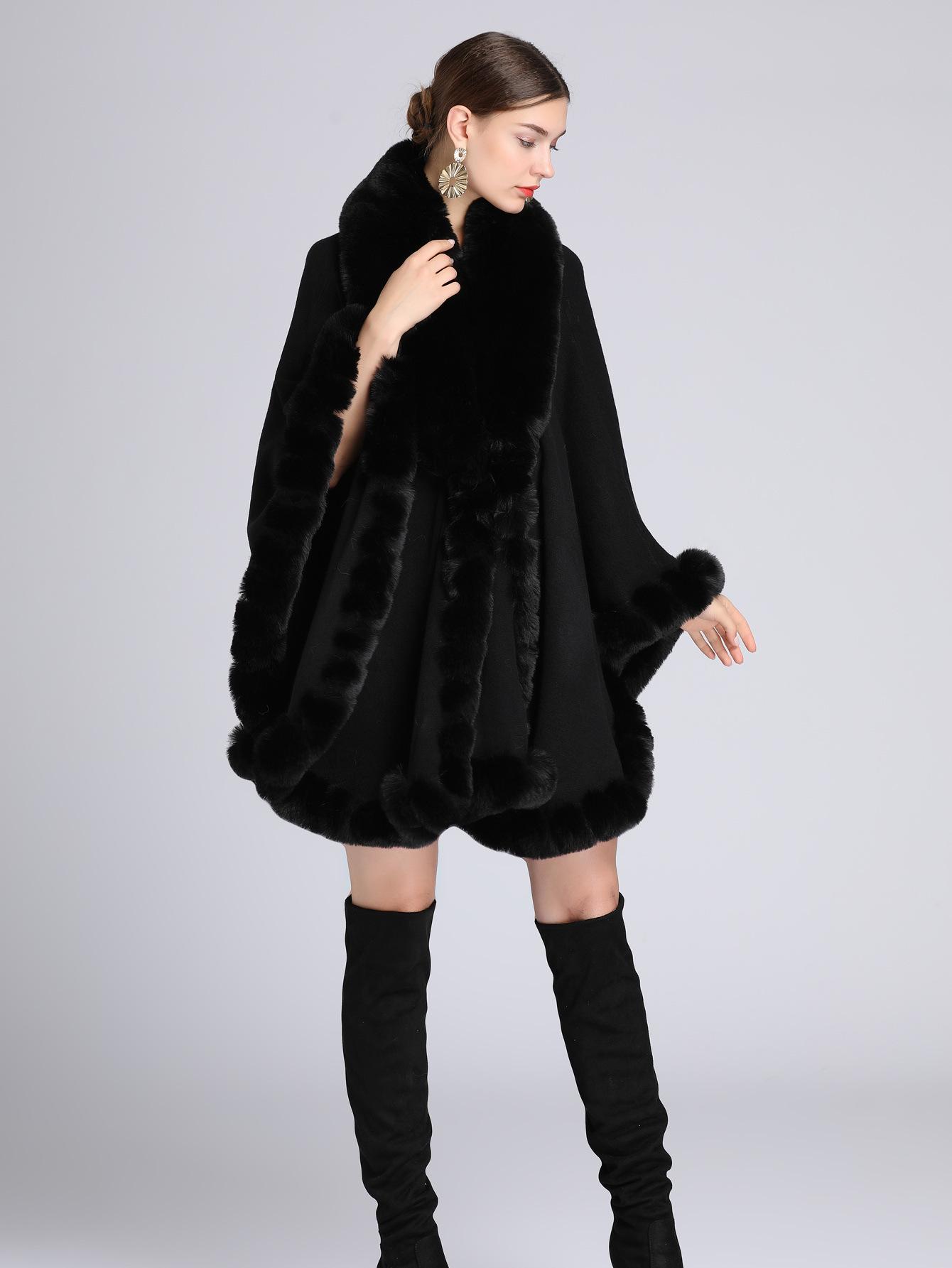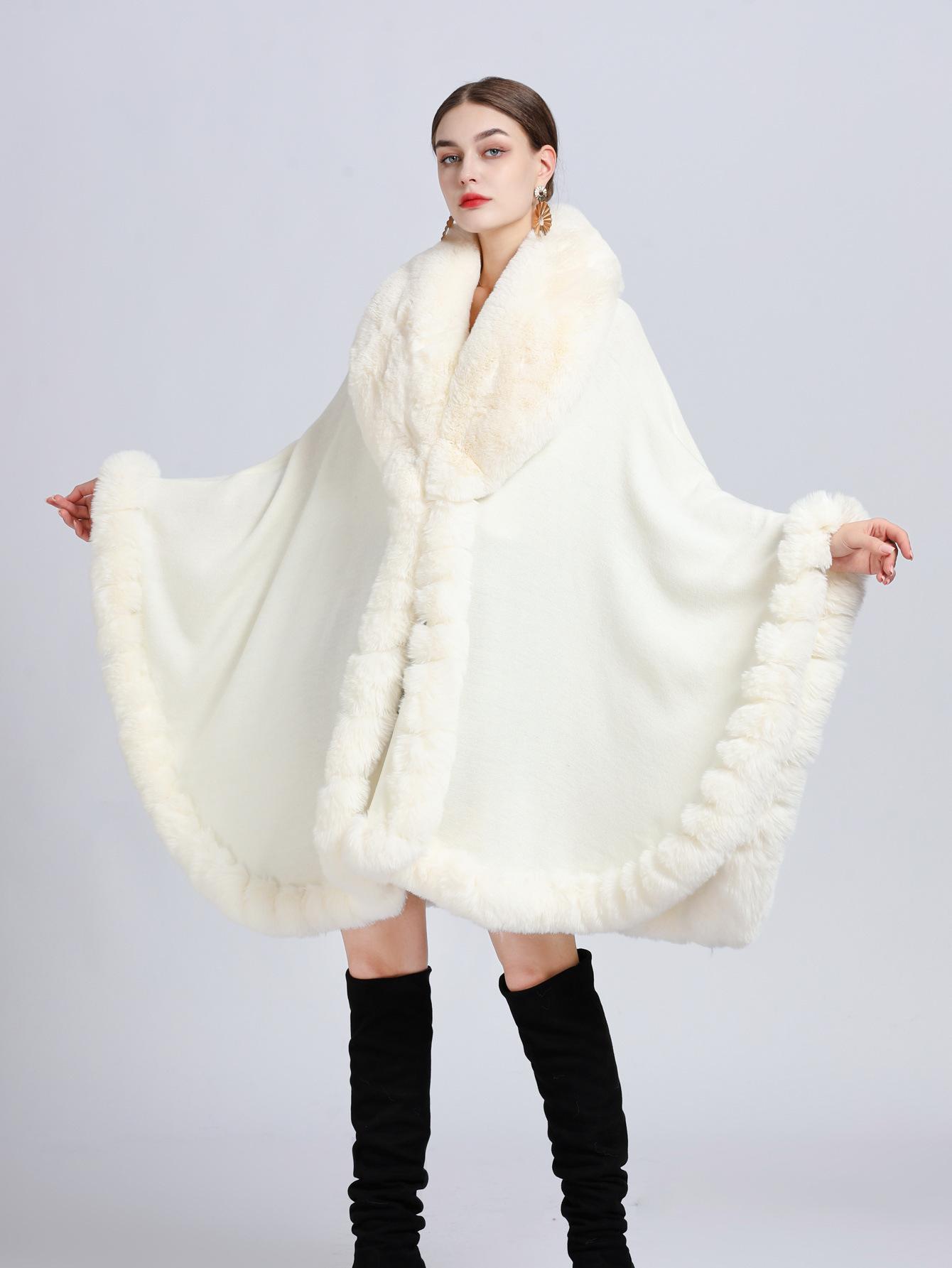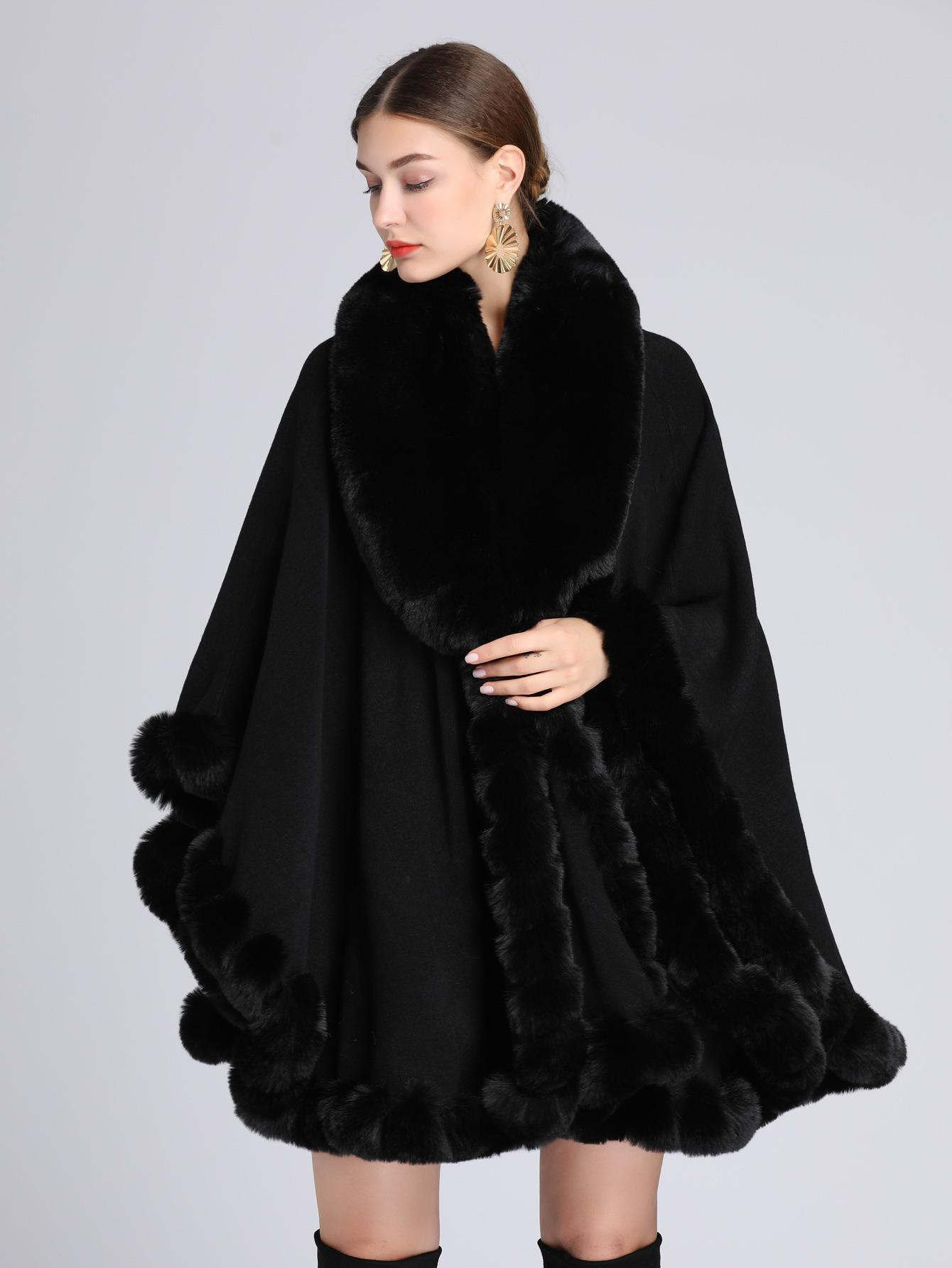Nuevo estilo de invierno, cuello de piel de conejo Rex sintética, chal, capa de punto, cárdigan suelto, abrigo de moda grueso y cálido para mujer, venta al por mayor