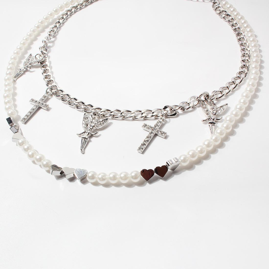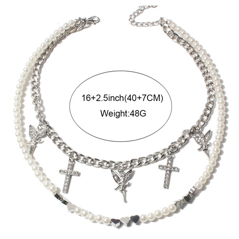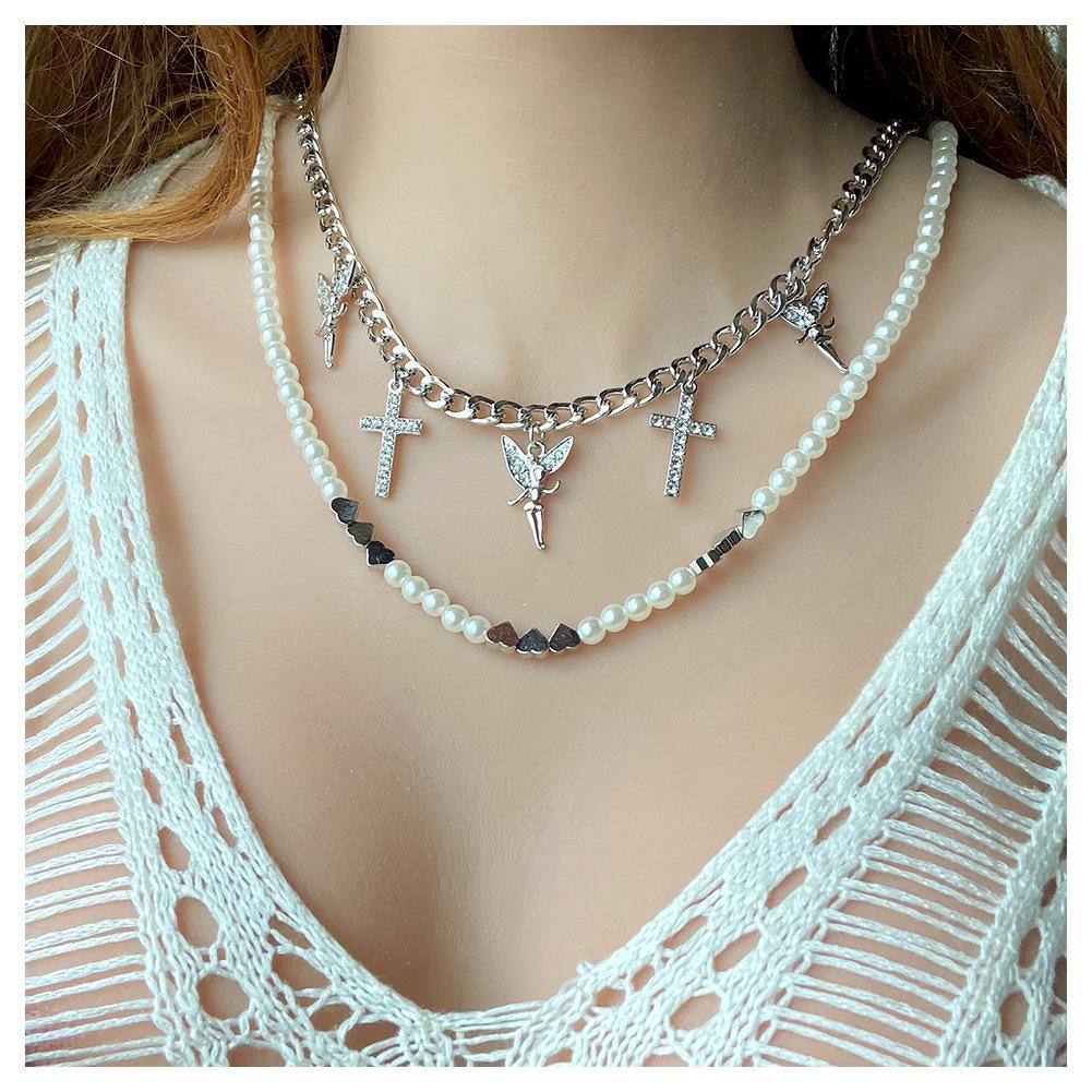 Collar de hip-hop creativo con personalidad transfronteriza europea y americana, collar de moda multicapa con diseño cruzado de calle para mujer 20240