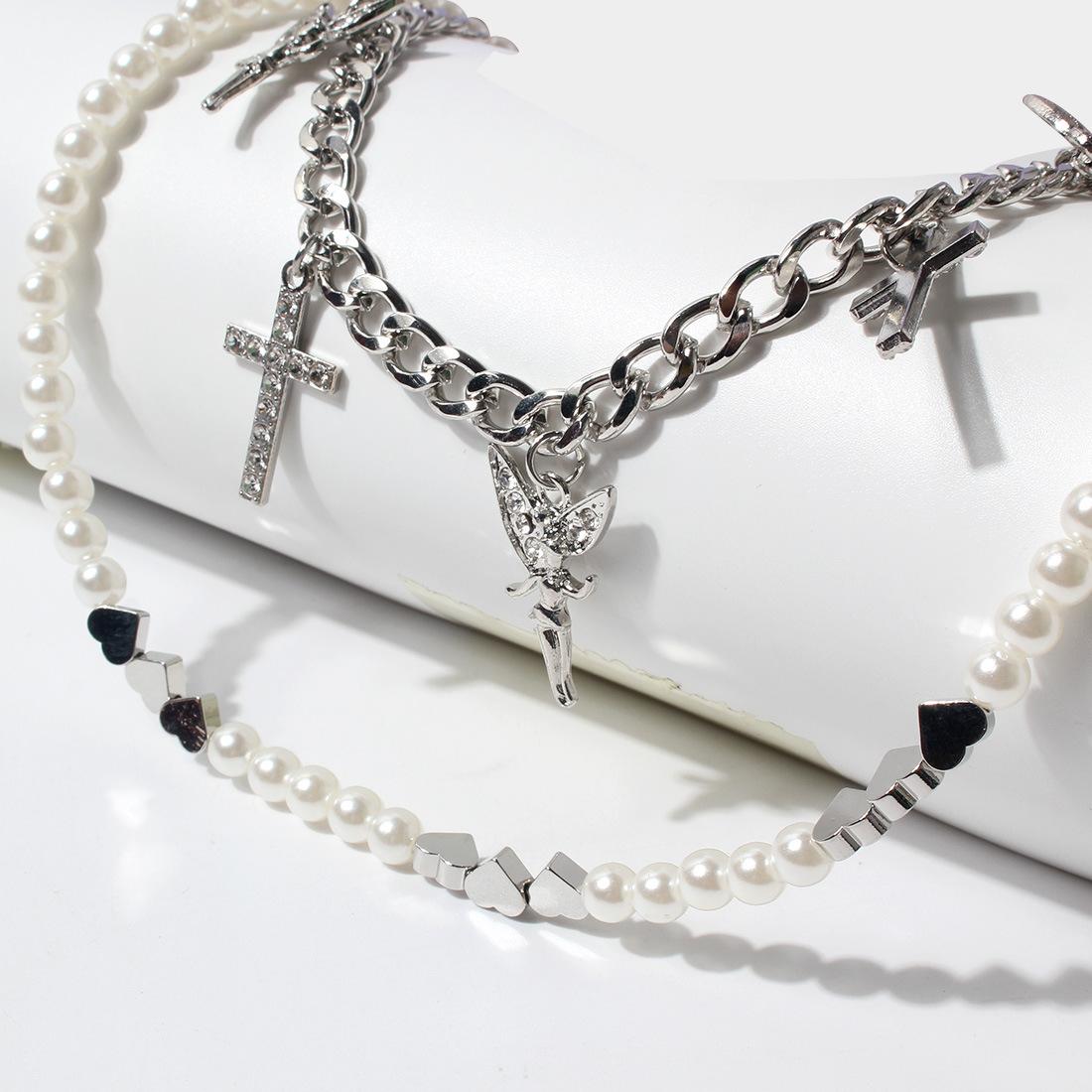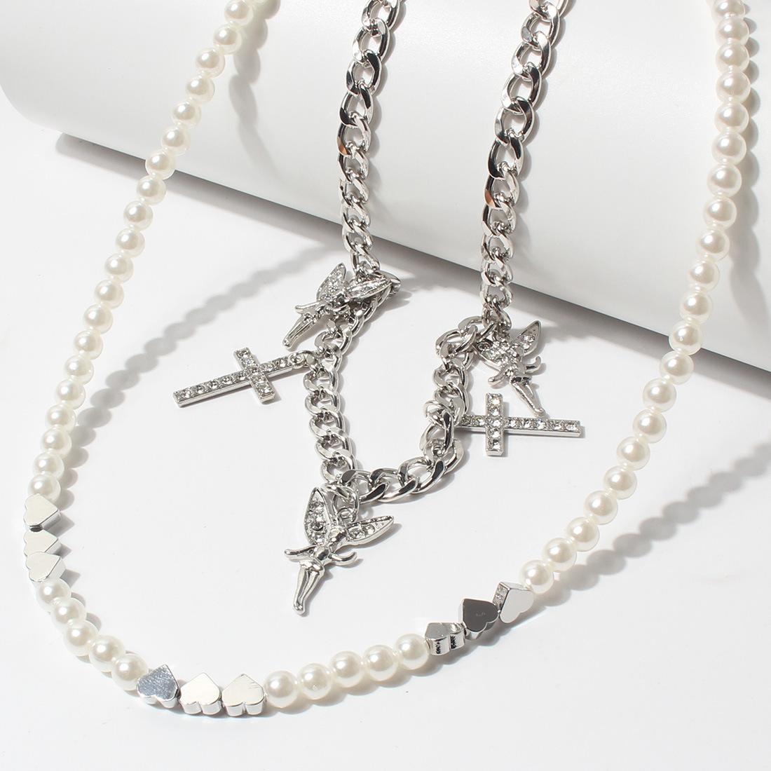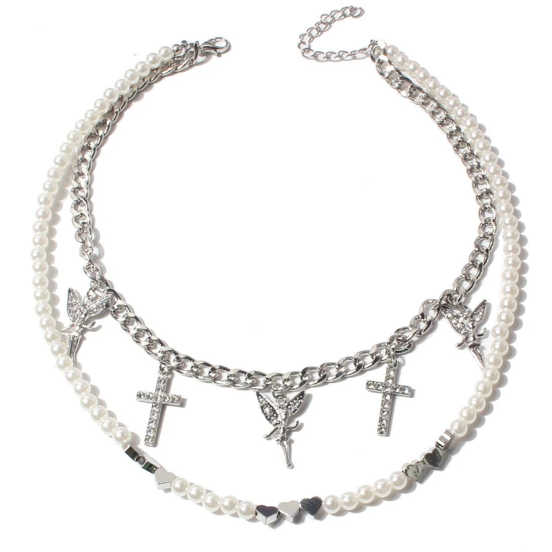 Collar de hip-hop creativo con personalidad transfronteriza europea y americana, collar de moda multicapa con diseño cruzado de calle para mujer 20240